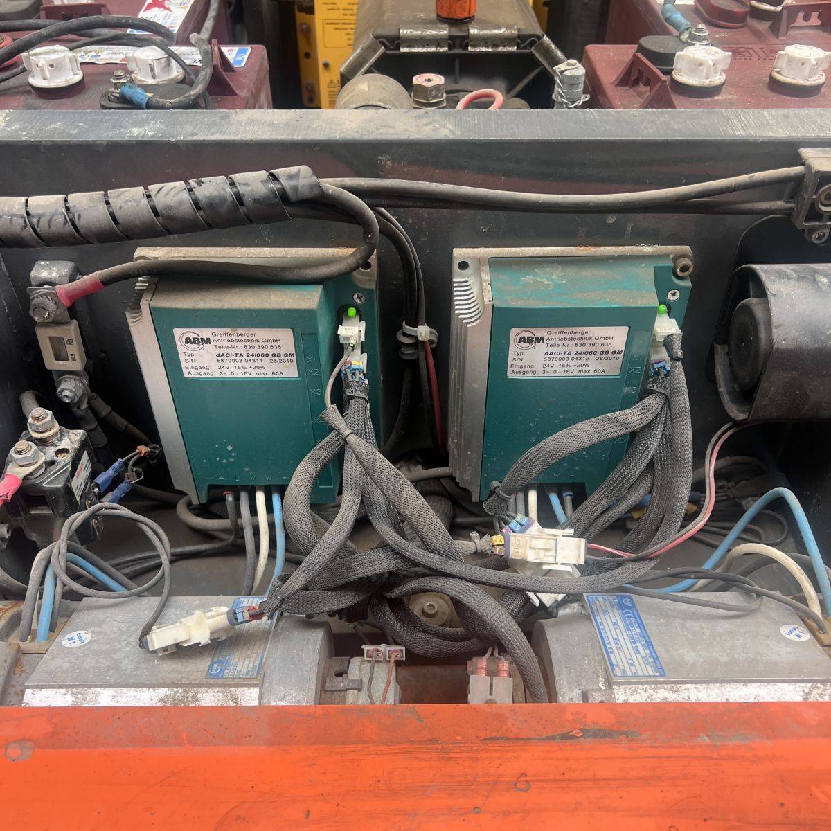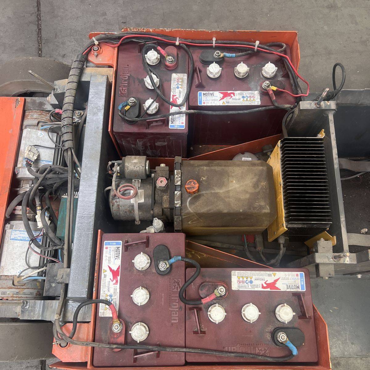 Lifting height platform 4 metres. On board charger. Batteries 4 x Trojan 6 Volt 185 Ah (weak).