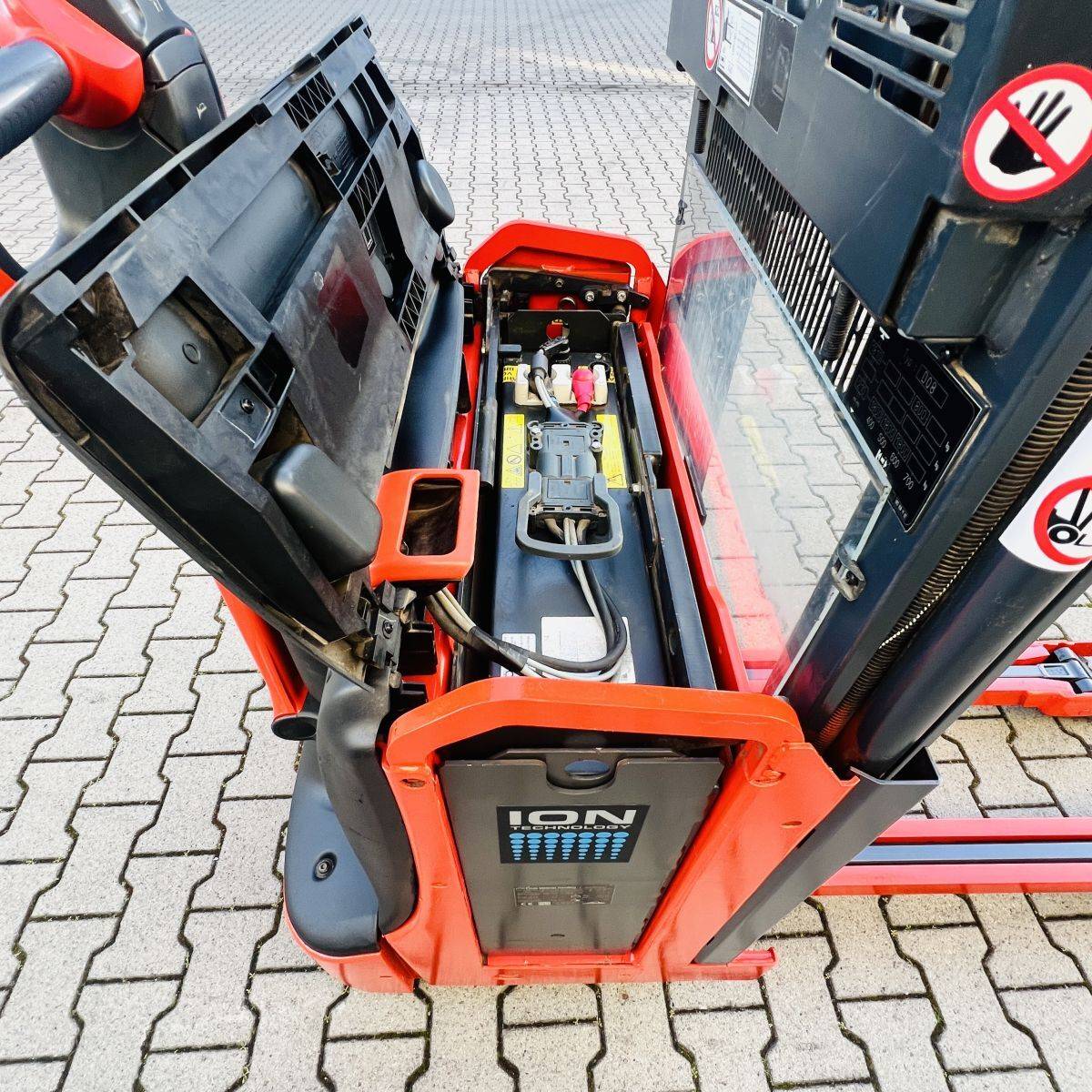 Compact double stock stacker, Overall width (b1) 720 mm, Forks 1.150 x 560 mm. Load distribution e.g. 800 kg on the forks, 1.000 kg on the fork arms. Total load max. 1800 kg. Li-On battery. Without charger