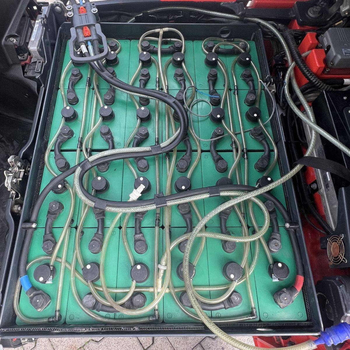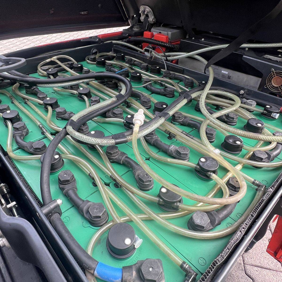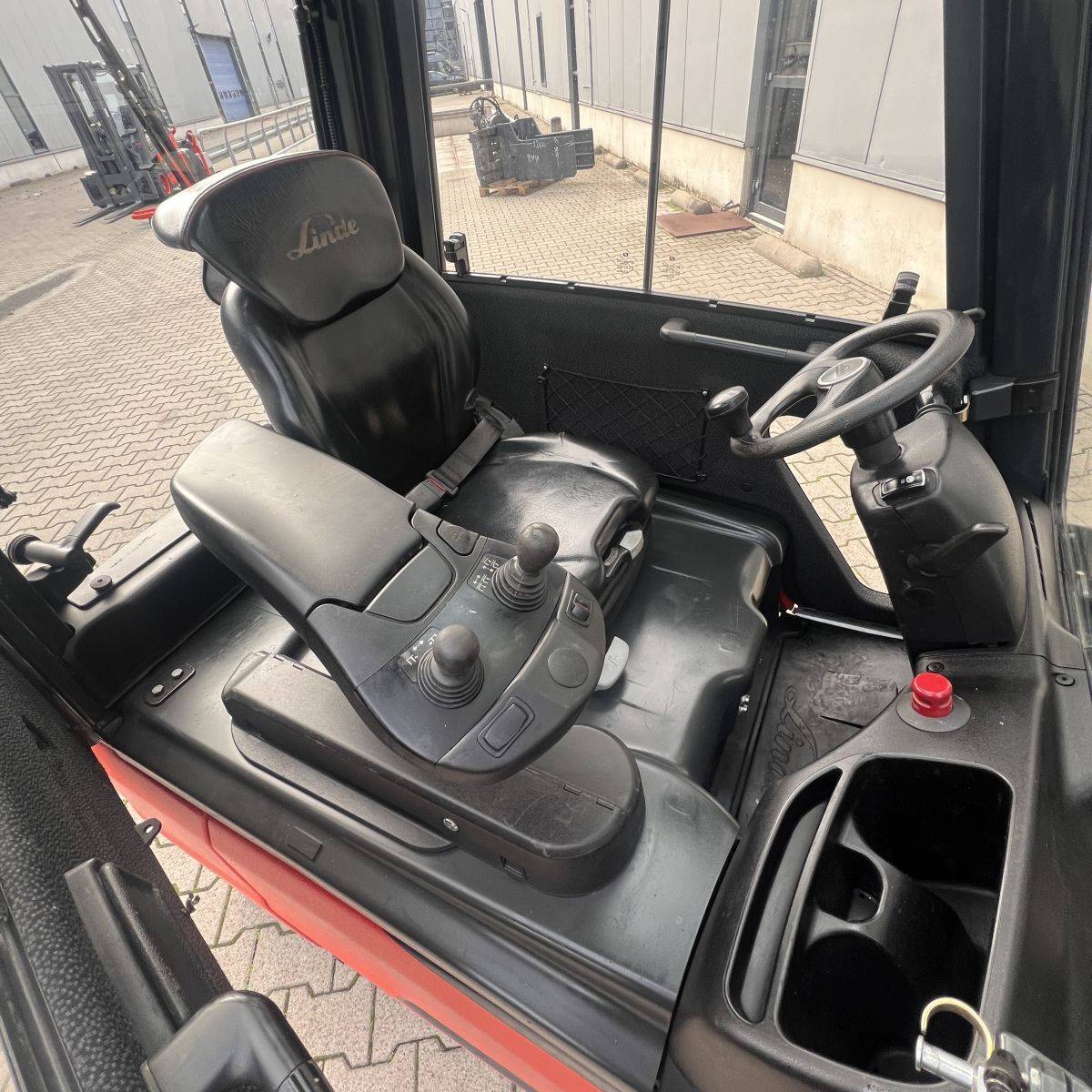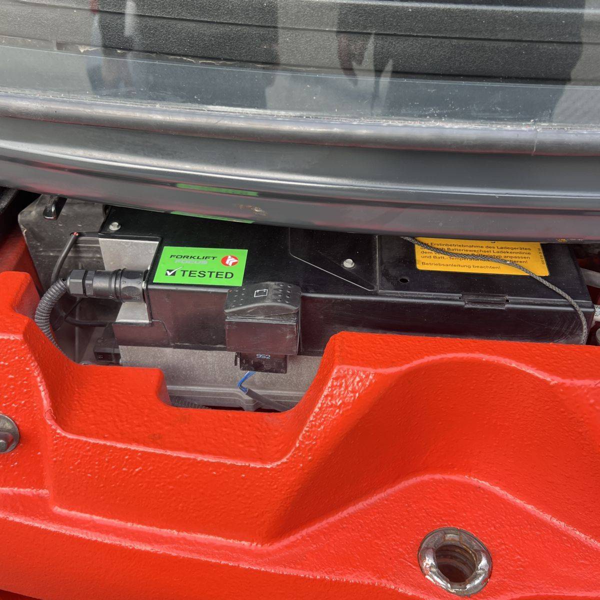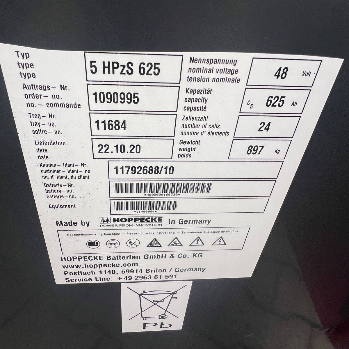 Only 2.100 hours. Triplex Mast, 3rd valve, integral sideshift, load backrest. Full cabin, no heater, 2 pedal operation, roadlights. New premium non marking tyres. Battery Hoppecke 5PzS625 Ah (2020), on board charger.