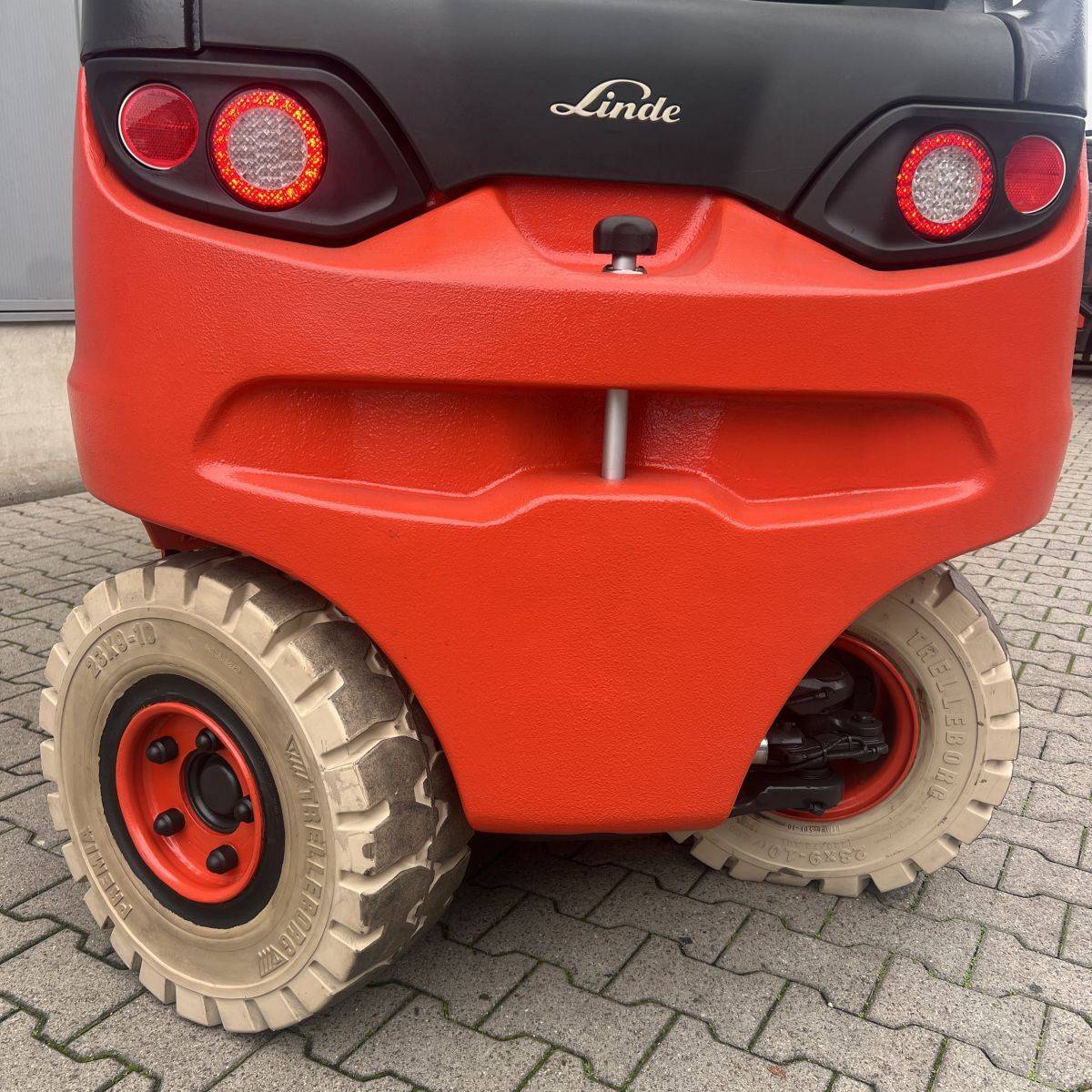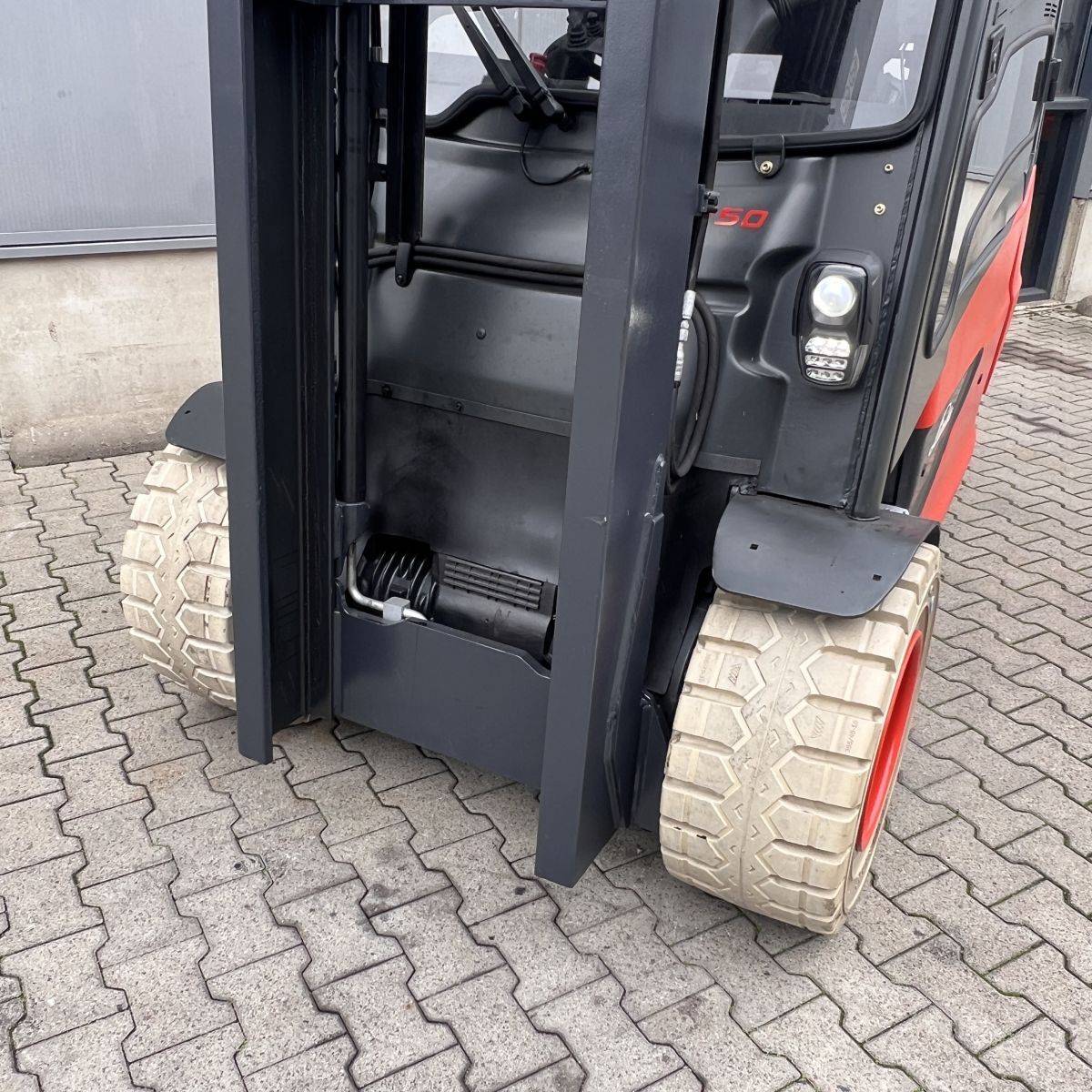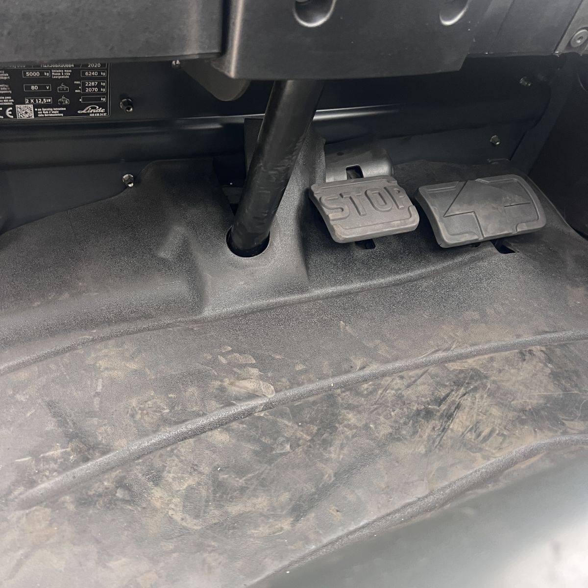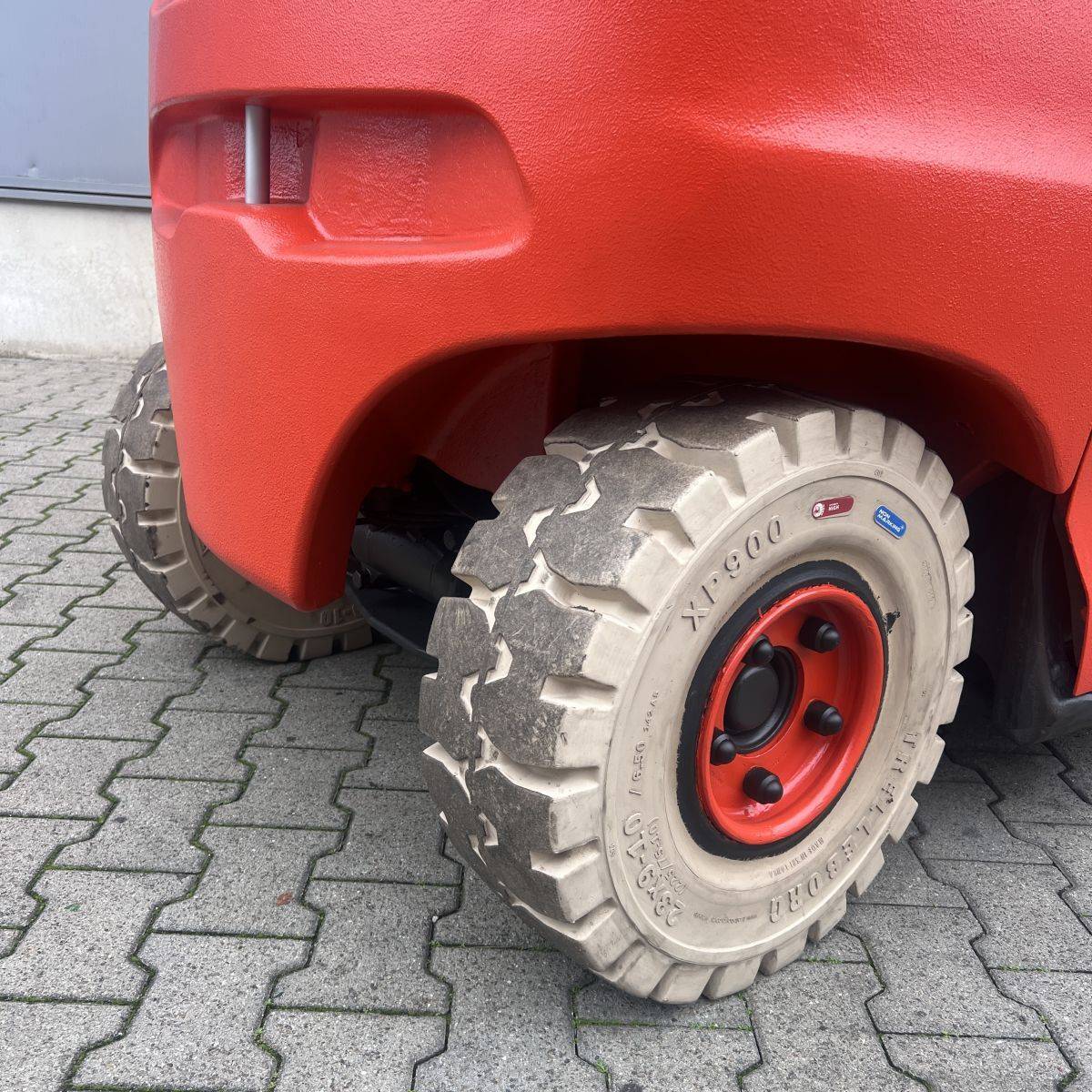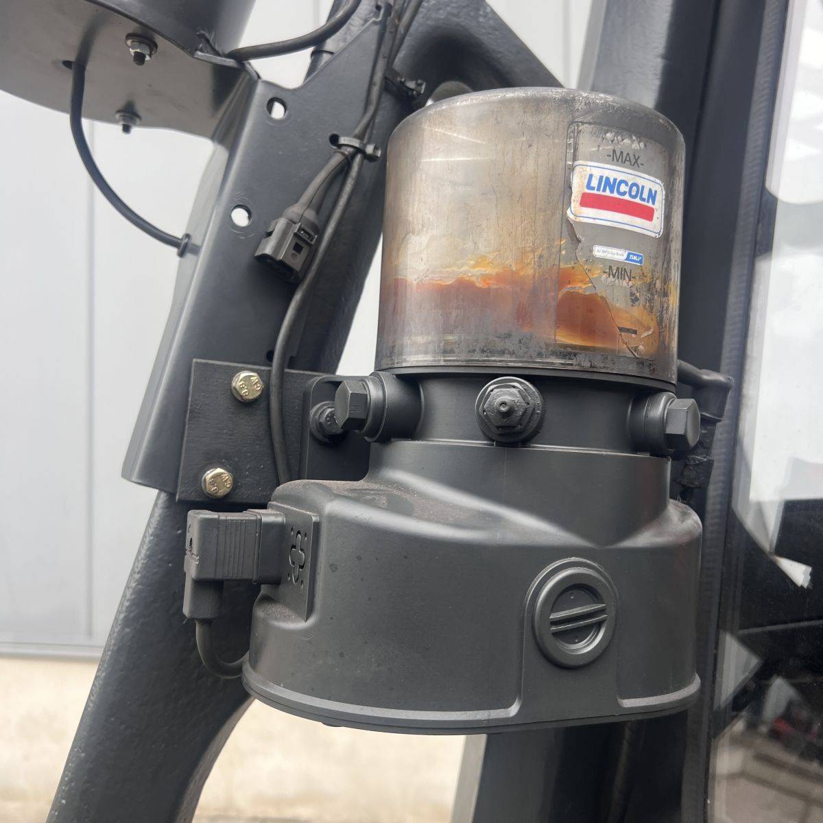 Only 1.870 hours, Load Center 600 mm. Low Container Version: Height of cabin (h6) 2.220 mm. Full cabin, 1 pedal operation, individual levers, heater, roadlights, 3rd and 4th valve, integral forkpositioner / sideshift, bolted forks 1.500 mm. Frame 1.400 mm, opening 400- 1.300 mm over forks. Can also be equipped with normal forkcarriage. Battery 6PzS930 Ah with autofill (2020) . Central greasing system. New Trelleborg Premia Non Marking Tyres.