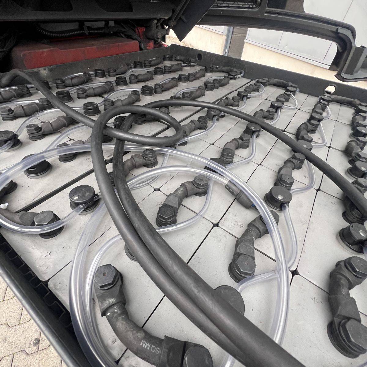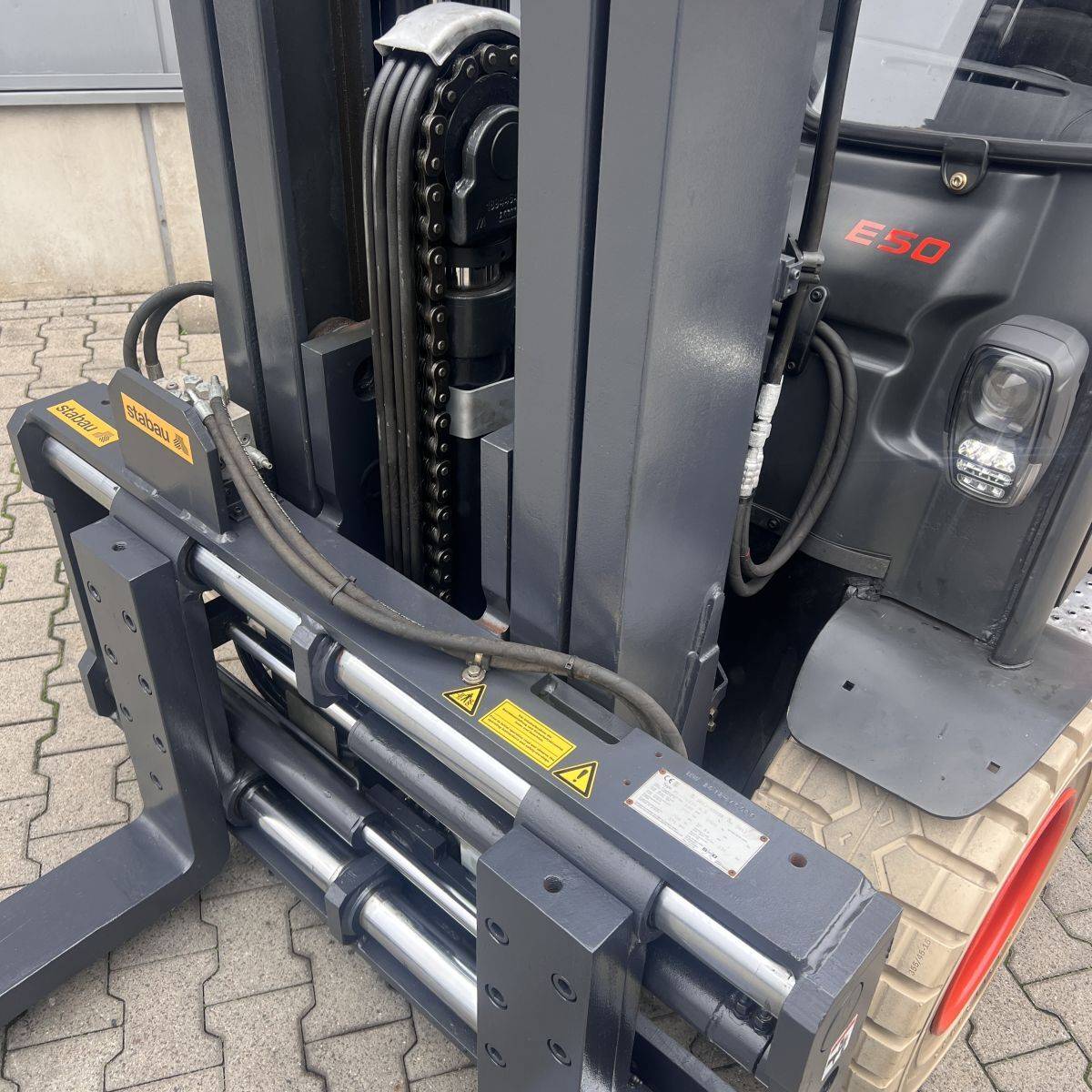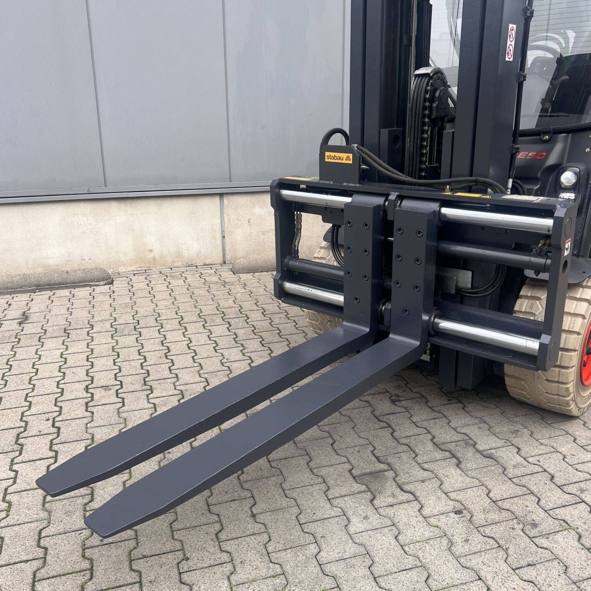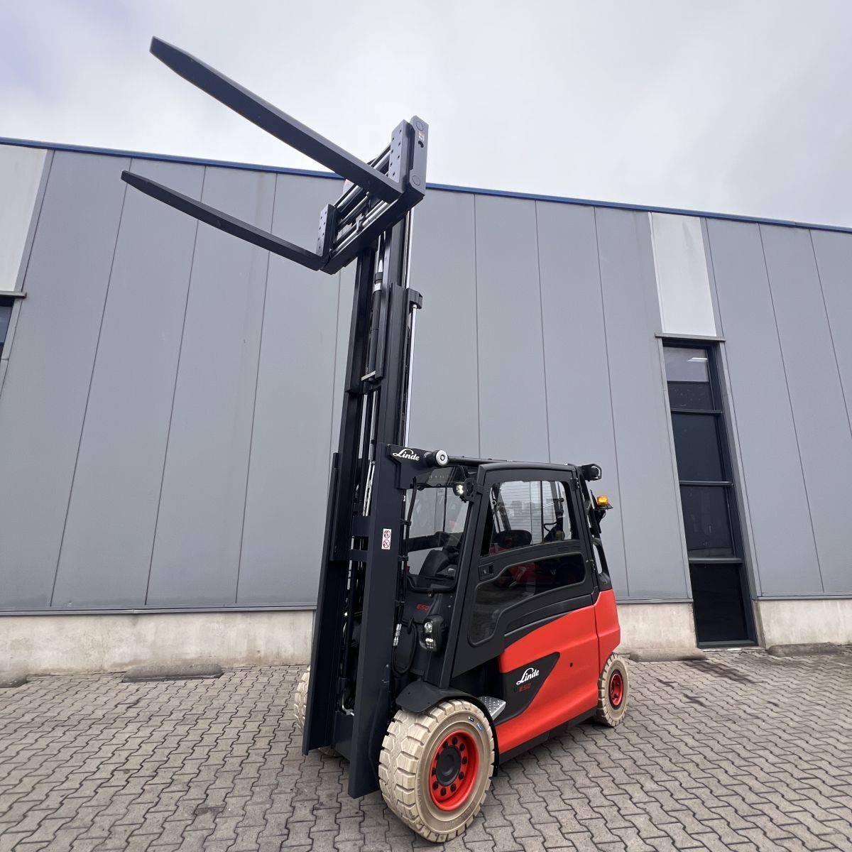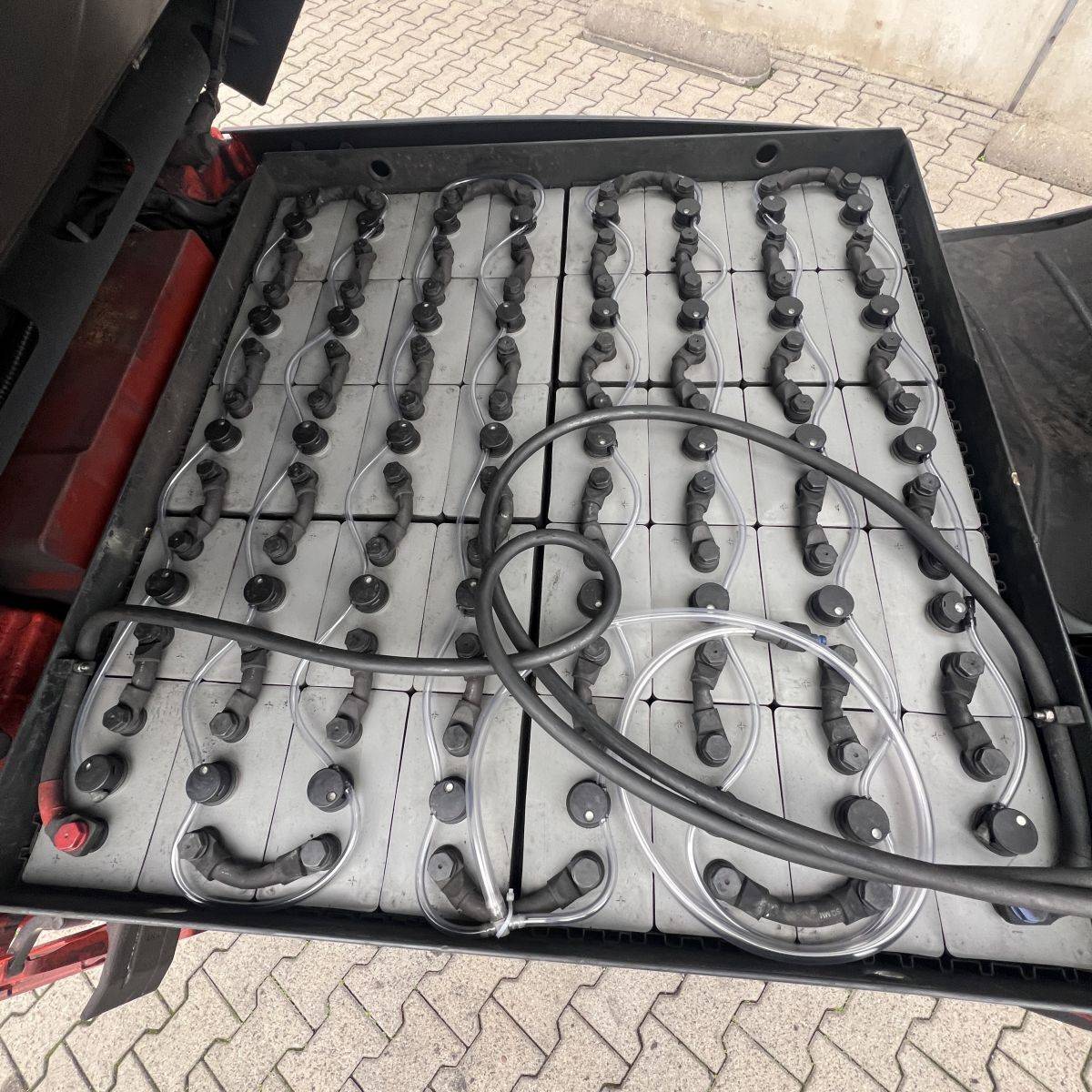 Only 1.870 hours, Load Center 600 mm. Low Container Version: Height of cabin (h6) 2.220 mm. Full cabin, 1 pedal operation, individual levers, heater, roadlights, 3rd and 4th valve, integral forkpositioner / sideshift, bolted forks 1.500 mm. Frame 1.400 mm, opening 400- 1.300 mm over forks. Can also be equipped with normal forkcarriage. Battery 6PzS930 Ah with autofill (2020) . Central greasing system. New Trelleborg Premia Non Marking Tyres.