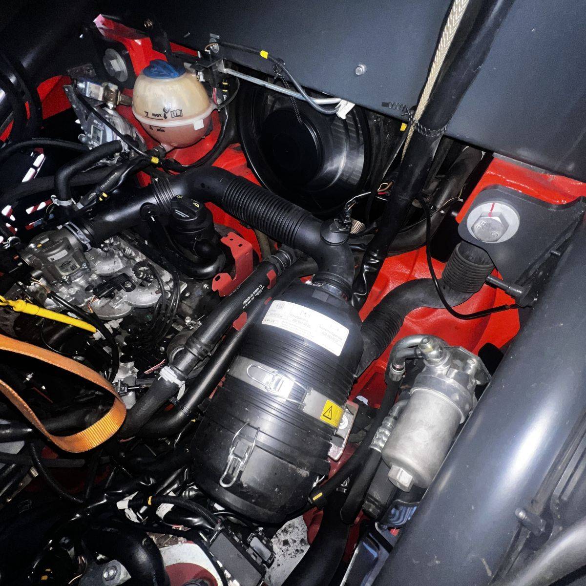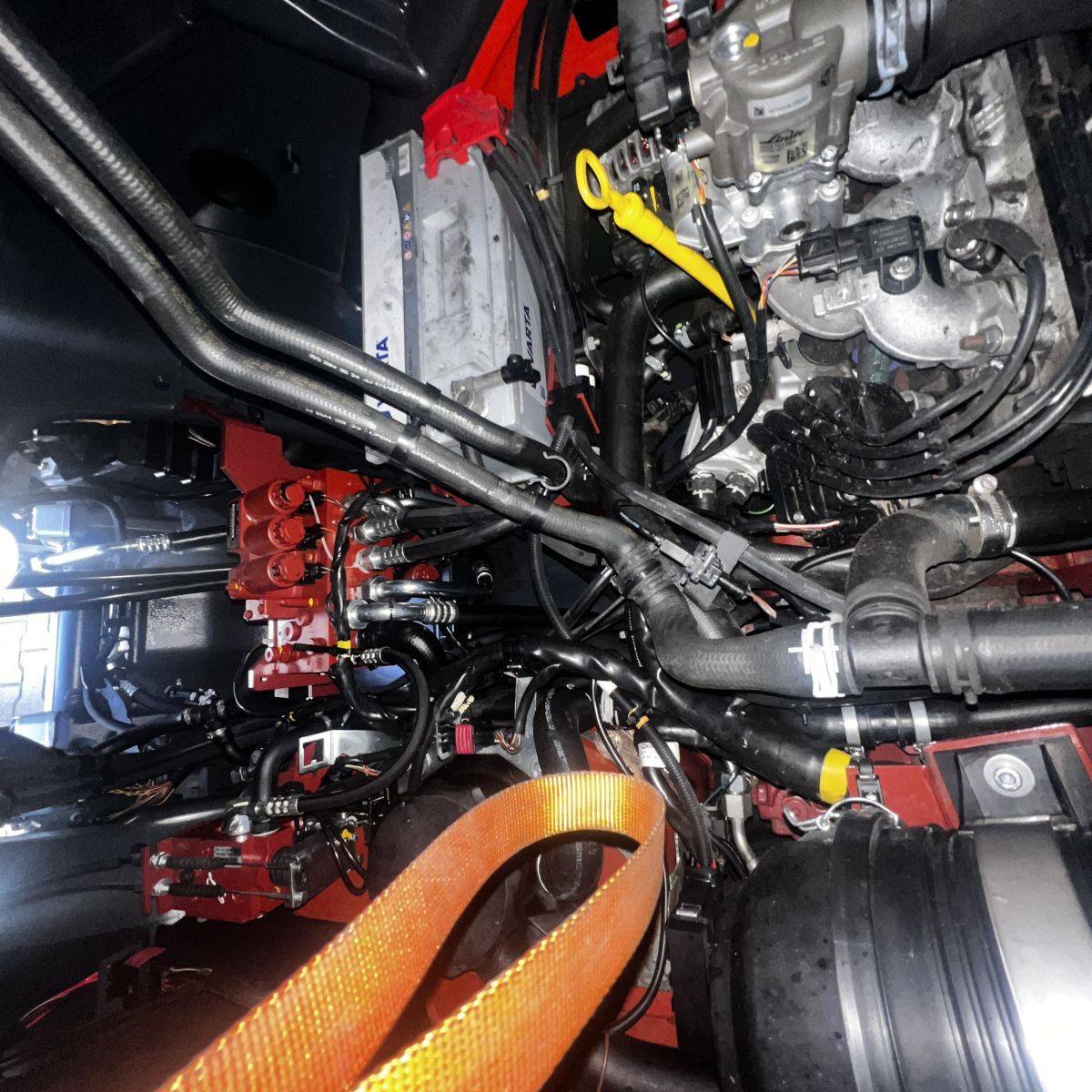 Only 6.000 hours, confirmed. Raised cabin, airsuspensioned seat, 2-pedal operation, 3rd valve, accumulator, oilpressure relieve switch. SE Tyres, fixed LPG tank. Forks 10 cm off the ground