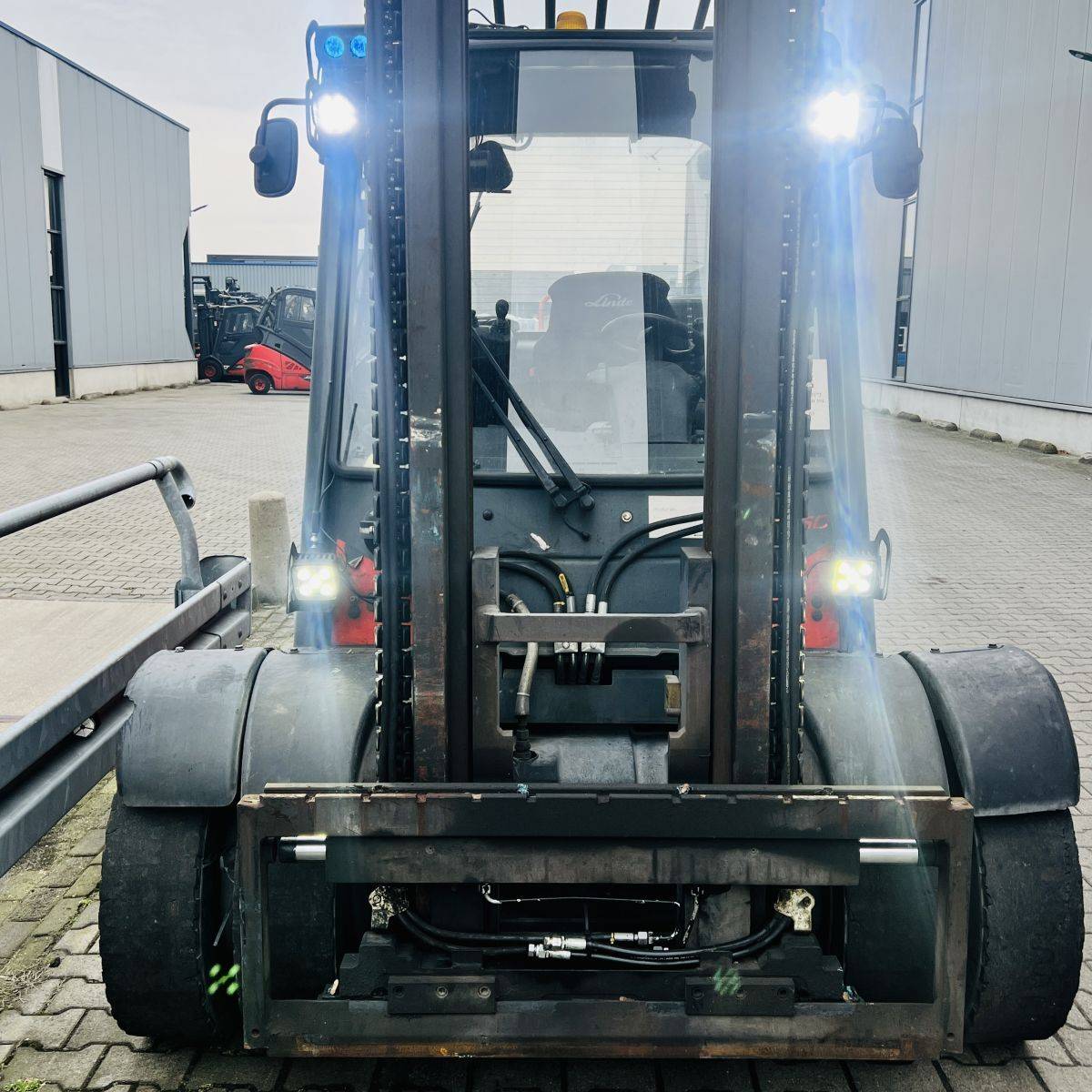 Full cabin, heater, airconditioning, airsuspensioned heated seat, rear drive camera / monitor. Hydraulics: 3rd and 4th valve complete, integral sideshift, accumulator to the hydraulic system. Twin SE Tyres, LED working lights.