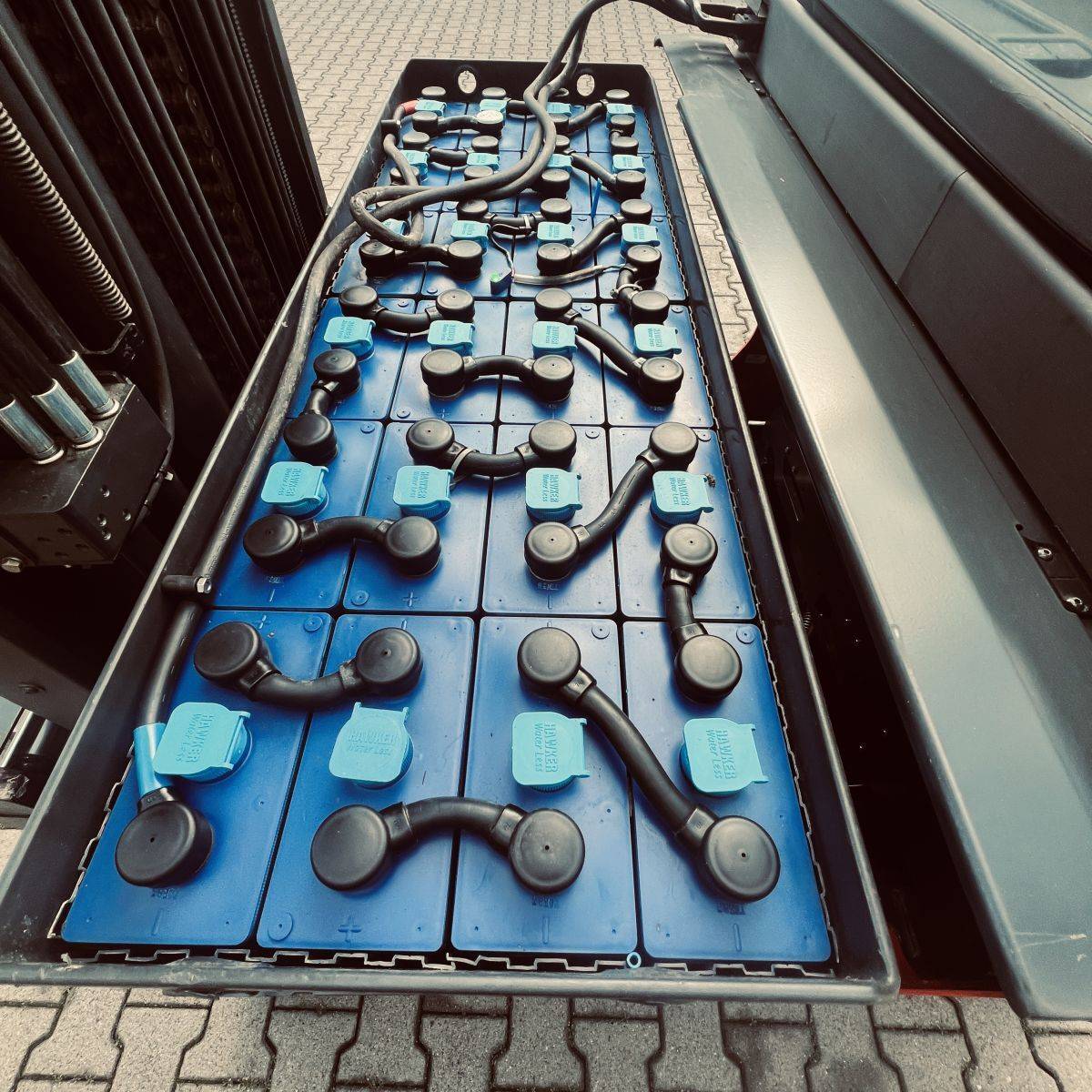 Panzerglass roof for maximum visibility, 1 pedal-operation, fork-levelling, sideshift-centering, liftheight indicator, airsuspensioned seat. Battery Hawker 5PzS 775 Ah (2019)