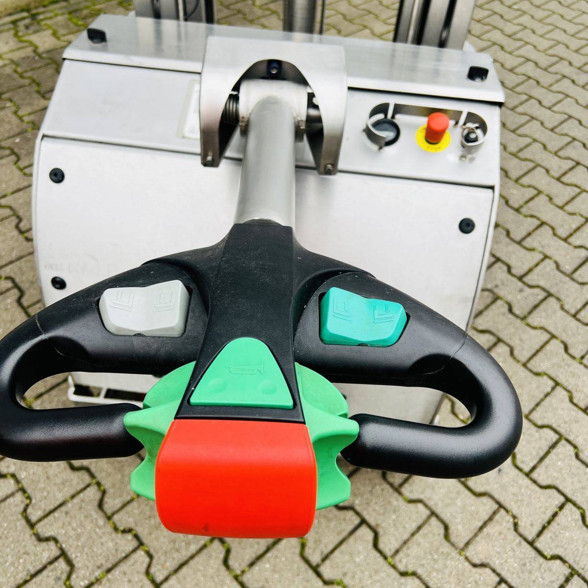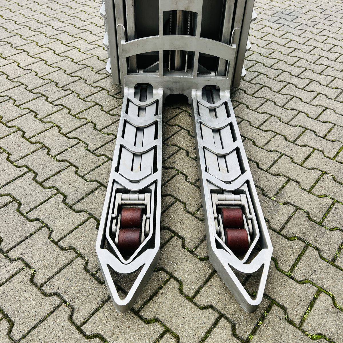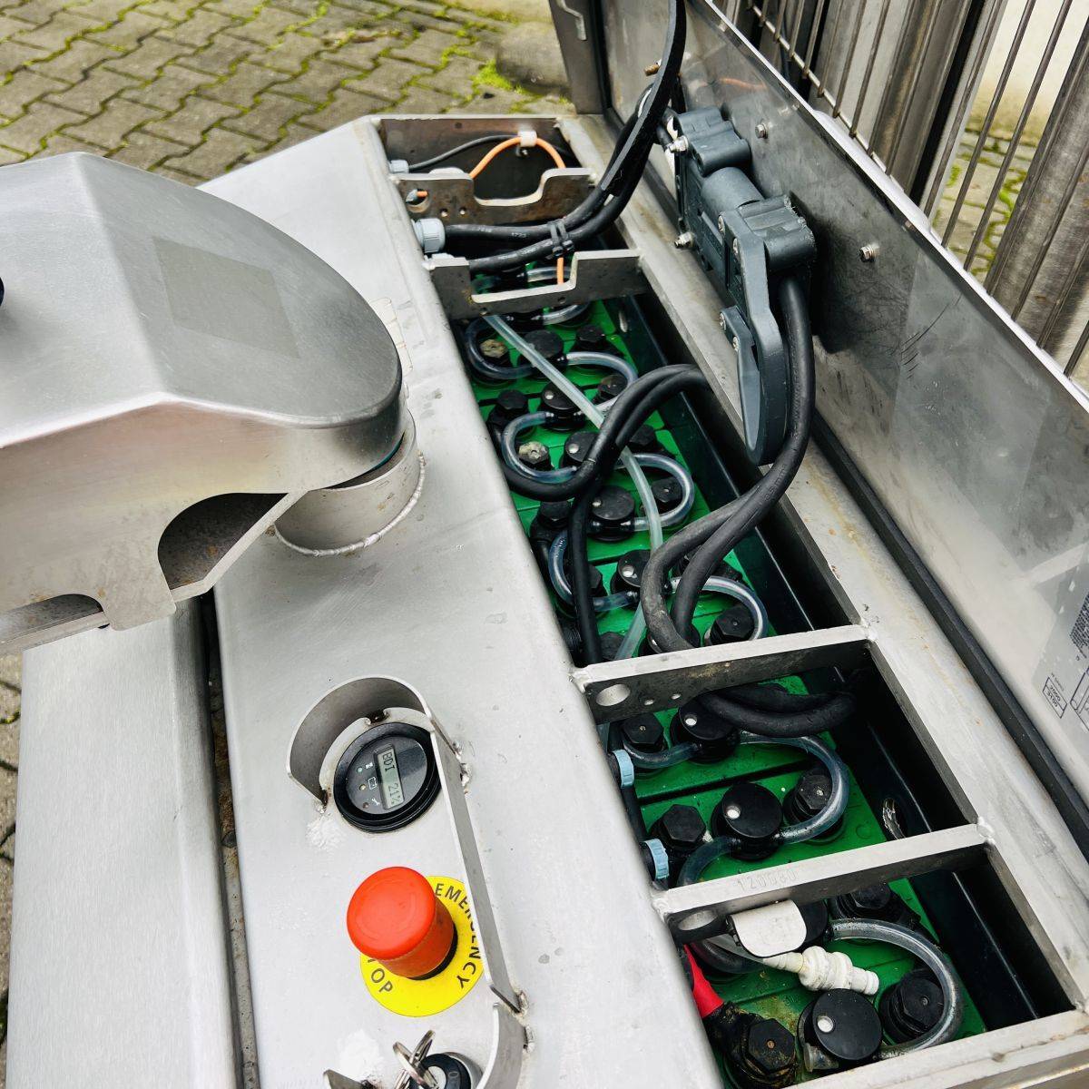 Only 500 hours, original battery 3HPzB258 Ah, year 11-2019. Stainless steel 304. Capacity 1.200 Kgs.Forks 1.200 x 570 mm over forks. Initial lift / straddle lift, Twin drive motors. Fully functional. Easy to service, easy to clean