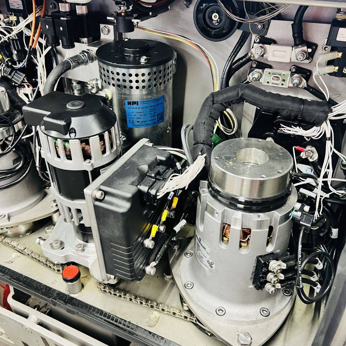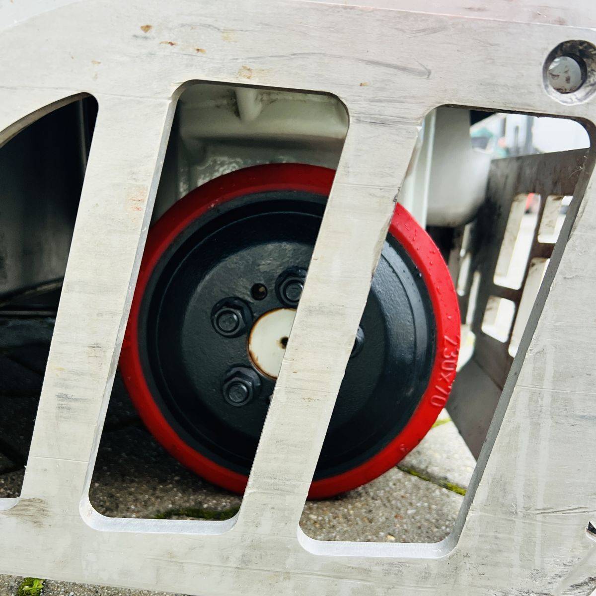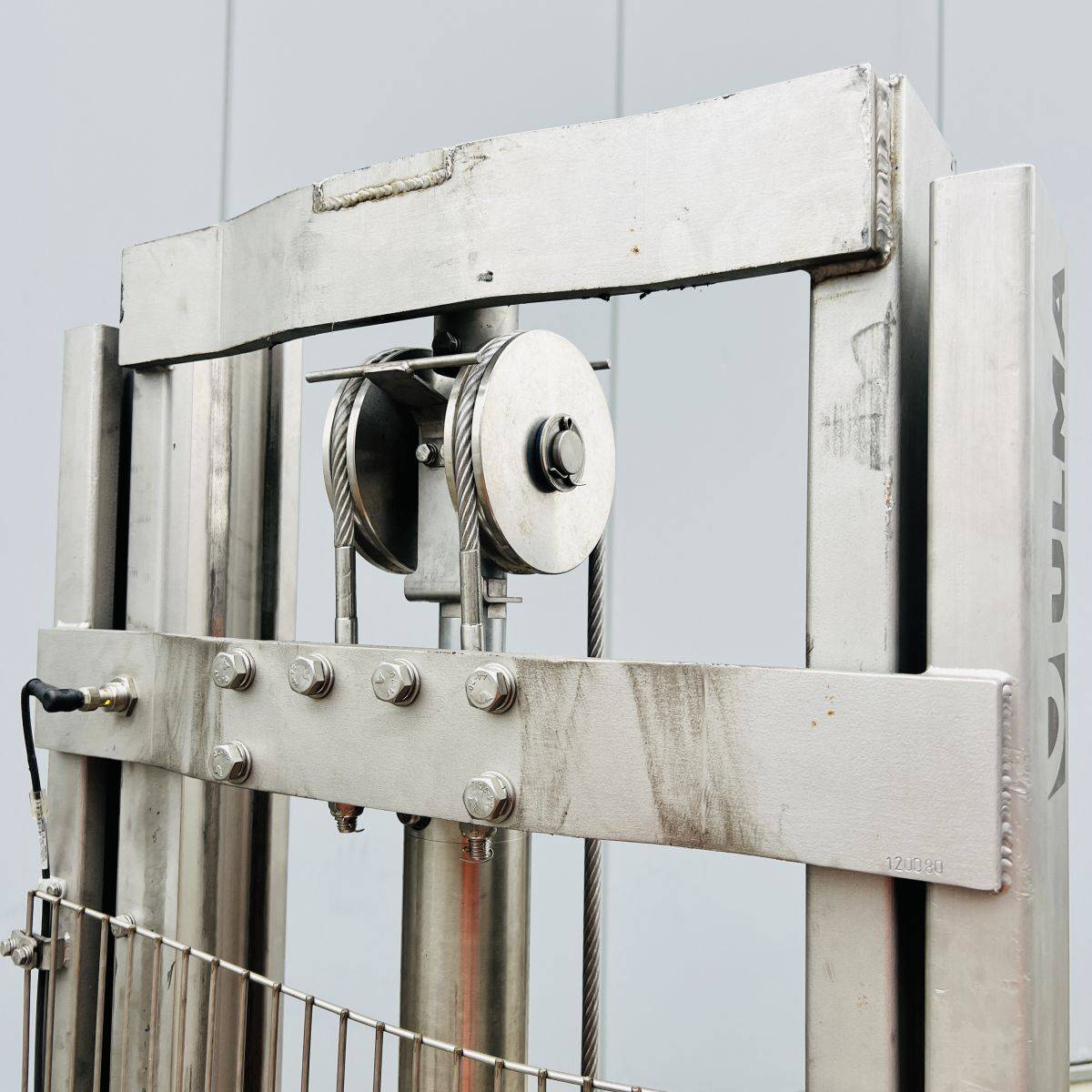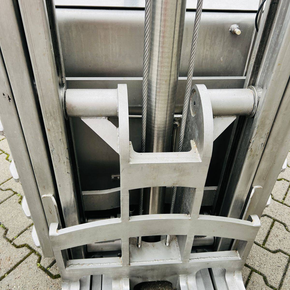 Only 500 hours, original battery 3HPzB258 Ah, year 11-2019. Stainless steel 304. Capacity 1.200 Kgs.Forks 1.200 x 570 mm over forks. Initial lift / straddle lift, Twin drive motors. Fully functional. Easy to service, easy to clean