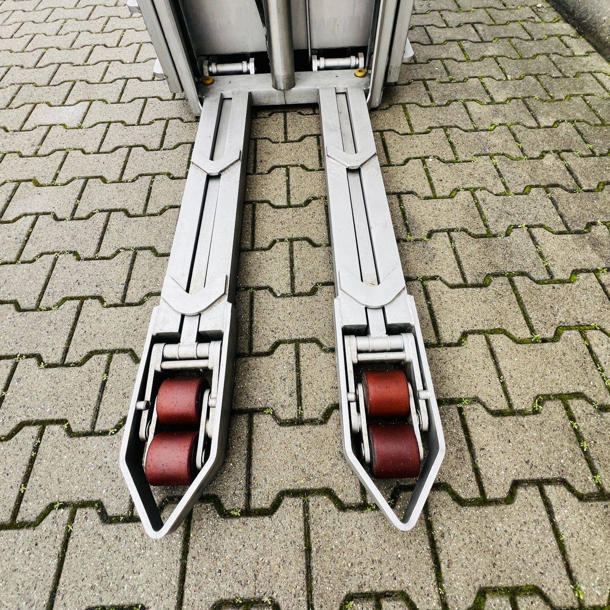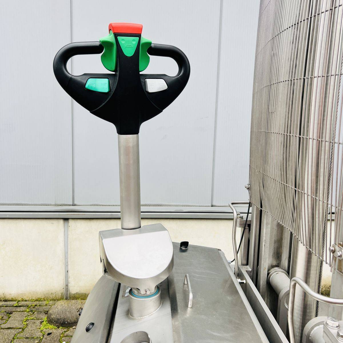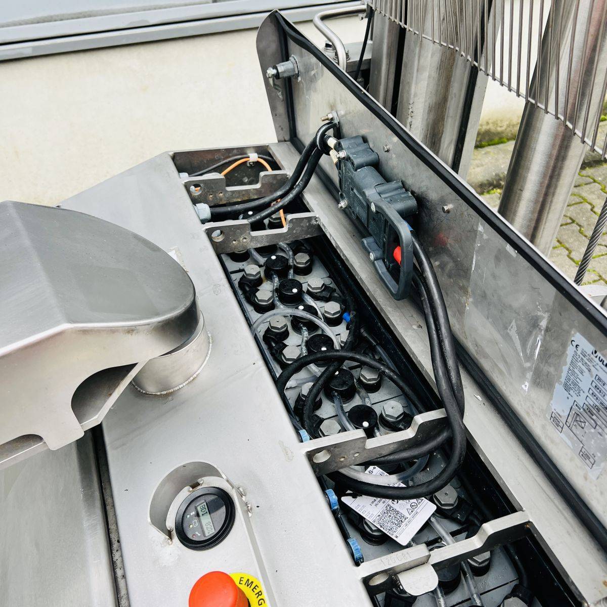 Only 274 hours, Battery 3HPzB258 Ah year 2023. Stainless steel 304. Capacity 1.200 Kgs. Forks 1.200 x 570 mm over forks. Initial lift / straddle lift. Twin drive motors. Fully functional. Easy to service, easy to clean