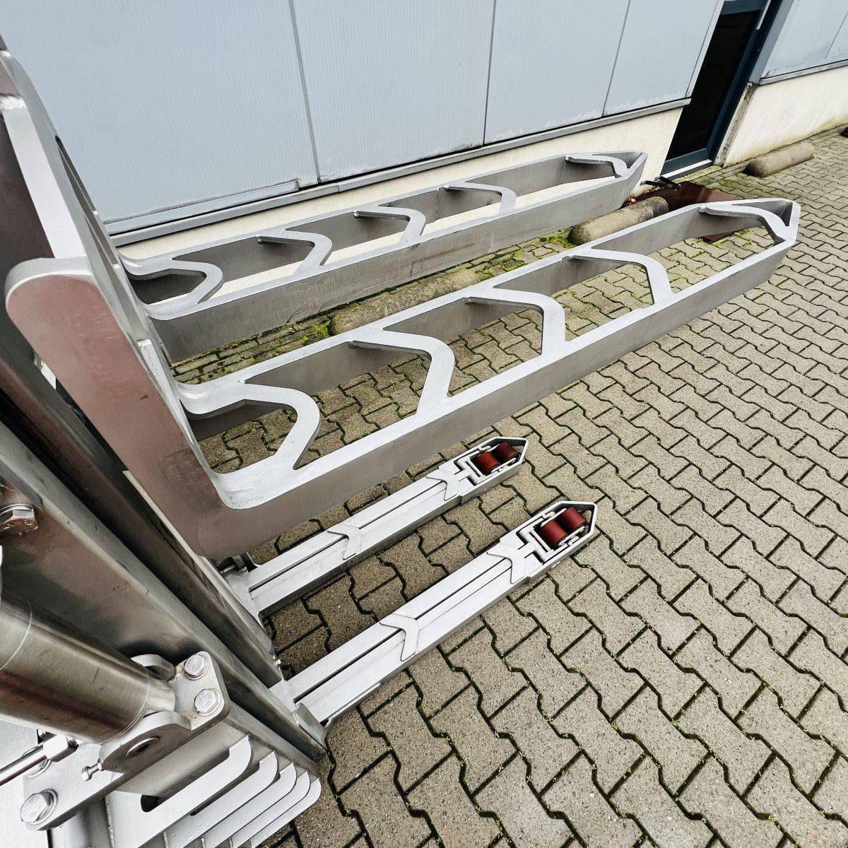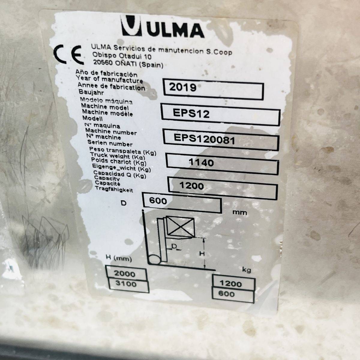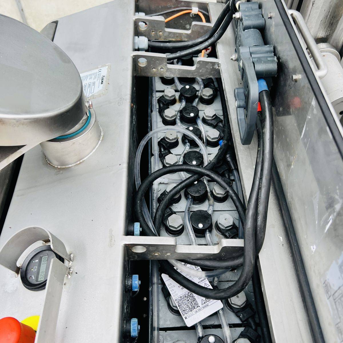 Only 274 hours, Battery 3HPzB258 Ah year 2023. Stainless steel 304. Capacity 1.200 Kgs. Forks 1.200 x 570 mm over forks. Initial lift / straddle lift. Twin drive motors. Fully functional. Easy to service, easy to clean