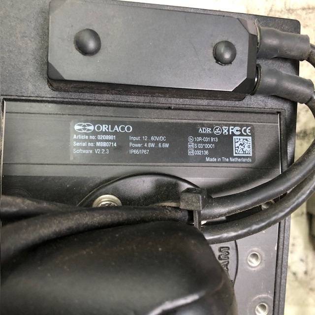 Kamerasystem Orlaco mit Monitor Typ 0208901, Eingang 12–60 V/DC, Leistung 4,8 W … 6,6 W, Software: V2.2.3, Kamera Typ 0198010 für Reachstacker Jungheinrich ETV114 /Linde R10-25, BR 1120, ausgebaut aus Jungheinrich ETV114, Baujahr 2011