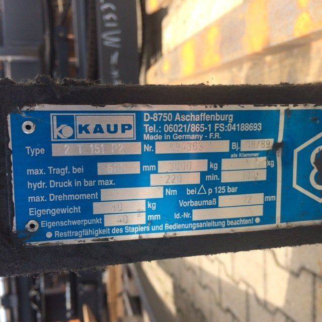 Kaup Seitenschieber Typ 2T151P2 . Eigengewicht 80 kg. Gerätebreite 1040 mm, Vorbaumass 72 mm. Eigenschwerpunkt 40 mm. mit Last Rückenlehne, Genommen aus Linde E15C, Series 322