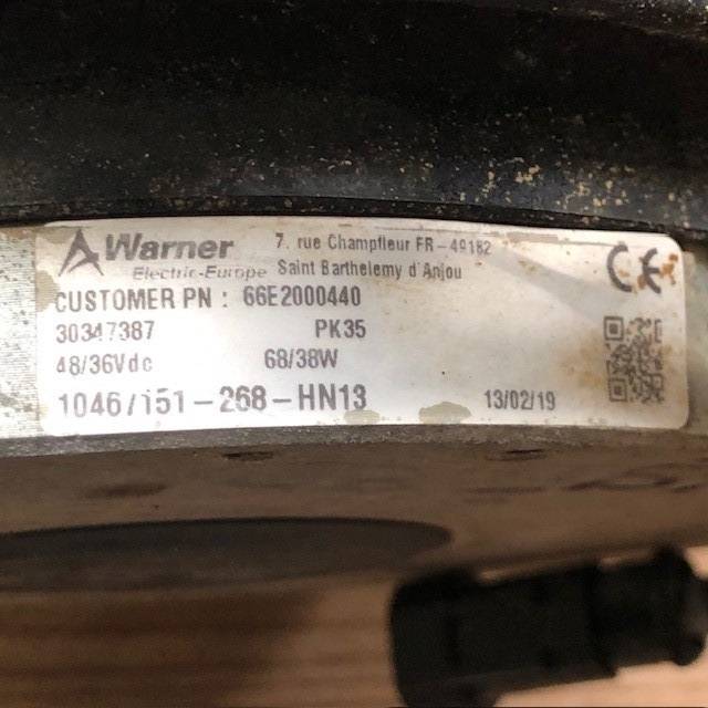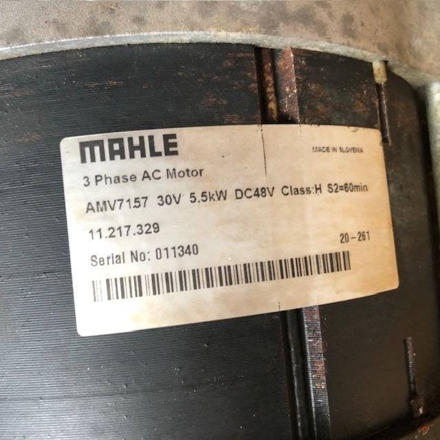 Linke Antriebseinheit mit Mahle-Motor AMV7157, 30 V, 5,5 kW, DC 48 V, Bonfiglio-Getriebe, Warner-Elektrobremse für Caterpillar EP20ANT. Ausgebaut aus ETB24A00127, Baujahr 2019, 9.991 Betriebsstunden. Identisch mit Mitsubishi FB20ANT.