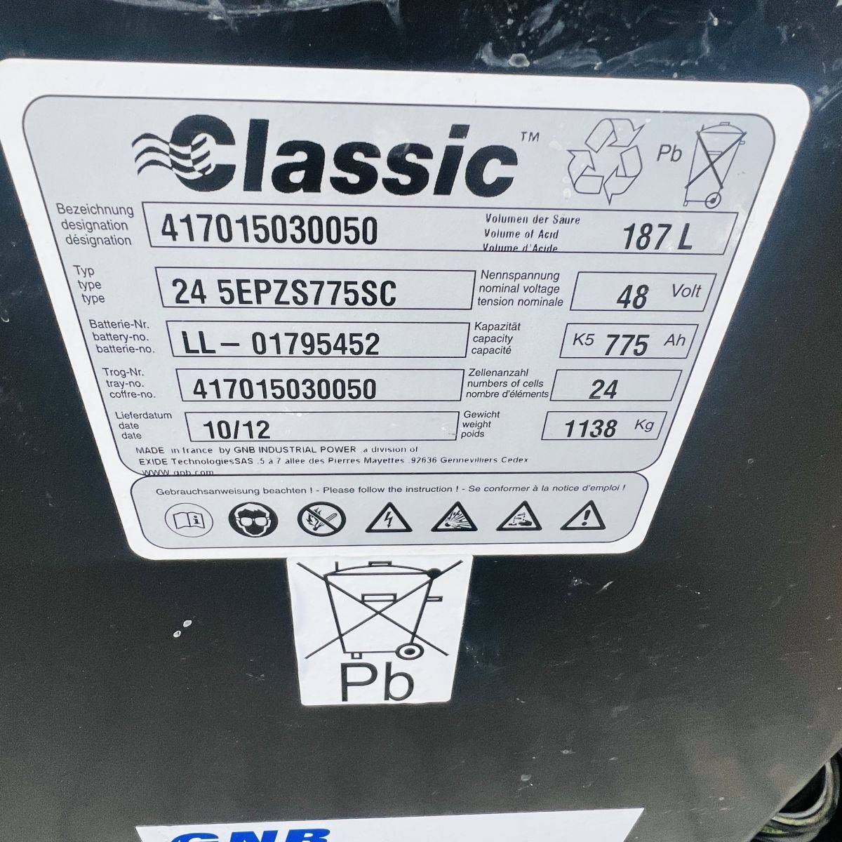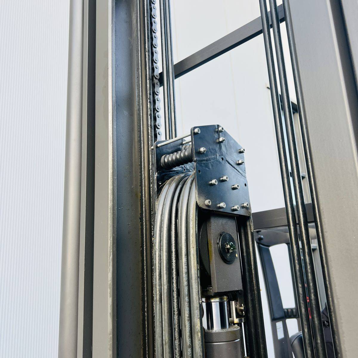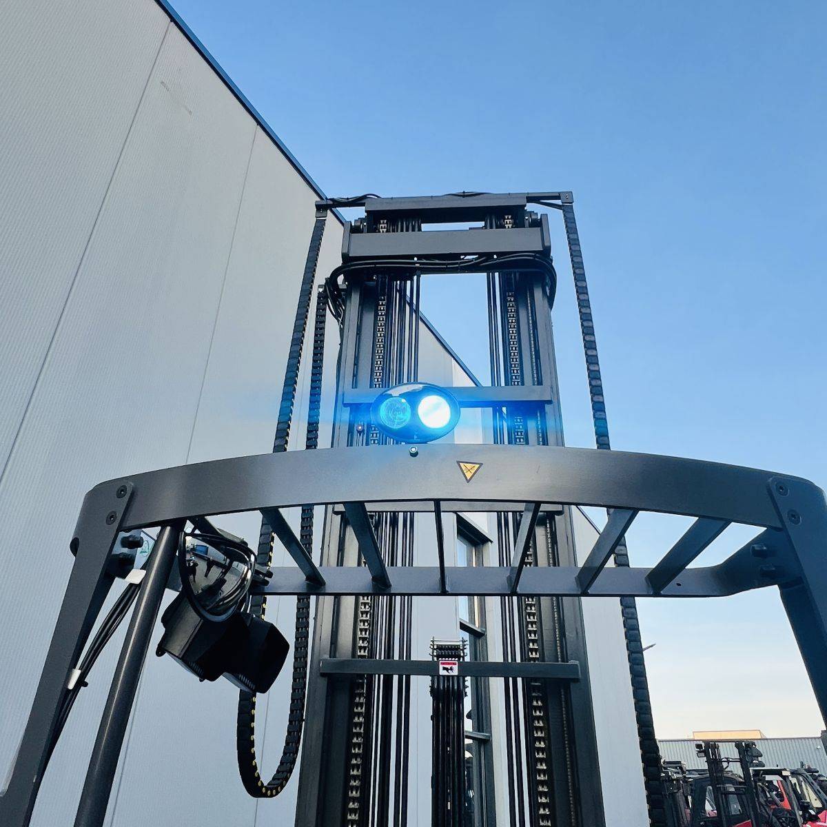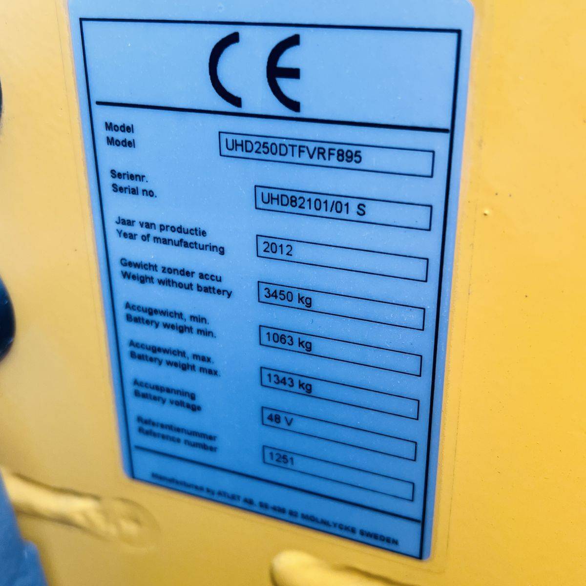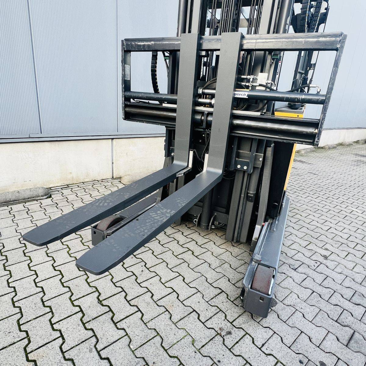 Reachtruck with 2.500 kgs capacity, as new condition, only 1.600 hours confirmed. Tilting forkcarriage, Griptech Hook on Forkpositioner, Sideshift, Forks 1.200 mm, opening 390 - 1.430 mm over forks.Orlaco twin fork-mounted cameras, RAVAS scale / weighing system. Ministeer, ATLET twin-pedal, Blue Spot, Battery Exide 5PzS 775 Ah (2012)