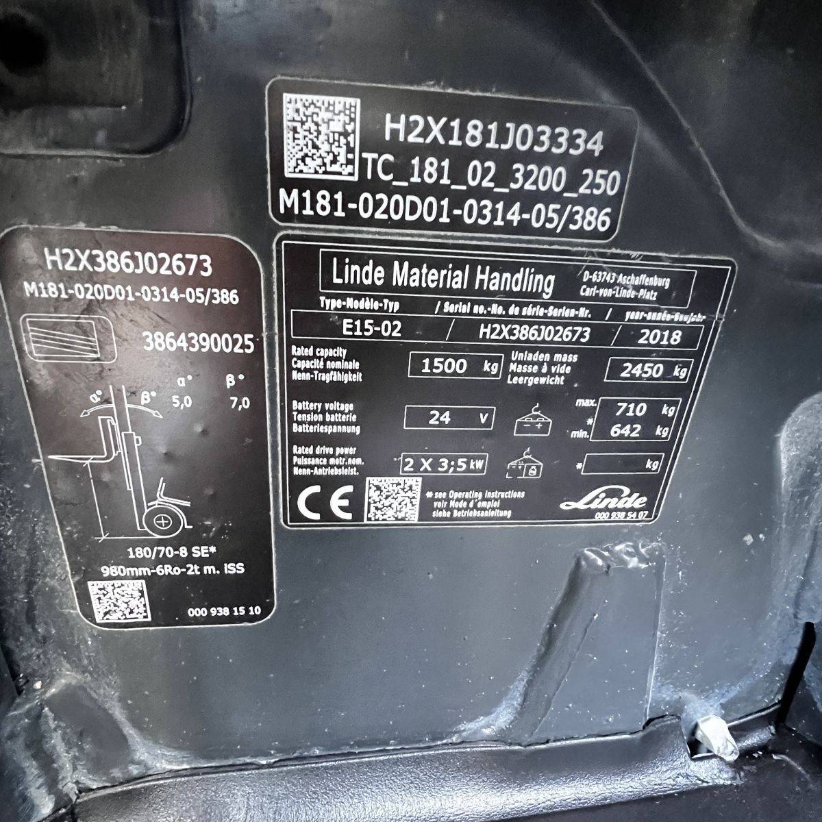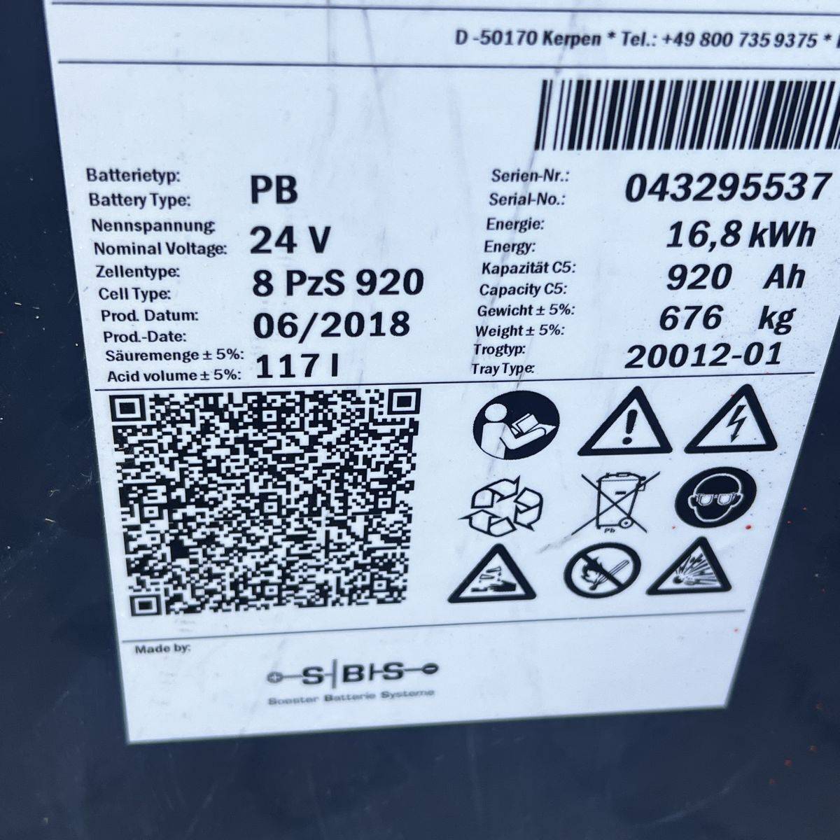 Only 2.500 hours. Full freelift mast, Integral sideshift, 3rd valve, 1-pedal operation, LED Lights. Battery 24 Volt, 920 Ah (2018), charger, 4 new SE Tyres