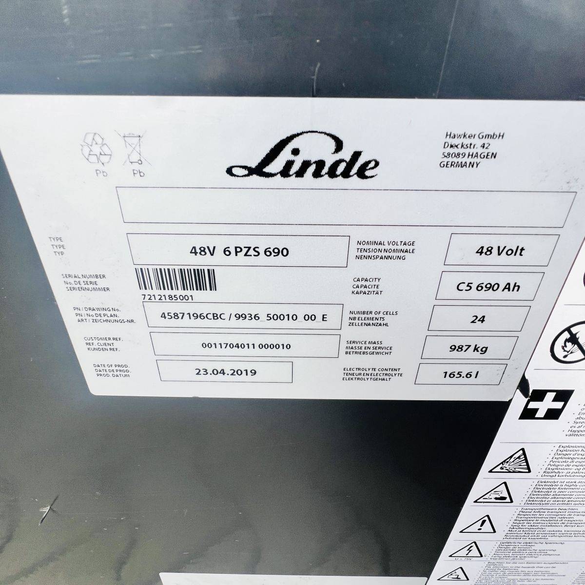 Only 4.900 hours. Half cabin with wipers, 2 pedal operation, Drexel scale / weighing system, 3rd valve, integral sidesift, load backrest. Battery Hawker 6PzS690 Ah, autofill, on board HF Charger complete with cable. Non marking tyres (rear new)