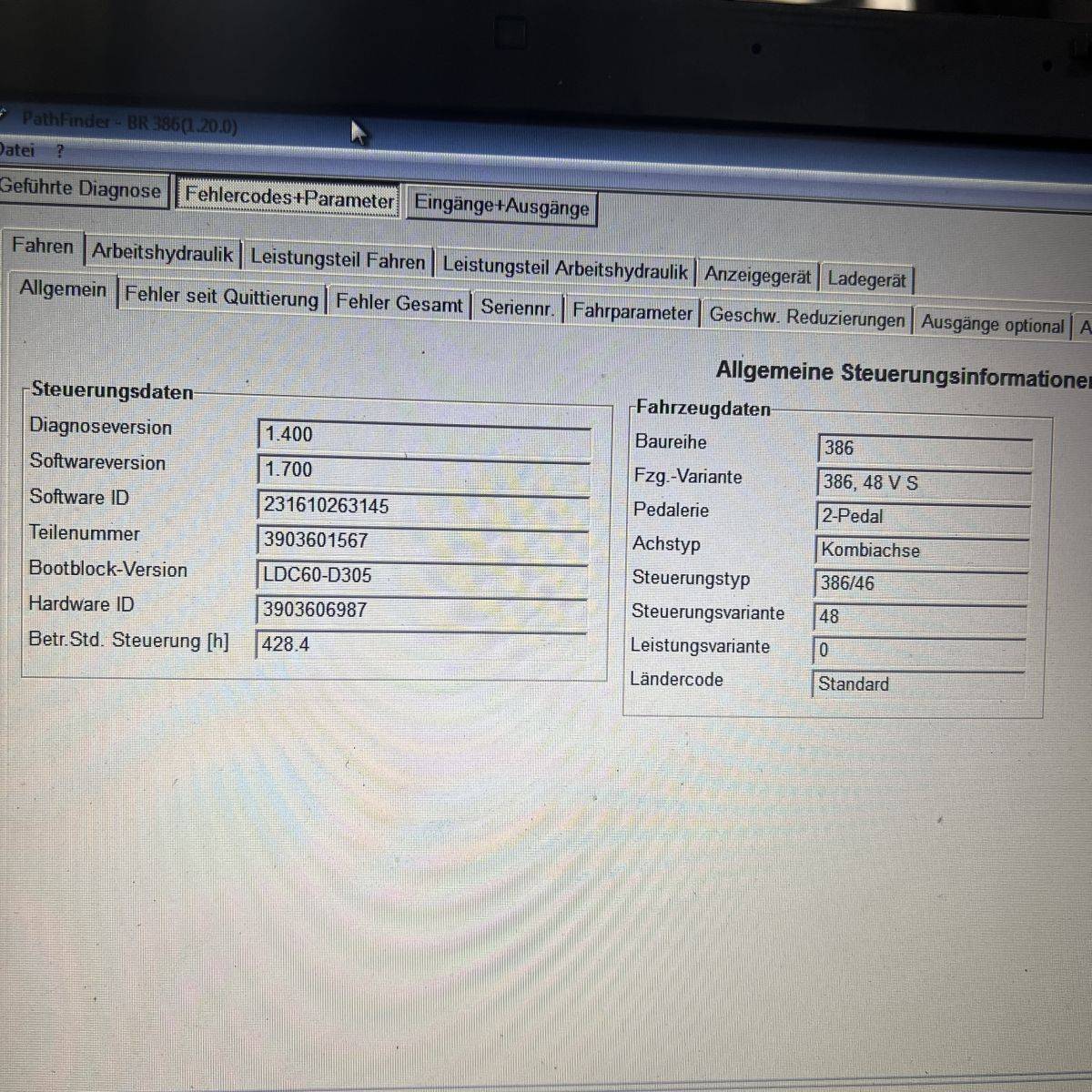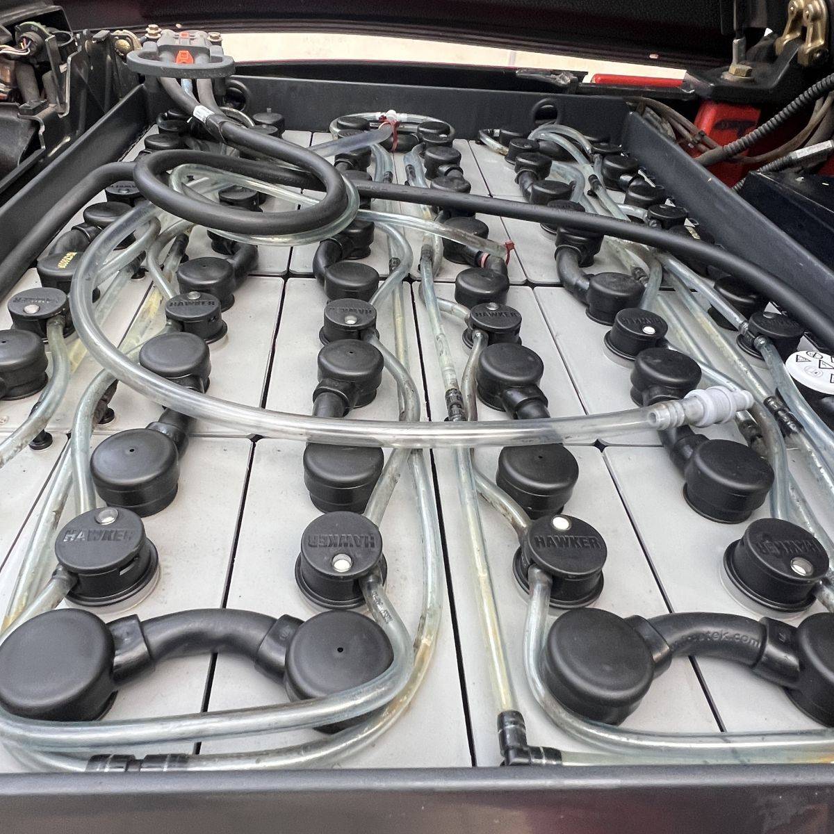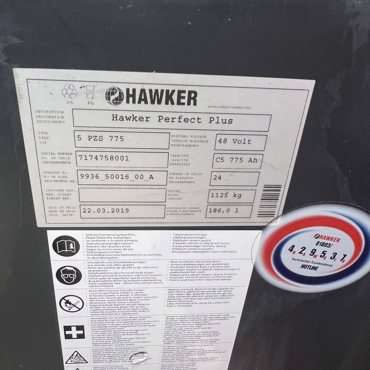 Low hours. Full cabin, heater, 2 pedal operation. Roadlights, LED lights, 3rd valve, integral sideshift, SE Tyres, Battery Hawker 5PzS 775 Ah (capacity 78%, OK). On board charger, Continental SE Tyres