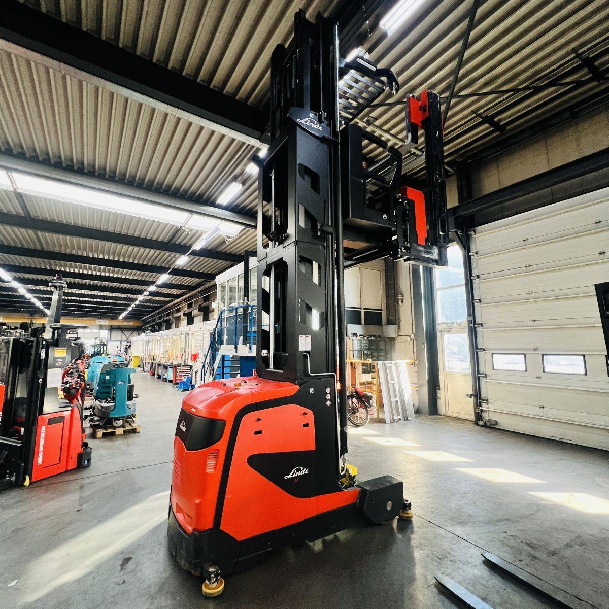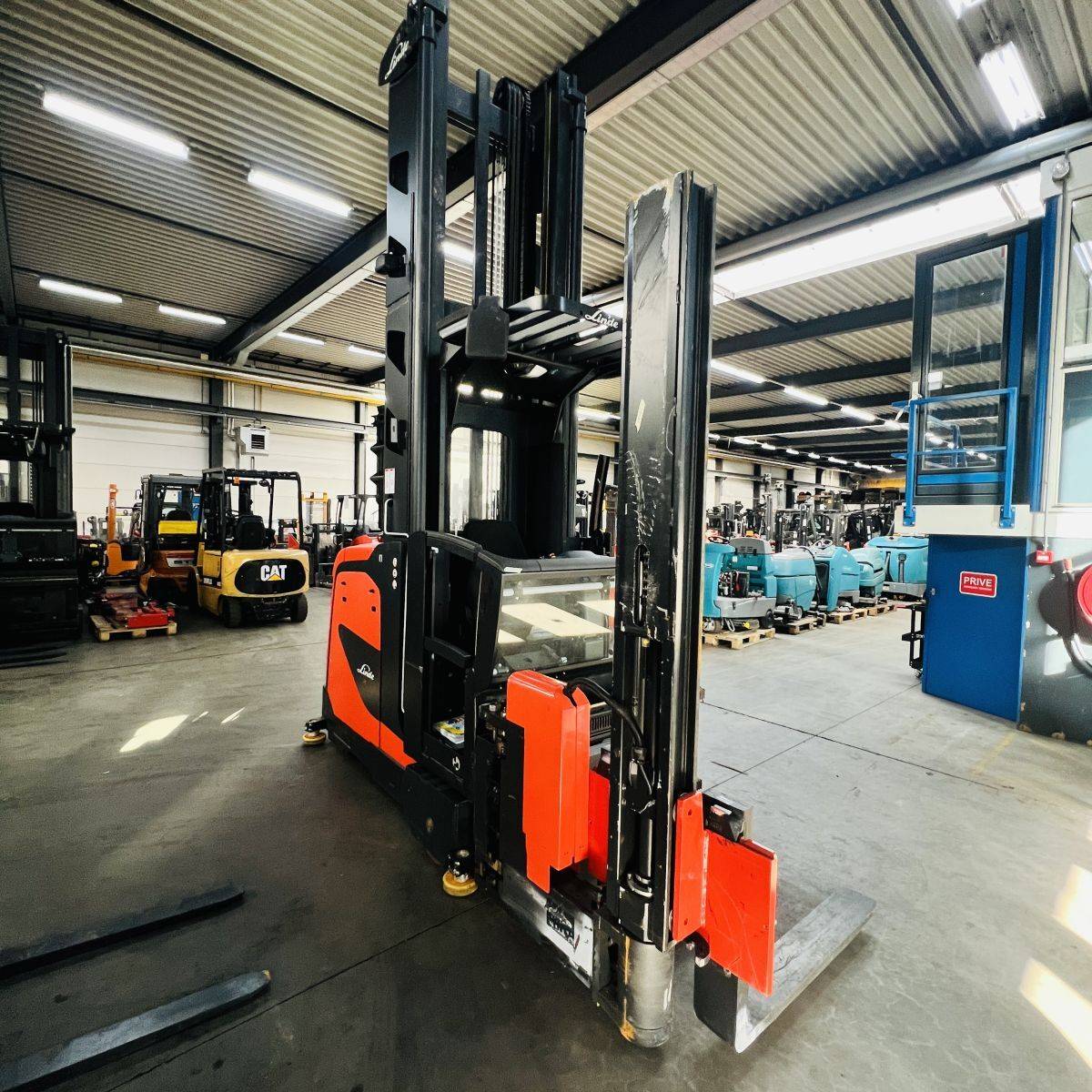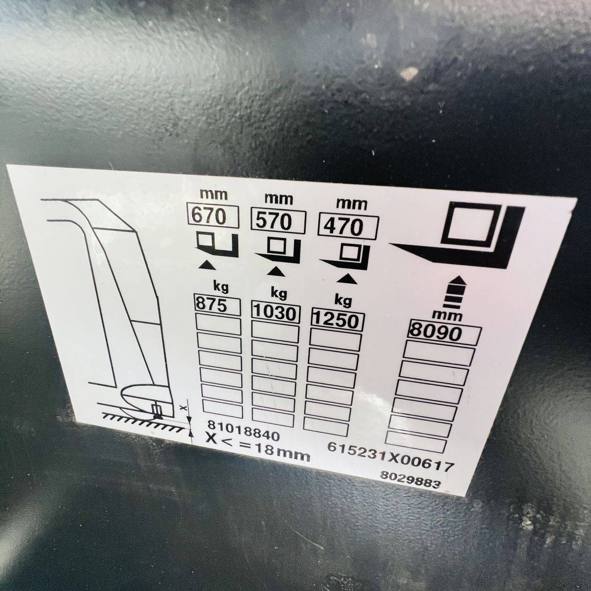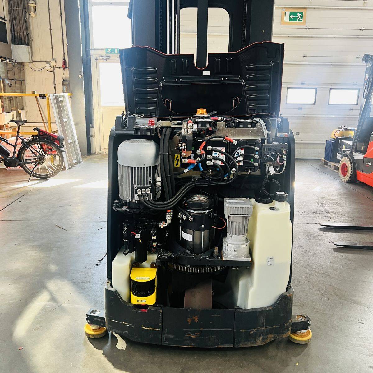 As new only 350 hours original. Kombi-Truck 1.250 Kgs with mechanical guidance (4 side-rollers) and Person detection system (Elokon PSA Personen Schutz Anlage). Cabin-width 1.270 mm. Width over siderollers 1.450 mm, Fork Lift (h3) 6.200 mm, Supplementary Lift (h9) 1.800 mm. (H25) Max Forkheight = (h3+h9+h13) 8.090 mm. 80 Volt version. Battery 80 V 3PzS 465 (11/2020).
