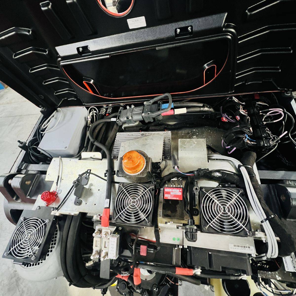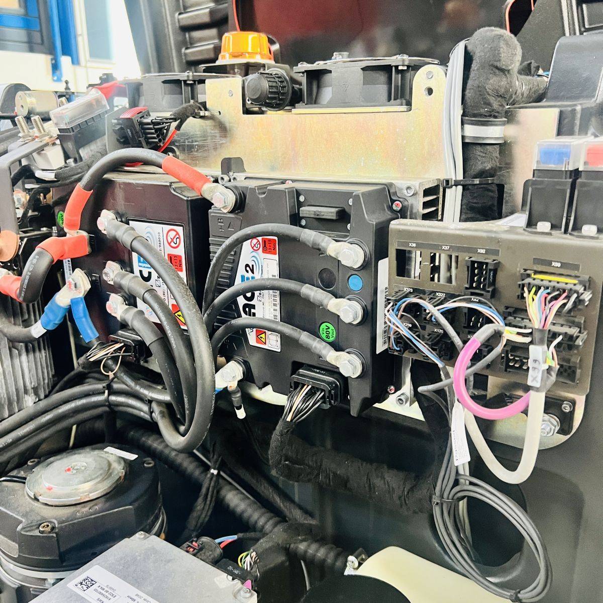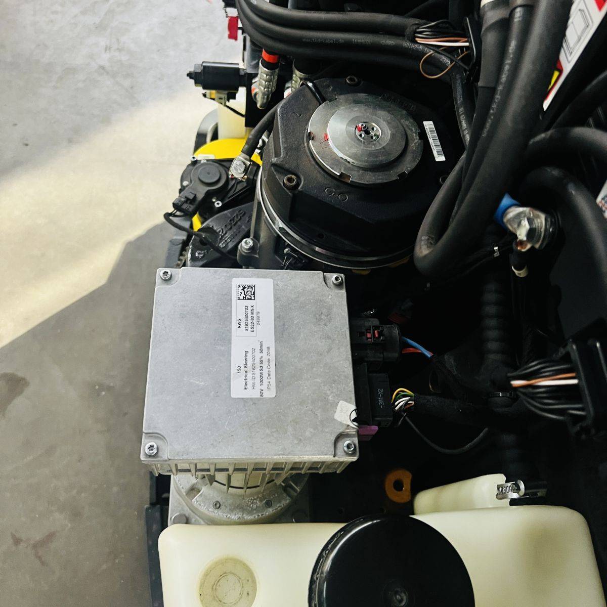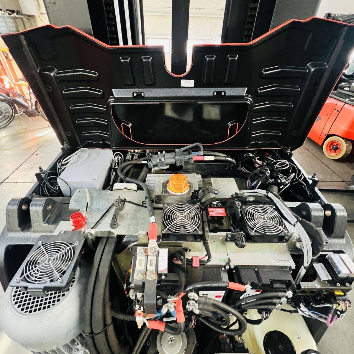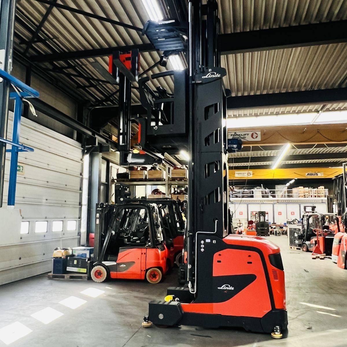 As new only 350 hours original. Kombi-Truck 1.250 Kgs with mechanical guidance (4 side-rollers) and Person detection system (Elokon PSA Personen Schutz Anlage). Cabin-width 1.270 mm. Width over siderollers 1.450 mm, Fork Lift (h3) 6.200 mm, Supplementary Lift (h9) 1.800 mm. (H25) Max Forkheight = (h3+h9+h13) 8.090 mm. 80 Volt version. Battery 80 V 3PzS 465 (11/2020).