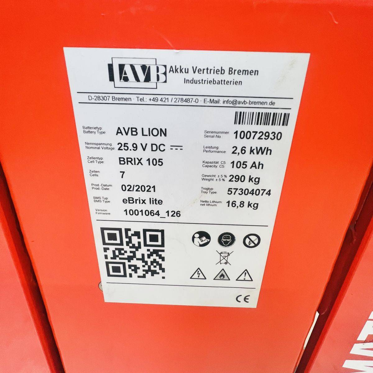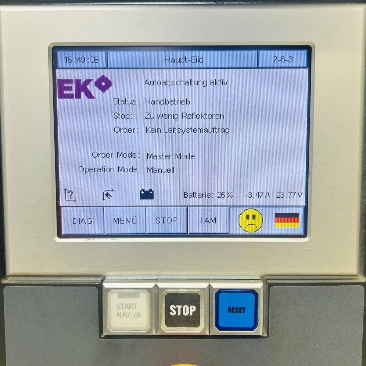 AGV By EK-Automation (Germany) , check https://ek-robotics.com/en/technology/agv-automated-guided-vehicles/. Batterij ABV Lion, 25.9V / 105 Ah (2021) without charger. Machine is OK running in manual mode. Specific Software not included.