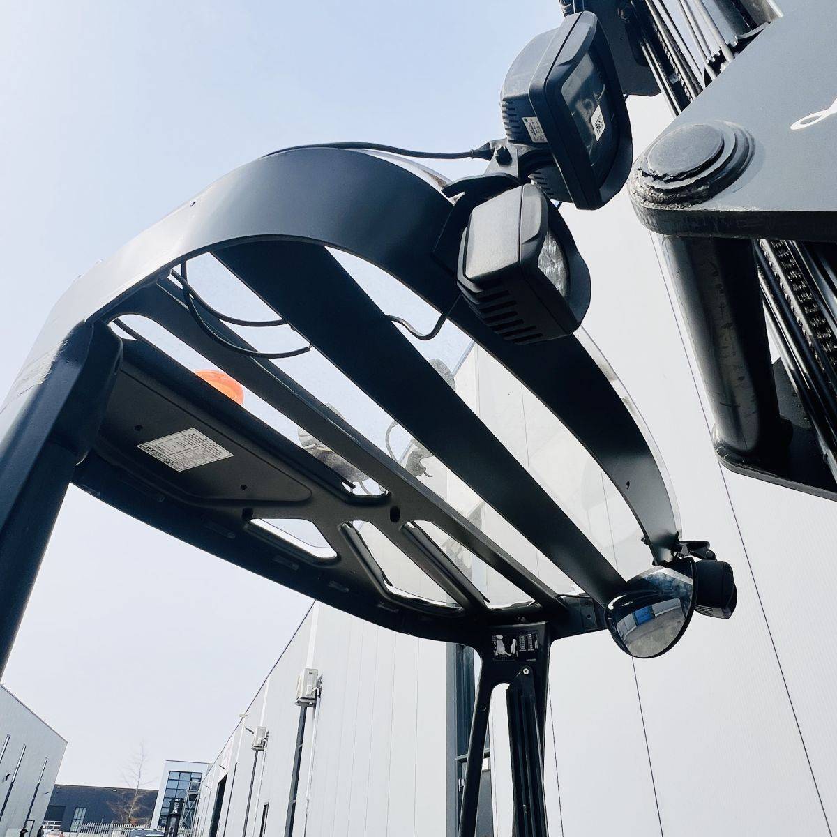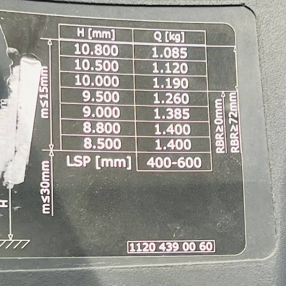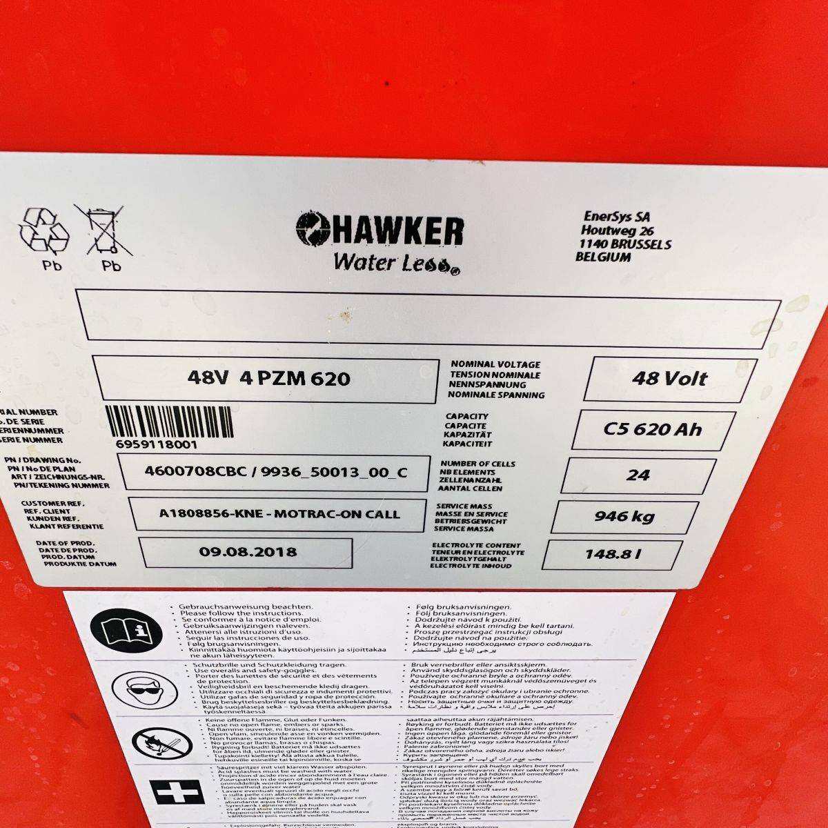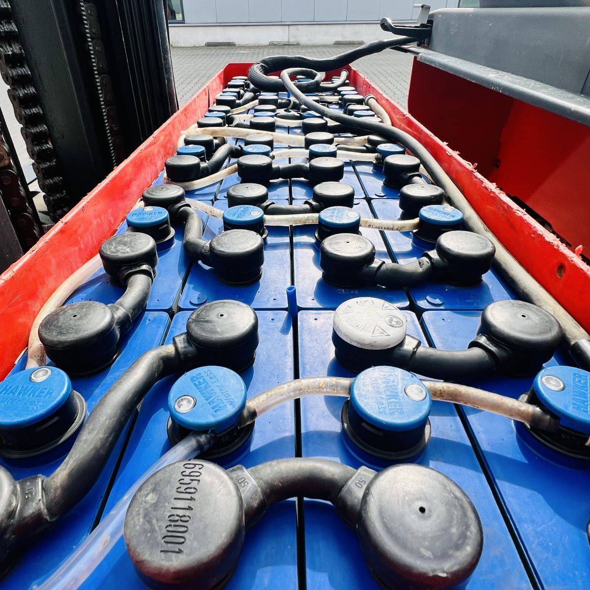 Heavy Duty Mast: Residual capacity 1.400 kgs at 8.800 mm lift and 1.200 kgs at 9.800 mm lift. Side shift centering, Horizontal fork leveling, 2 pedal operation. Battery 4PzS620 Ah, 3 LED Lights, safetylight.