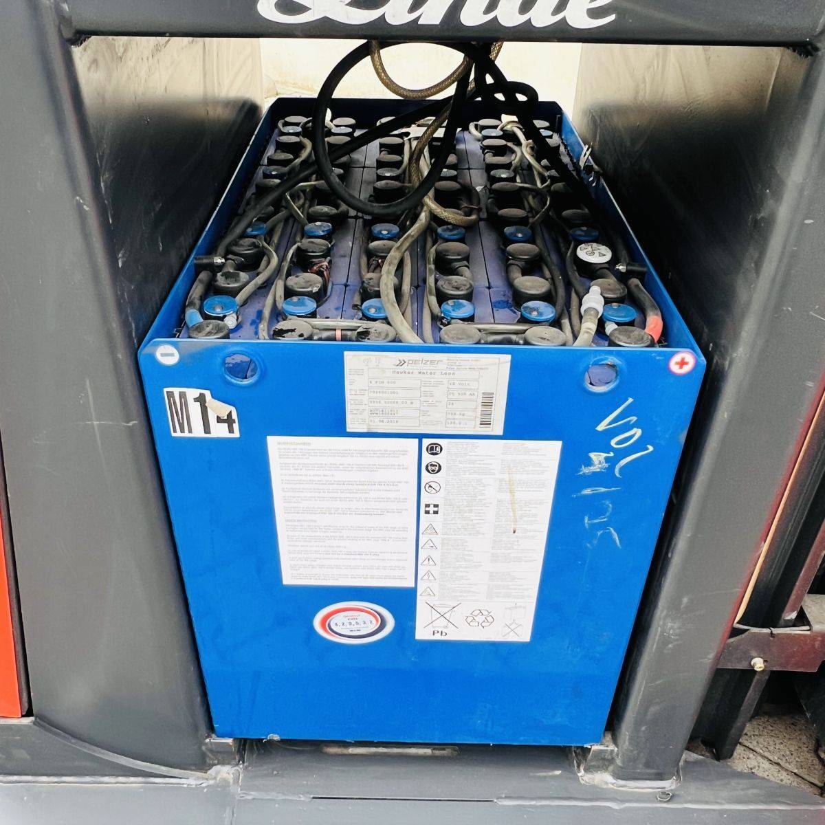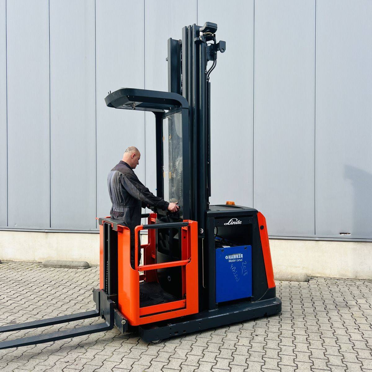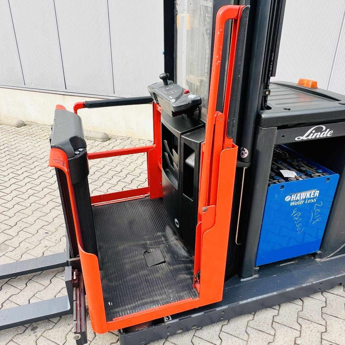 Triplex Mast, Operations mastside, Truck and Cabin width 1.200 mm. Lifhtheight 8.340 mm, Additional lift 890 mm, GT 1.150 mm breit, GL 1.150 mm. Batterie 500 Ah (2018)