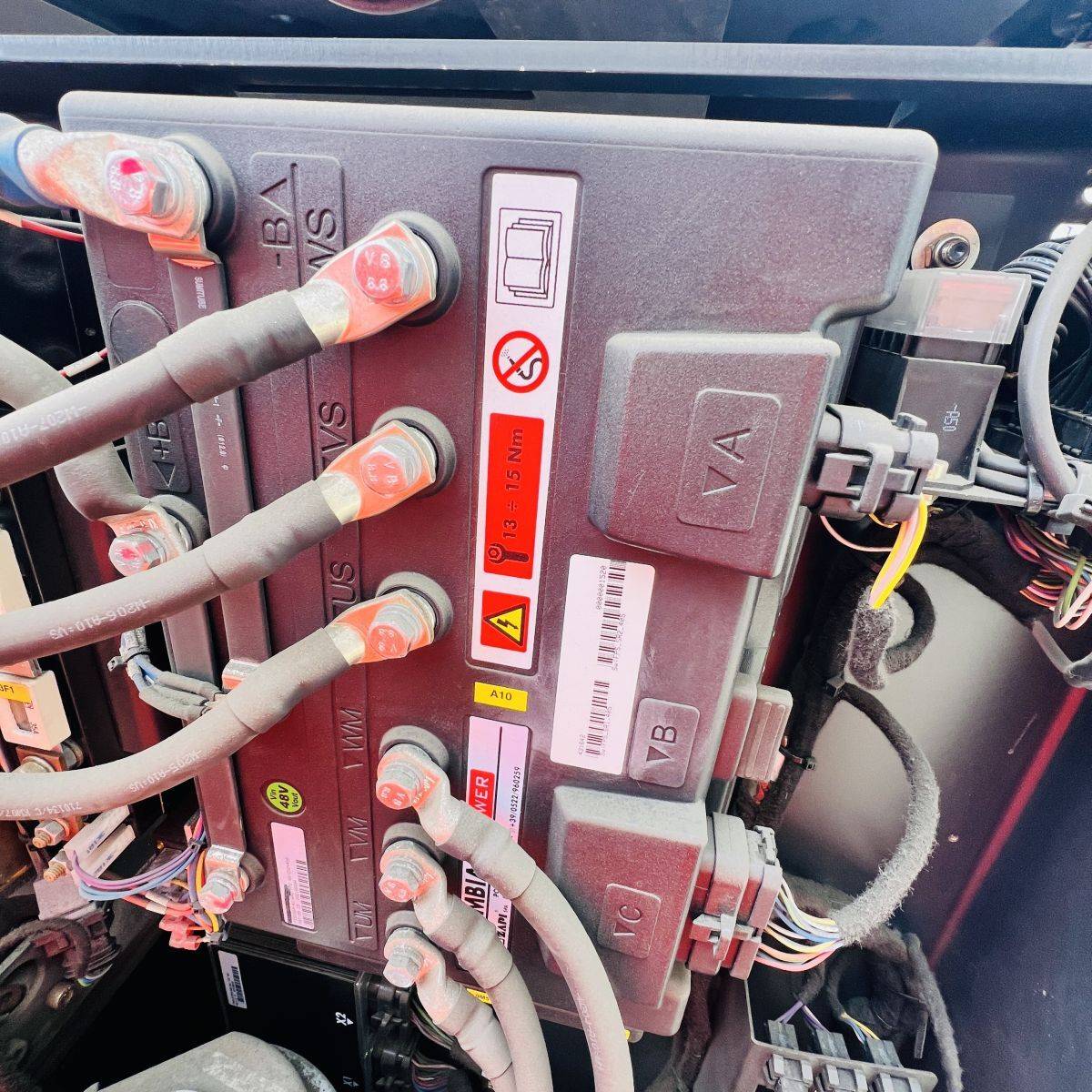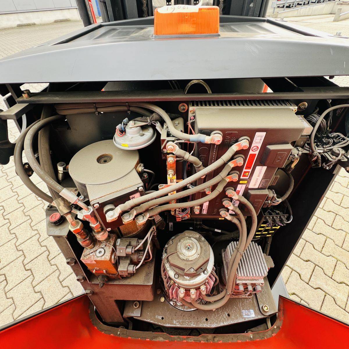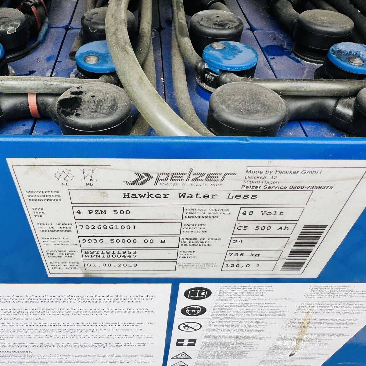 Triplex Mast, Operations mastside, Truck and Cabin width 1.200 mm. Lifhtheight 8.340 mm, Additional lift 890 mm, GT 1.150 mm breit, GL 1.150 mm. Batterie 500 Ah (2018)