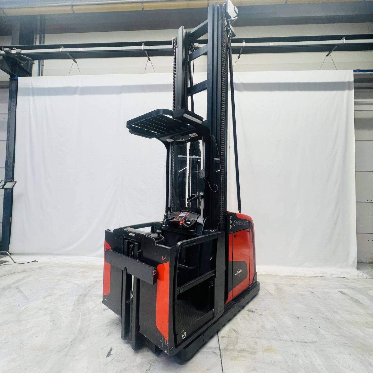High level orderpicker, Triplex Freelift mast, Platformheight 10.000 mm, Picking Height 11.600 mm. Cabin width 1.200 mm. Battery 48 Volt 4PzS 620 Ah.