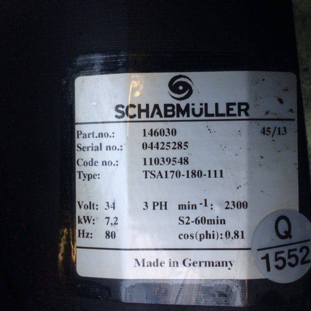 Drive motor from Schabmüller type 11039548 TSA170-180-111 with Warner elctromagnatic brake nr. 112107292 for Unicarriers / Atlet UHD200
