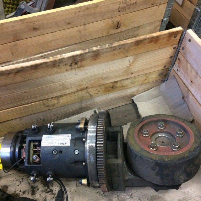 Drive unit with electromagnetic brake number 1445047003, Traction motor number 0039761126 and drive wheel number 1442600505 for Linde T20R, Series 140, T20S/T20SF, Series 144, and L12LS/L20LS, Series 144