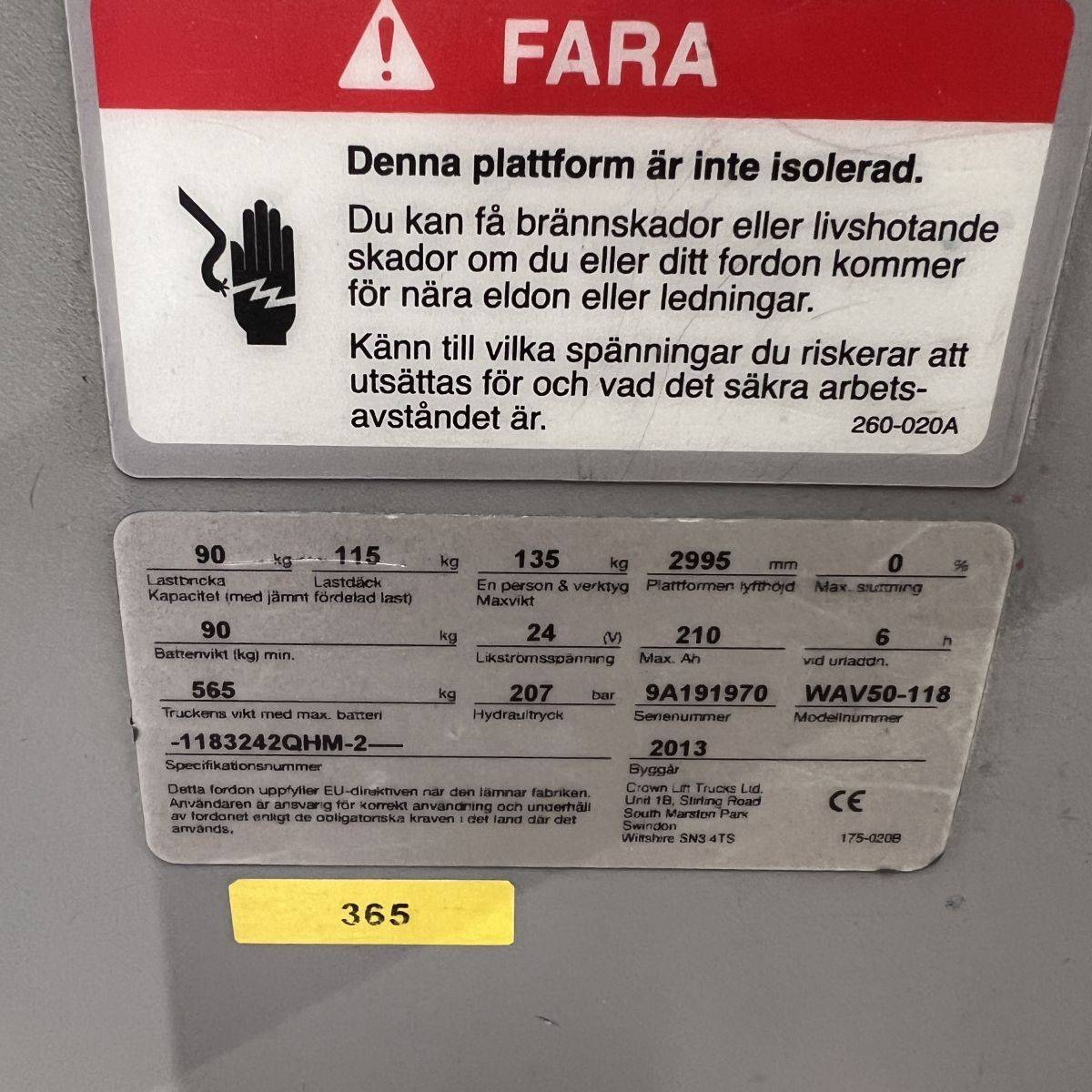Crown wave orderpicker, platform lift height 2.995 mm. Running condition but Batteries poor