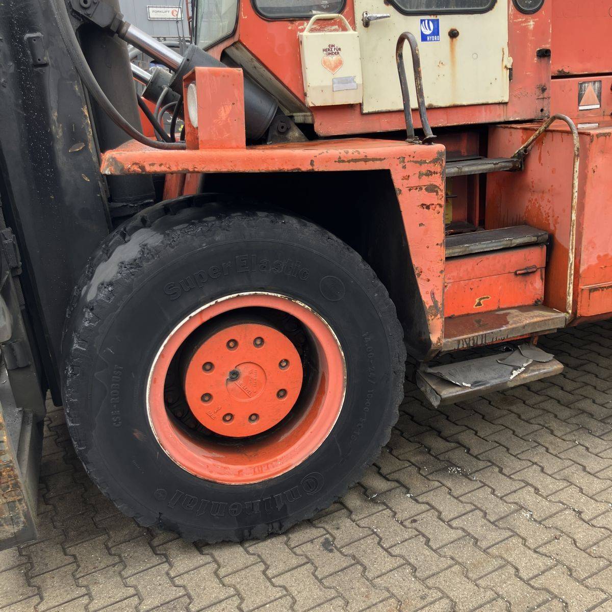Capacity 18.000 kgs @ 1.200 mm. Forkpositioner / sideshift, forks 1.900 x 300 x 100 mm. Only 12.000 hours from new, from first German owner, well maintained.