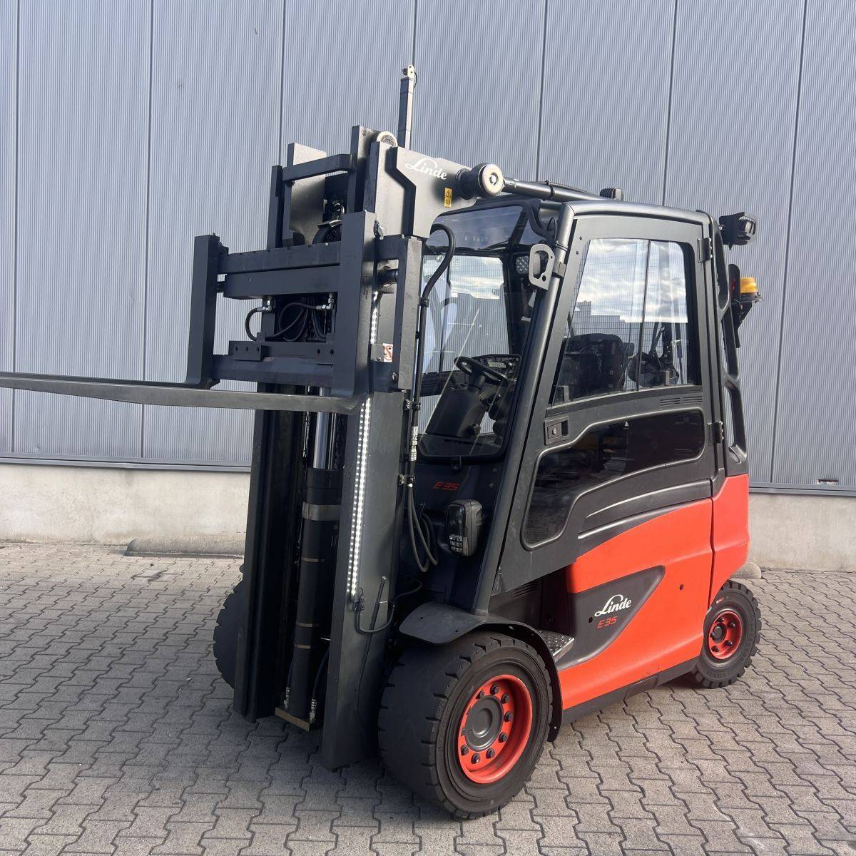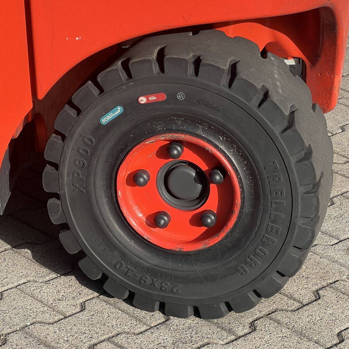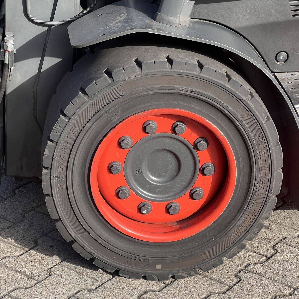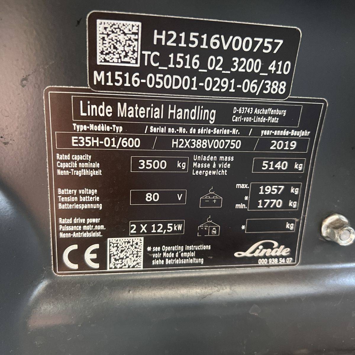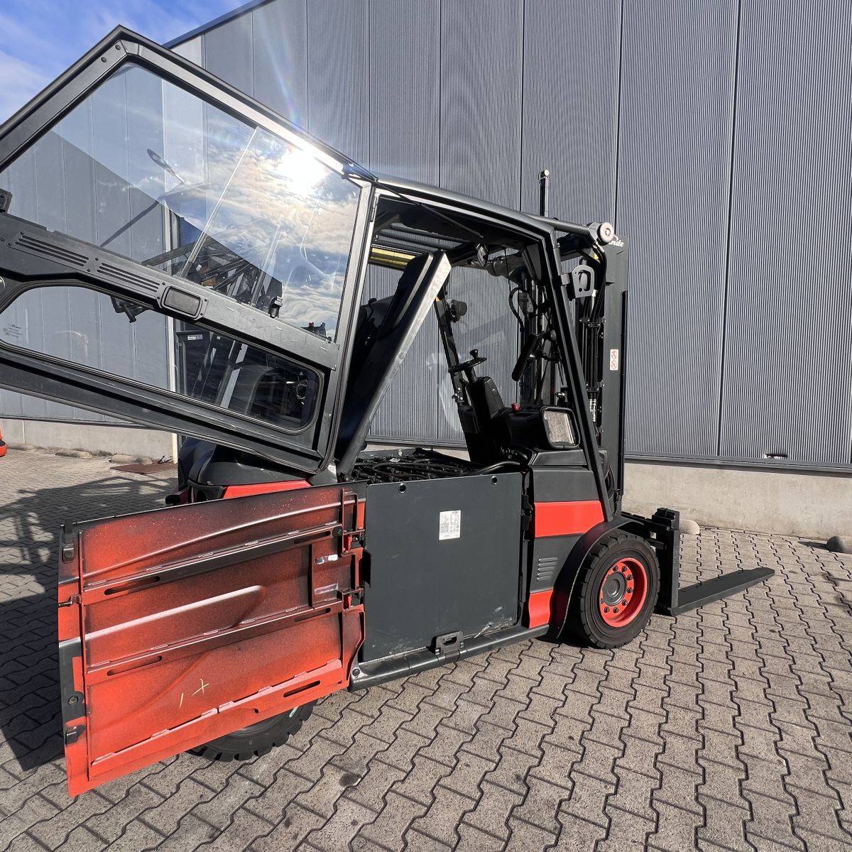 Only 4.300 hours. Full cabin, heater, 2-pedal, swivel seat. Lights: Roadlights LED, working lights LED, flashlight, Blue Spot, LED Stripes Mast / Rear. Full freelift, 3rd and 4th valve complete, integral sideshift 1.350 mm wide, battery 5PzS775 Ah (10-2019). SE Tyres