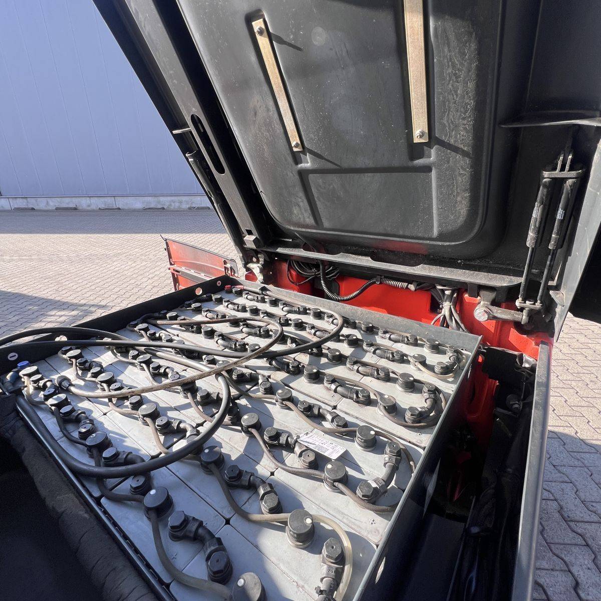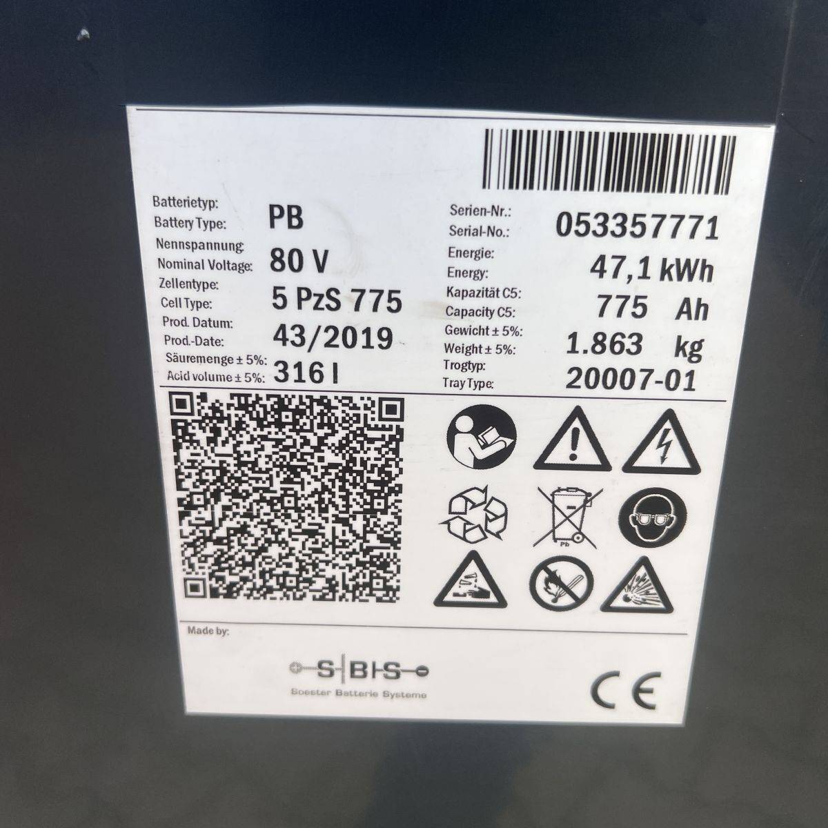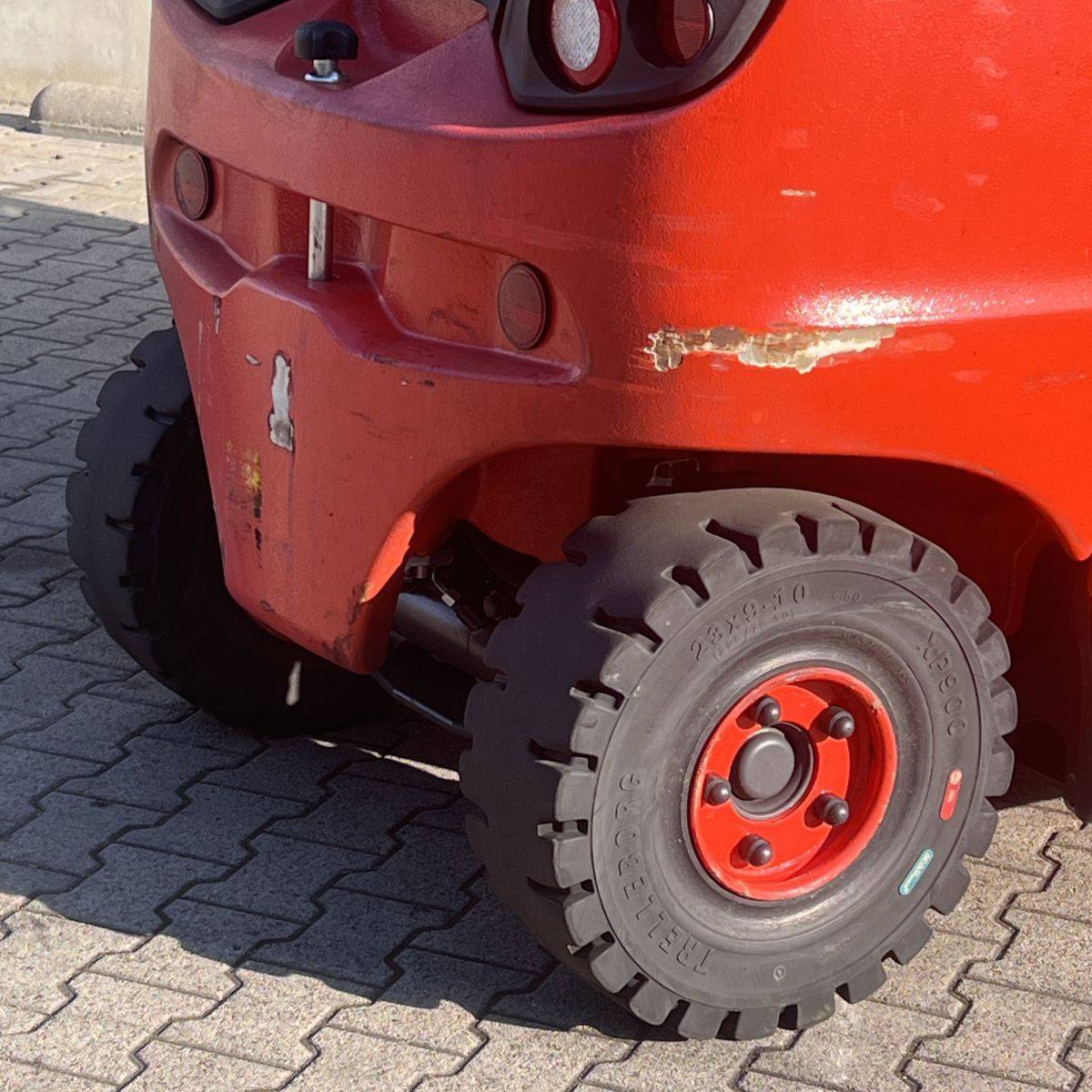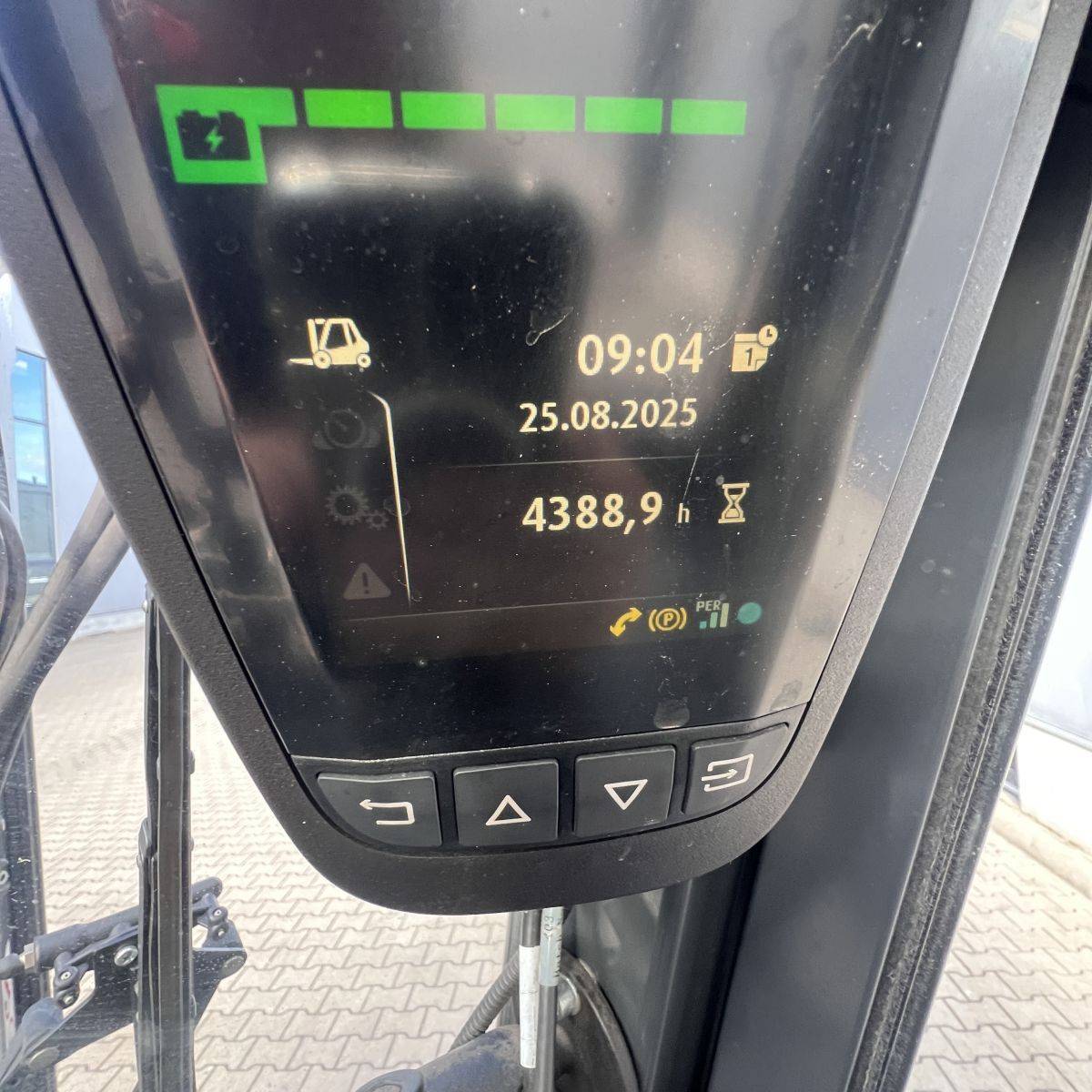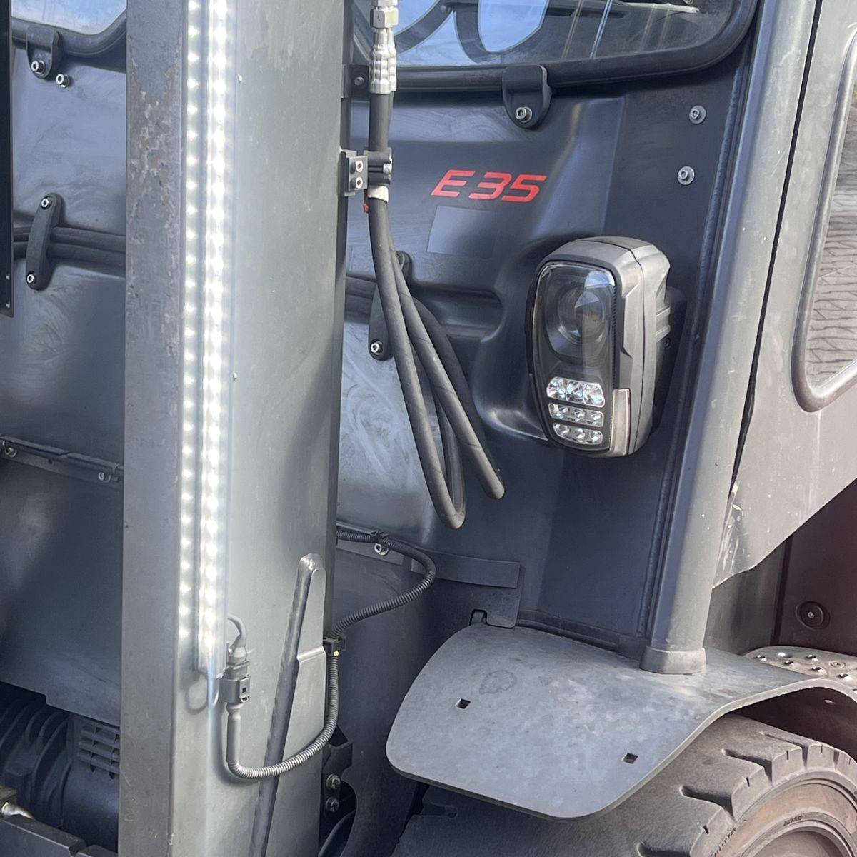 Only 4.300 hours. Full cabin, heater, 2-pedal, swivel seat. Lights: Roadlights LED, working lights LED, flashlight, Blue Spot, LED Stripes Mast / Rear. Full freelift, 3rd and 4th valve complete, integral sideshift 1.350 mm wide, battery 5PzS775 Ah (10-2019). SE Tyres