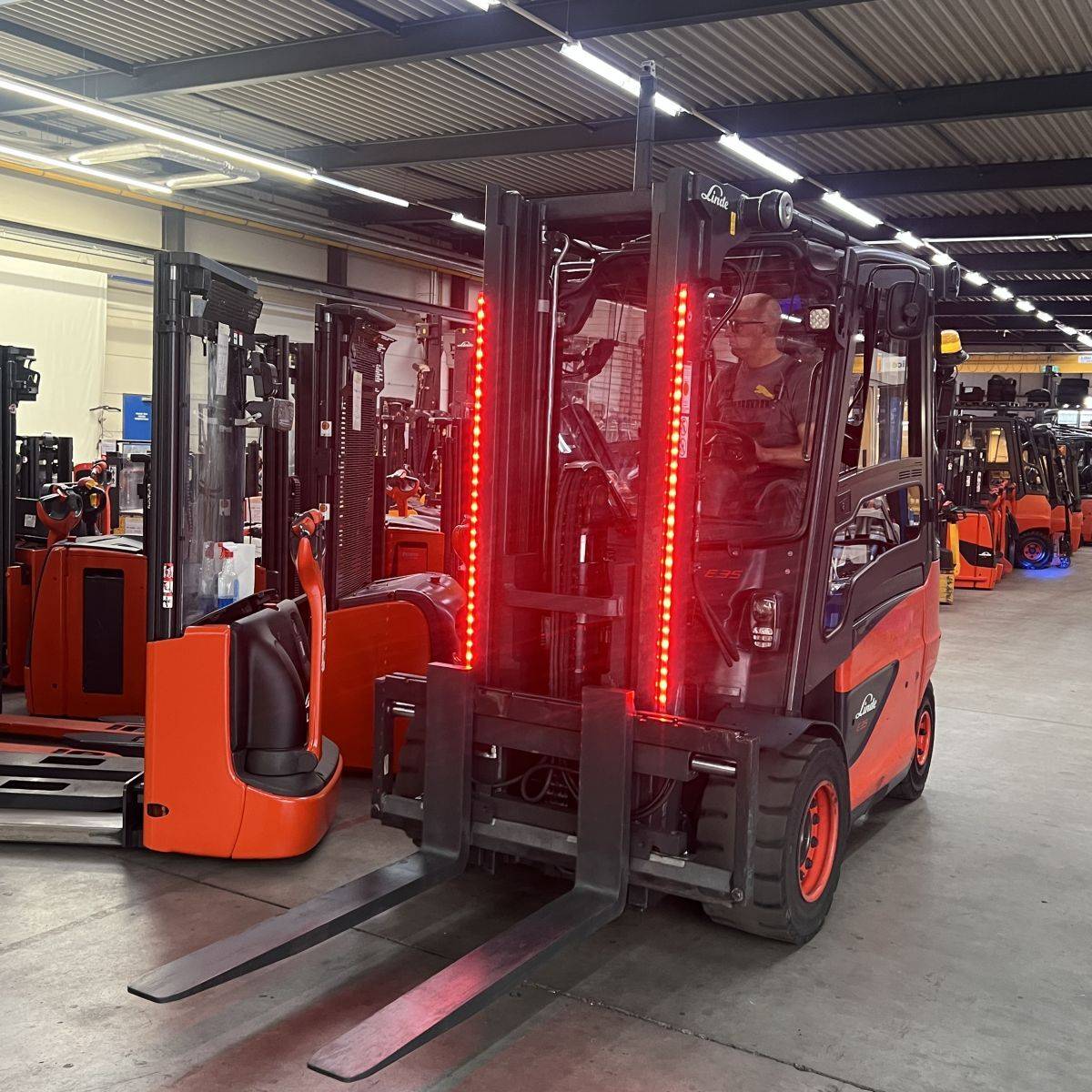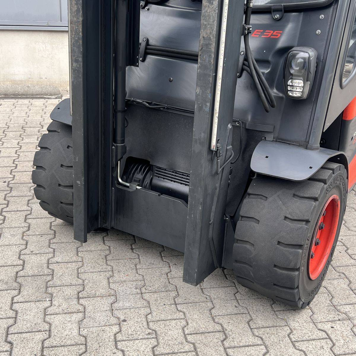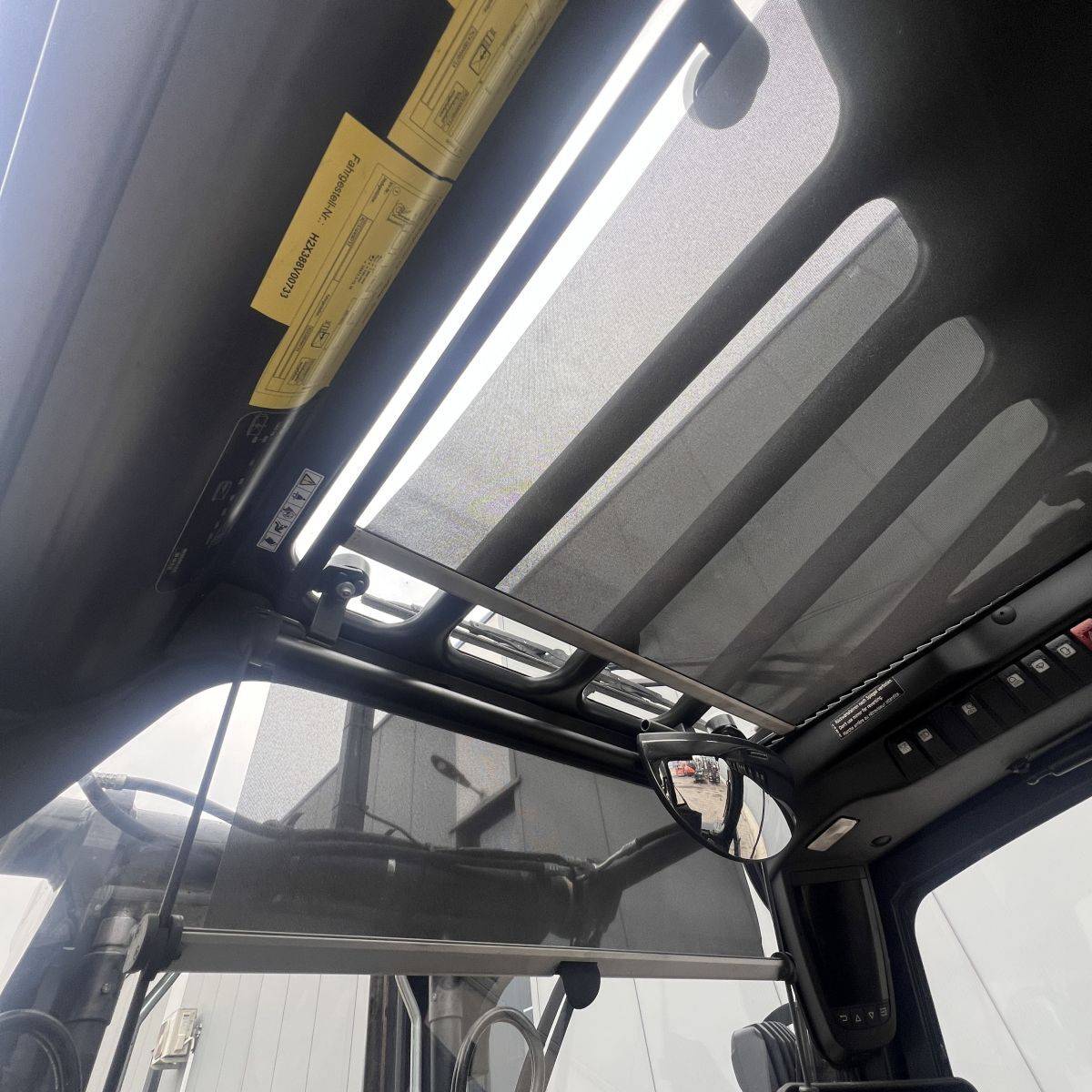 Only 5.200 hours. Full cabin, heater, 2-pedal opertion, swivel seat. Front/rear-drive camera. Lights: Roadlights LED, working lights LED, flashlight, Blue Spot, LED Stripes Mast / Rear. Full freelift, 3rd and 4th valve complete, integral sideshift 1.350 mm wide, battery SBS 5PzS775 Ah with autofill (2019), battery ventilation. SE Tyres, rear new