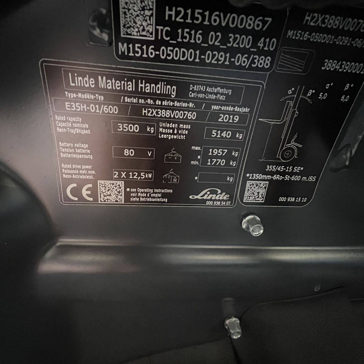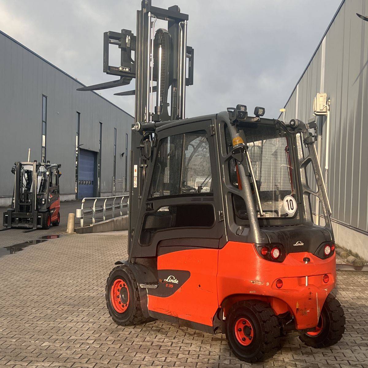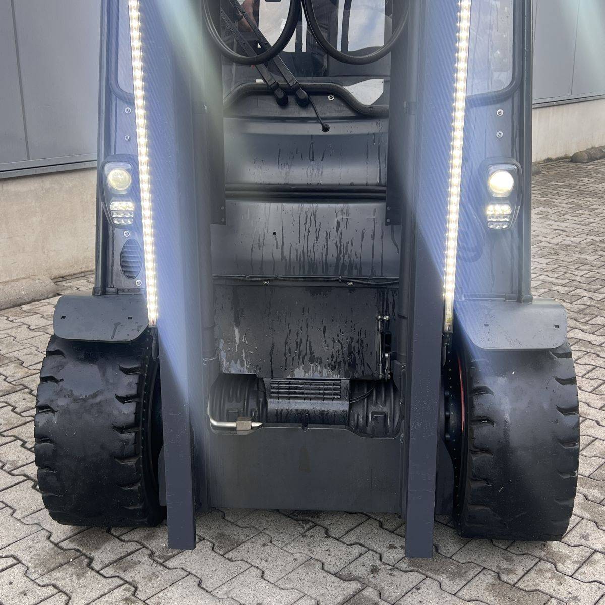 Only 3.800 hours. Battery 04-2022 5PzS 775 Ah. Full cabin, heater, 2-pedal, swivel seat. Lights: Roadlights LED, working lights LED, flashlight, Blue Spot, LED Stripes Mast / Rear. Full freelift, 3rd and 4th valve complete, integral sideshift 1.350 mm wide. SE Tyres