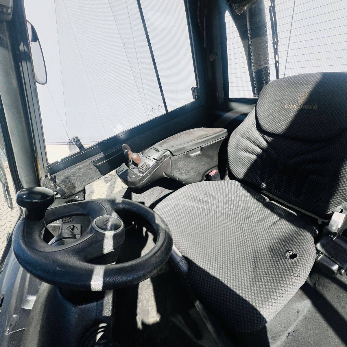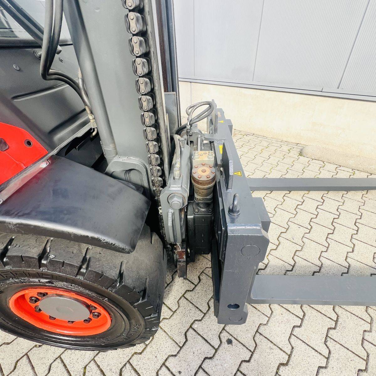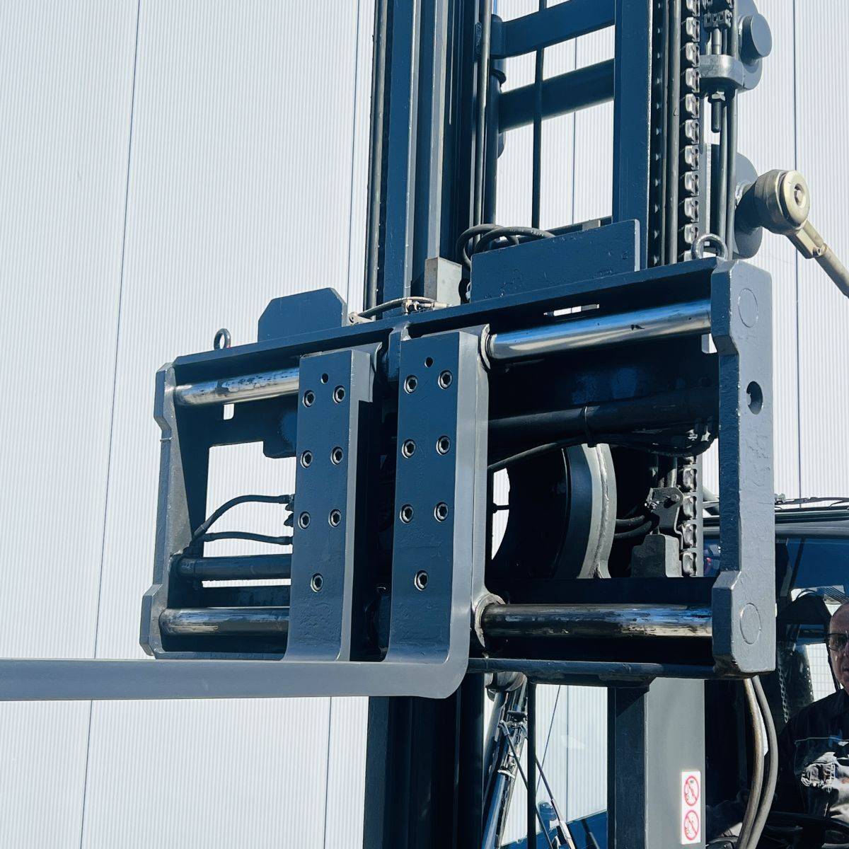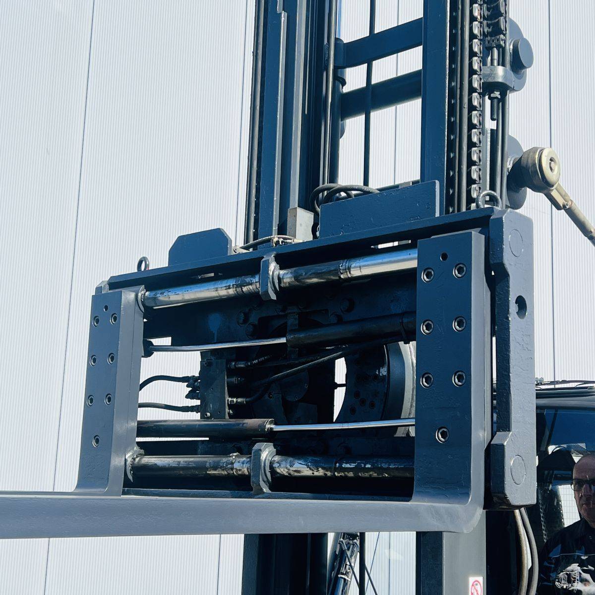 Full cabin, heater, 2 pedal operation, 3rd and 4th valve, integral forkpositioner 1.400 mm wide, with separate sideshift and bolted forks 1.600 mm. Rotator fixated. SE Tyres . Truck computer replaced: 13.800 hours recorded. Video's available on whatsapp.