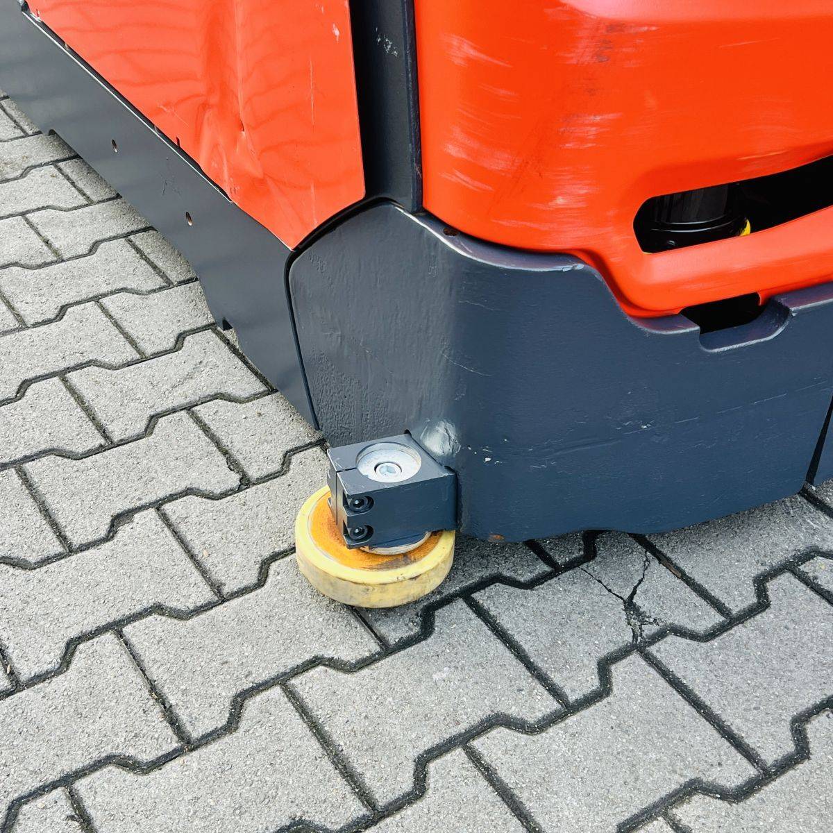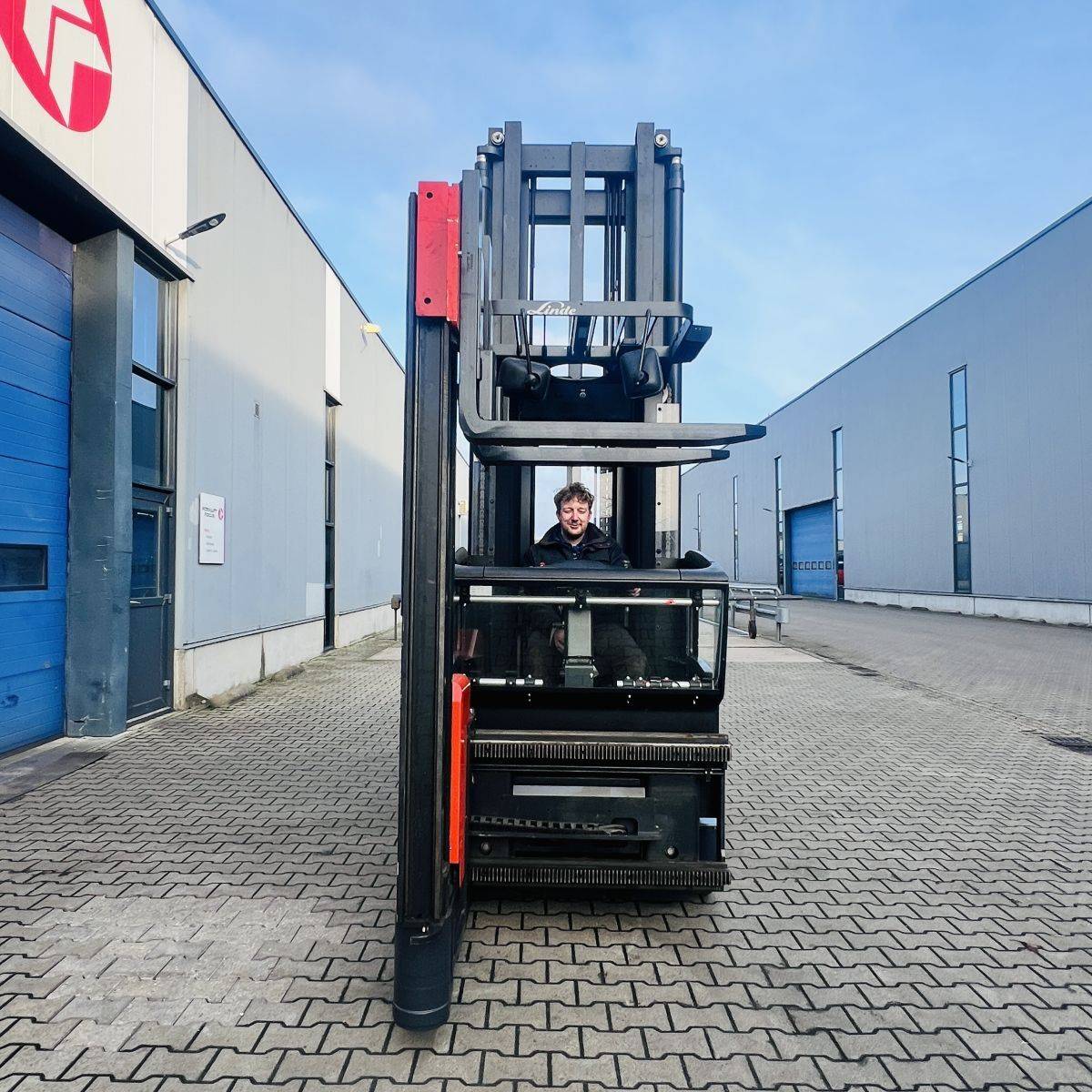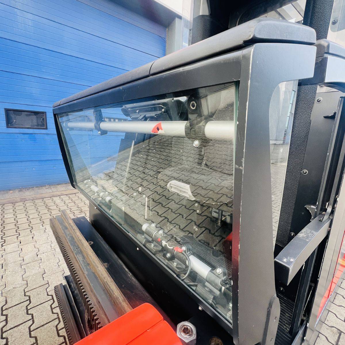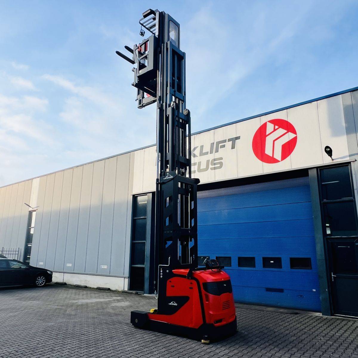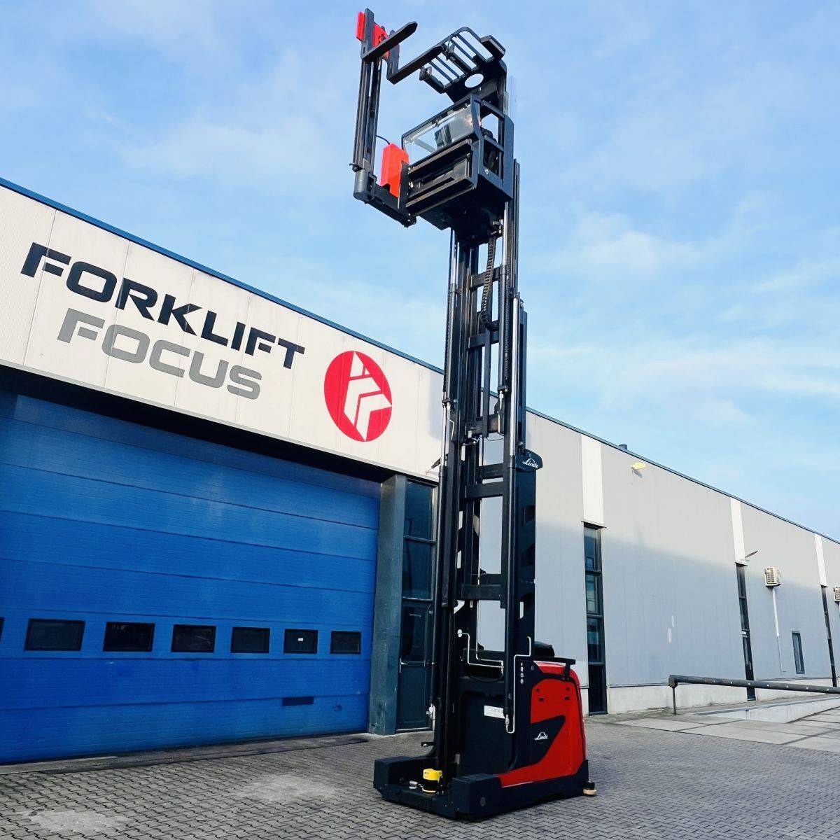 Kombi-Truck with mechanical guidance (4 side-rollers) for aisle width 1.870 mm. H3 forkheight 7.450 mm, H9 supplementary lift 1.800 mm, H25 max forkheight (h3+h9+h13) 9.310 mm. Residual capacity 700 kg @ 430 mm LC @ 8.660 mm. Aisle recognition, Person Detection System (ELOKON PSA).Version 48 Volt (Battery 6PzS 930 Ah).
