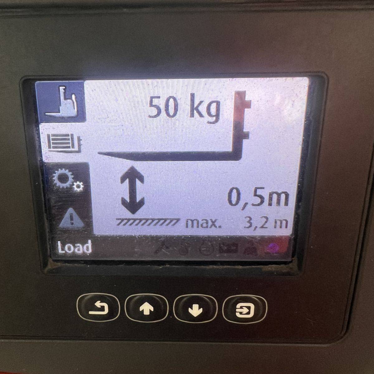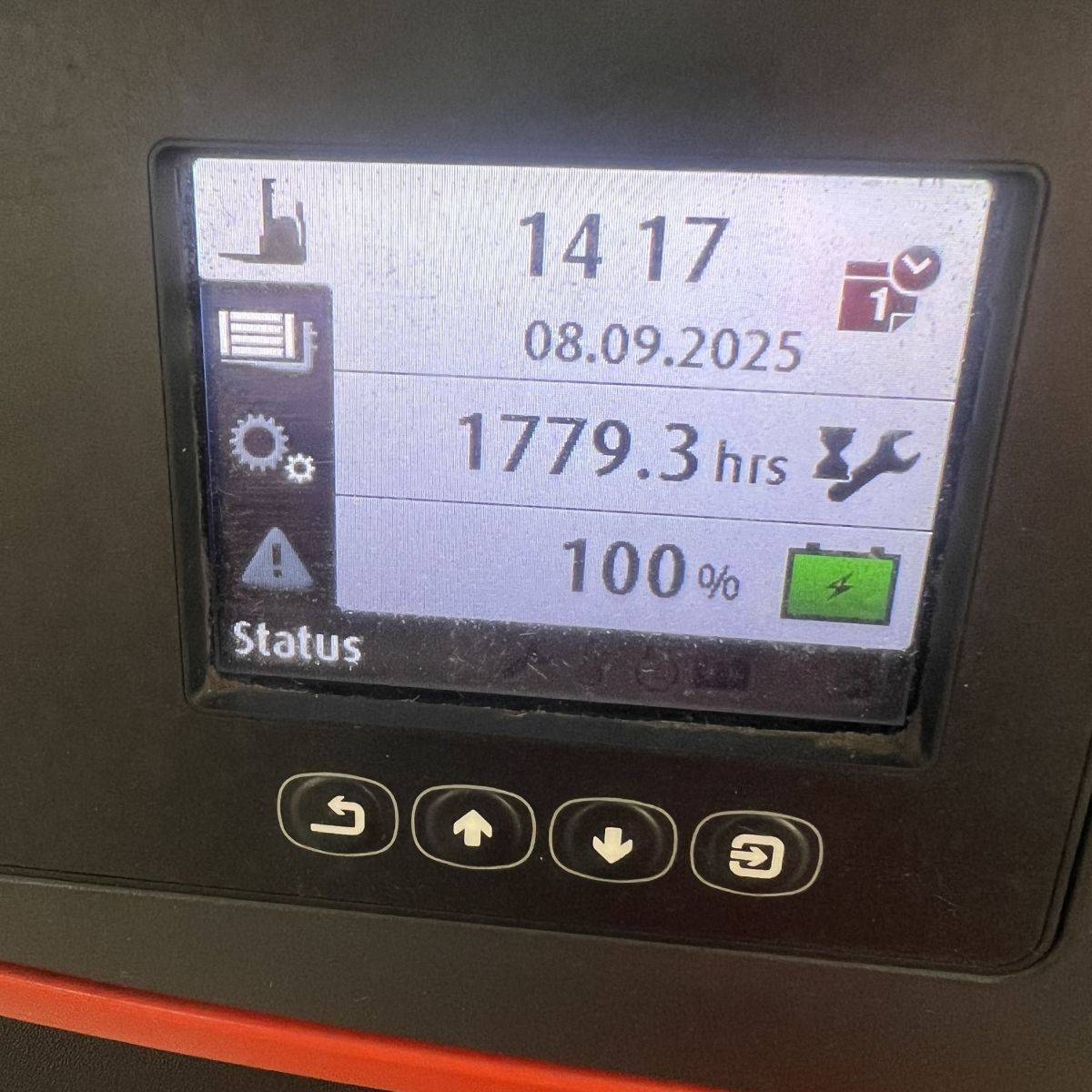 Pedestrian stacker, 2.000 kgs, low hours. Intial lift / Straddle Lift, Full freelift, Forks 1.300 x 560 mm, standard (short) legs. Weight indicator, Advanced Load Management. Battery Hoppecke 375 Ah