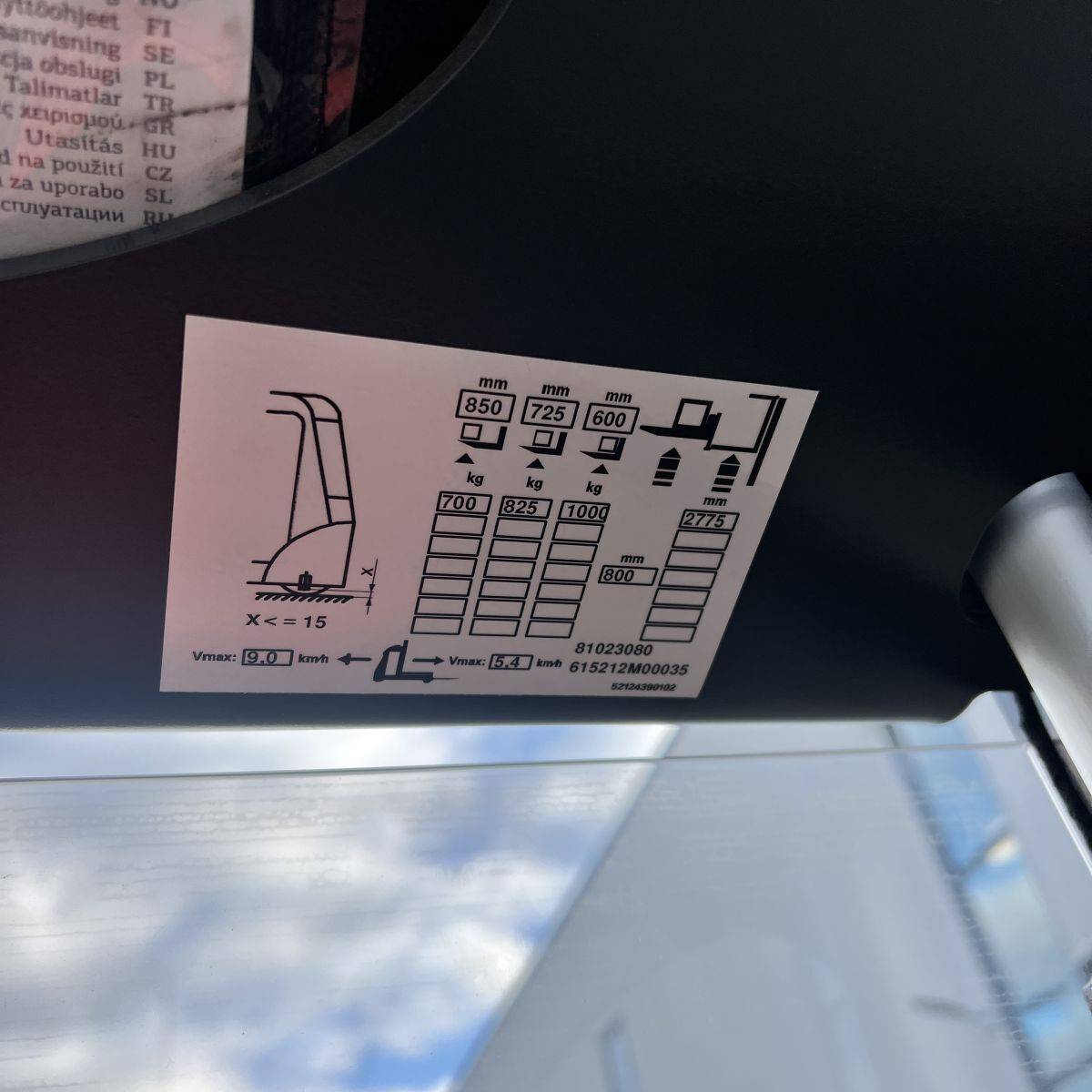 New, unused. Including Lithium Ion Battery 24 Volt 425 Ah and Charger. Platform height (h12) 2.110 mm, Additional Lift (h9) 800 mm, Forklift max (h25) 2.775 mm. Forks 1.150 x 640 mm. Picking height (h28) 3.710 mm