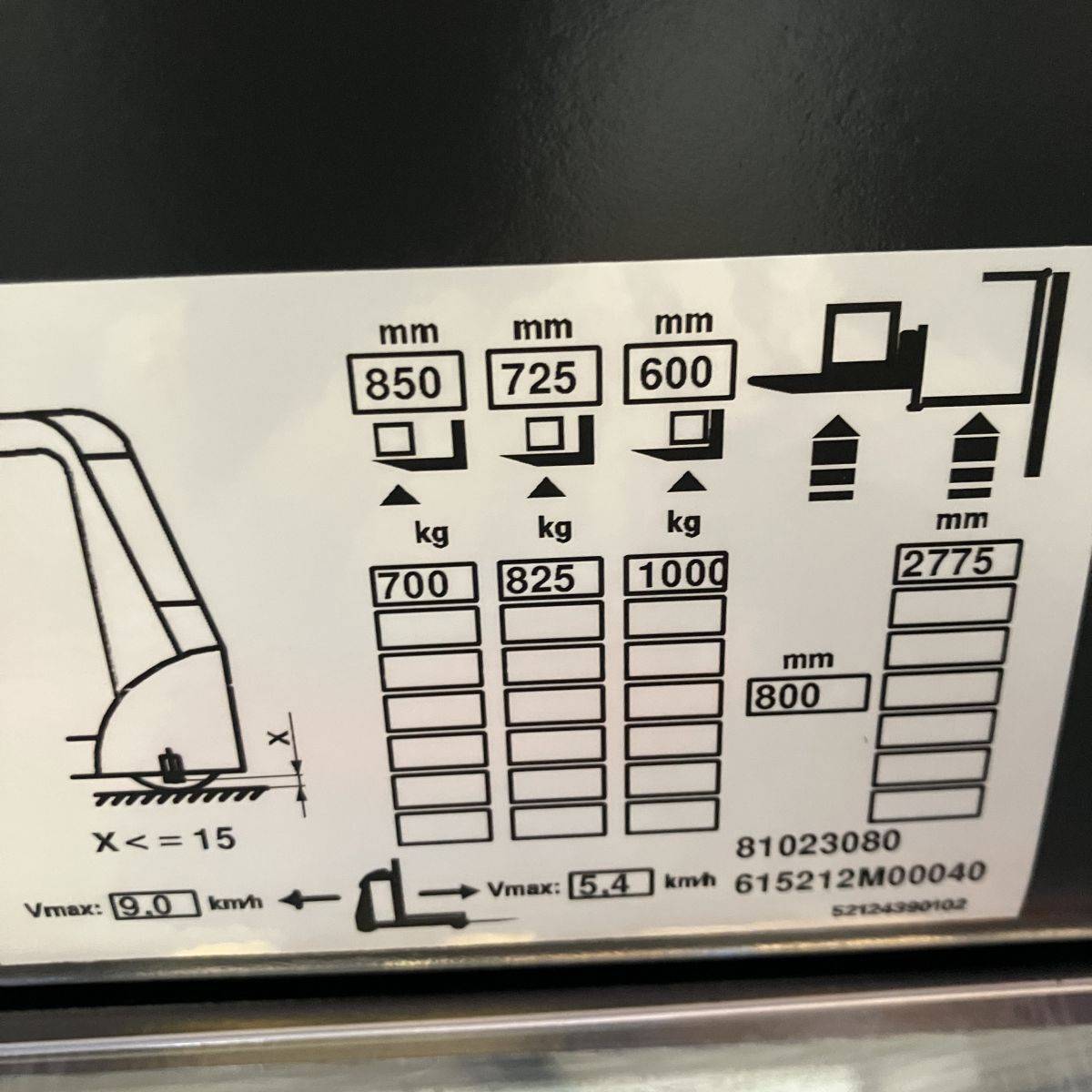 New, unused. Including Lithium Ion Battery 24 Volt 425 Ah and Charger. Platform height (h12) 2.110 mm, Additional Lift (h9) 800 mm, Forklift max (h25) 2.775 mm. Forks 1.150 x 640 mm. Picking height (h28) 3.710 mm
