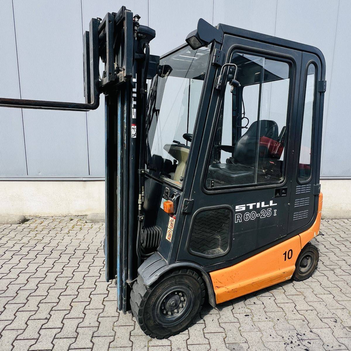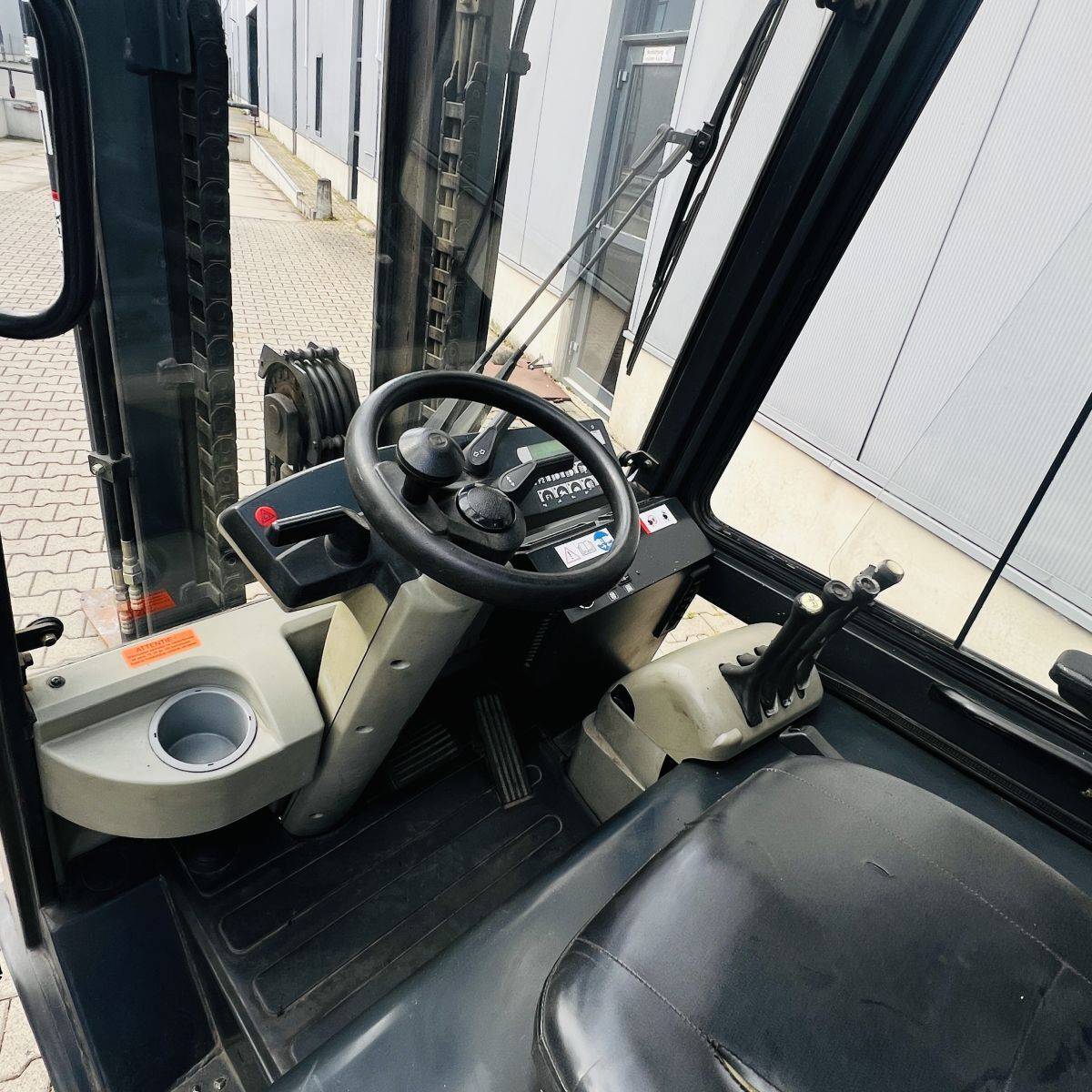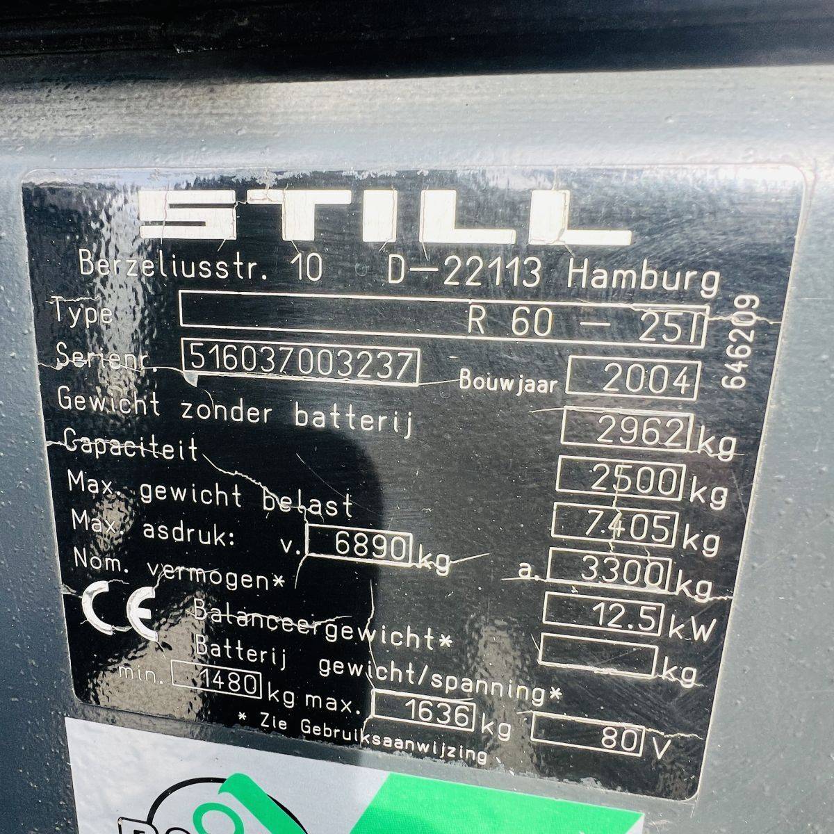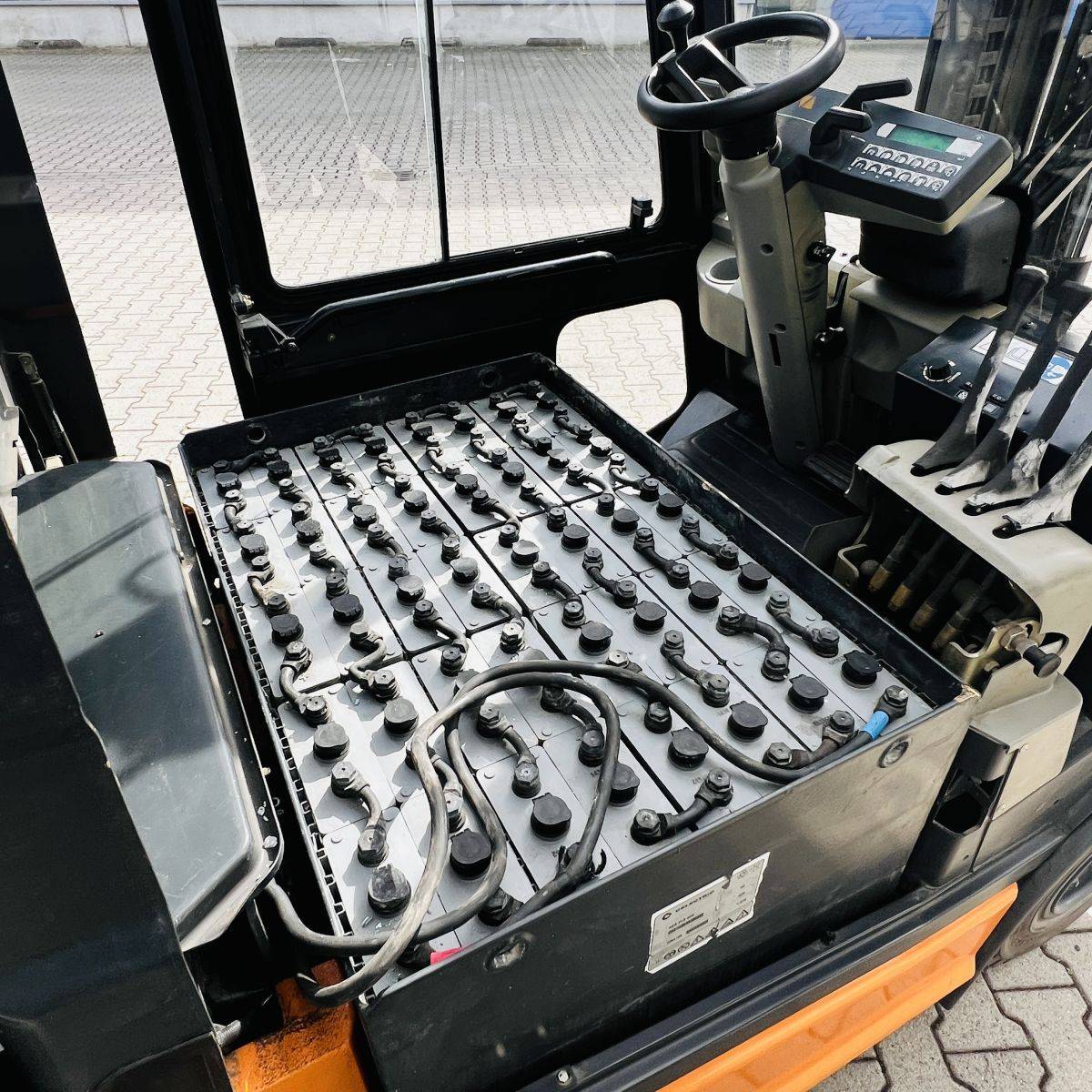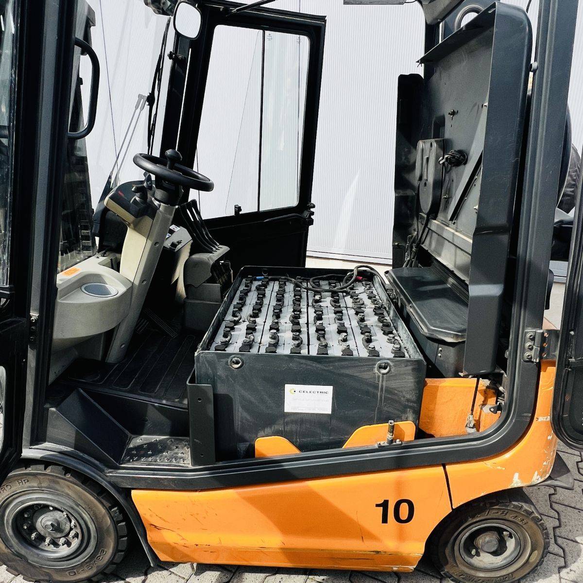 AC Version, only 2.200 hours. Full Freelift Mast, sideshift, 4th valve complete. Full cabin, rear window missing. Battery 40/4 PzS 620 (10-2014)
