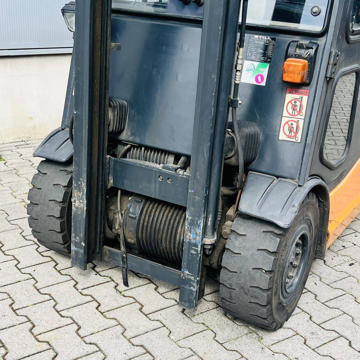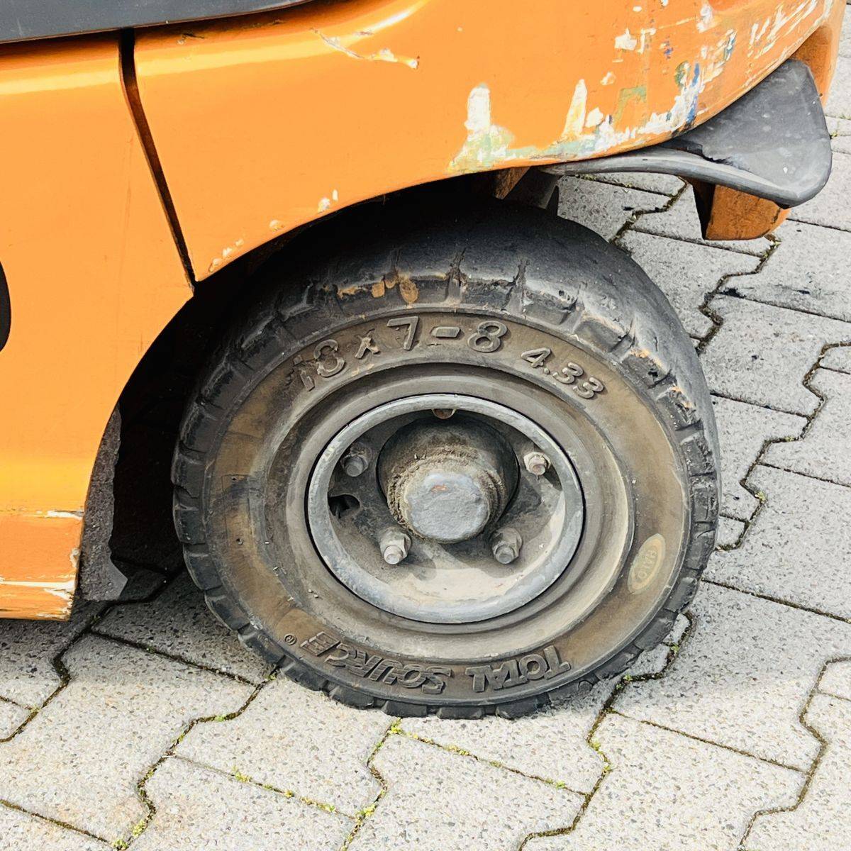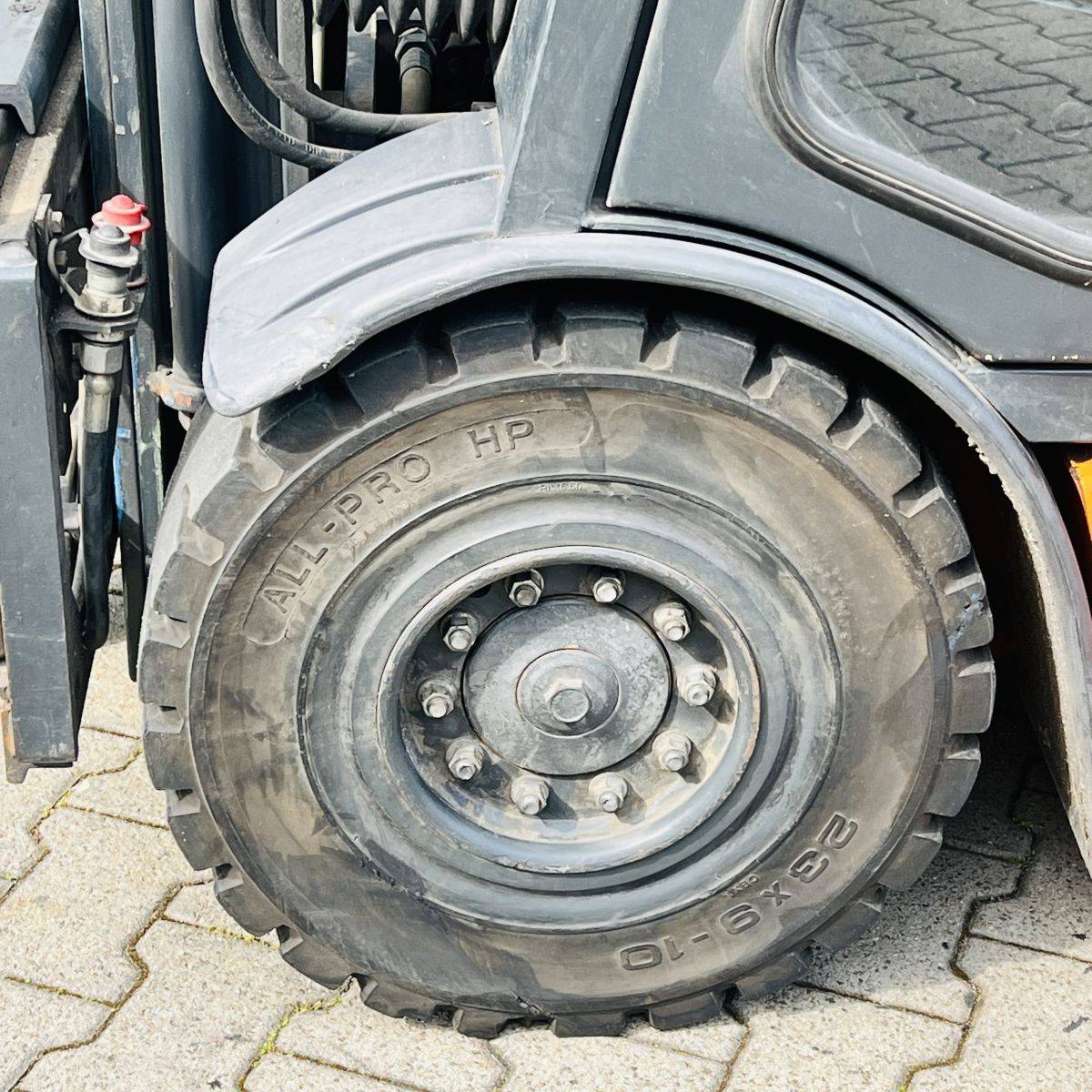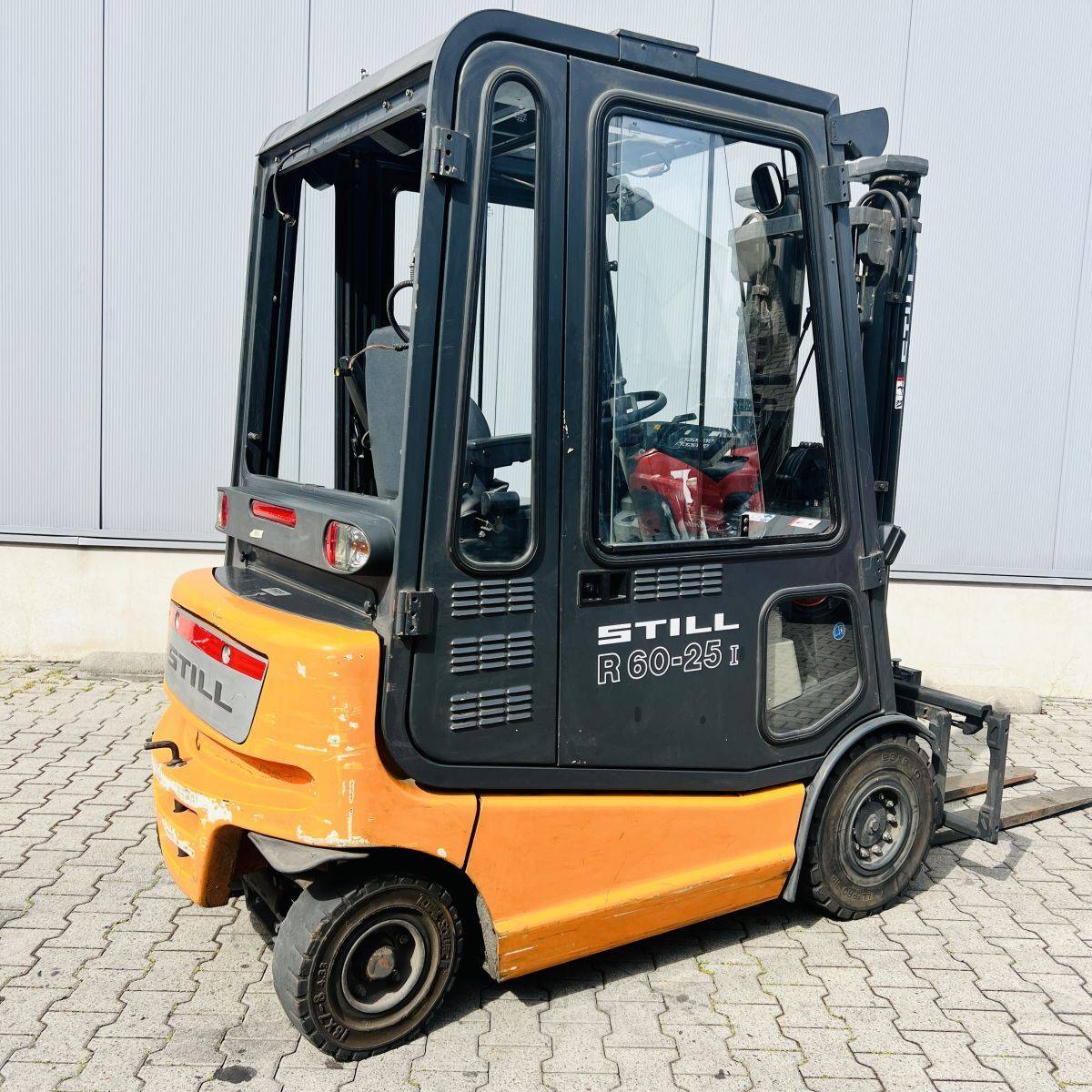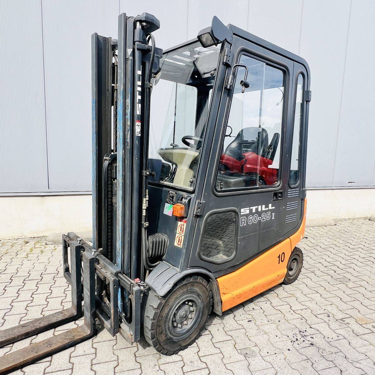 AC Version, only 2.200 hours. Full Freelift Mast, sideshift, 4th valve complete. Full cabin, rear window missing. Battery 40/4 PzS 620 (10-2014)