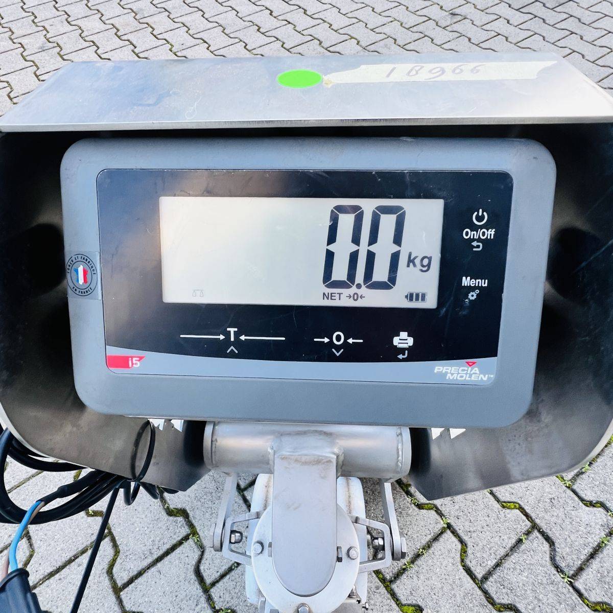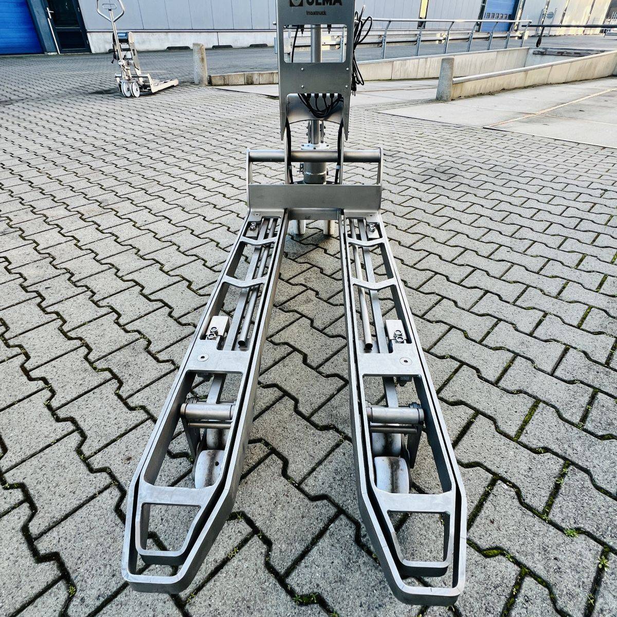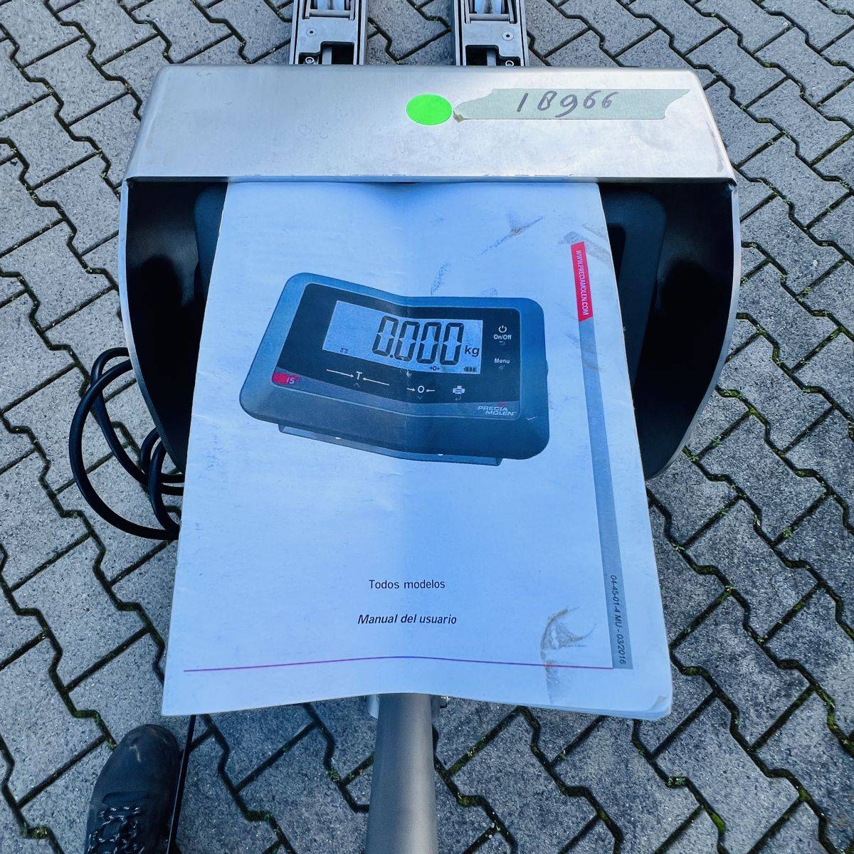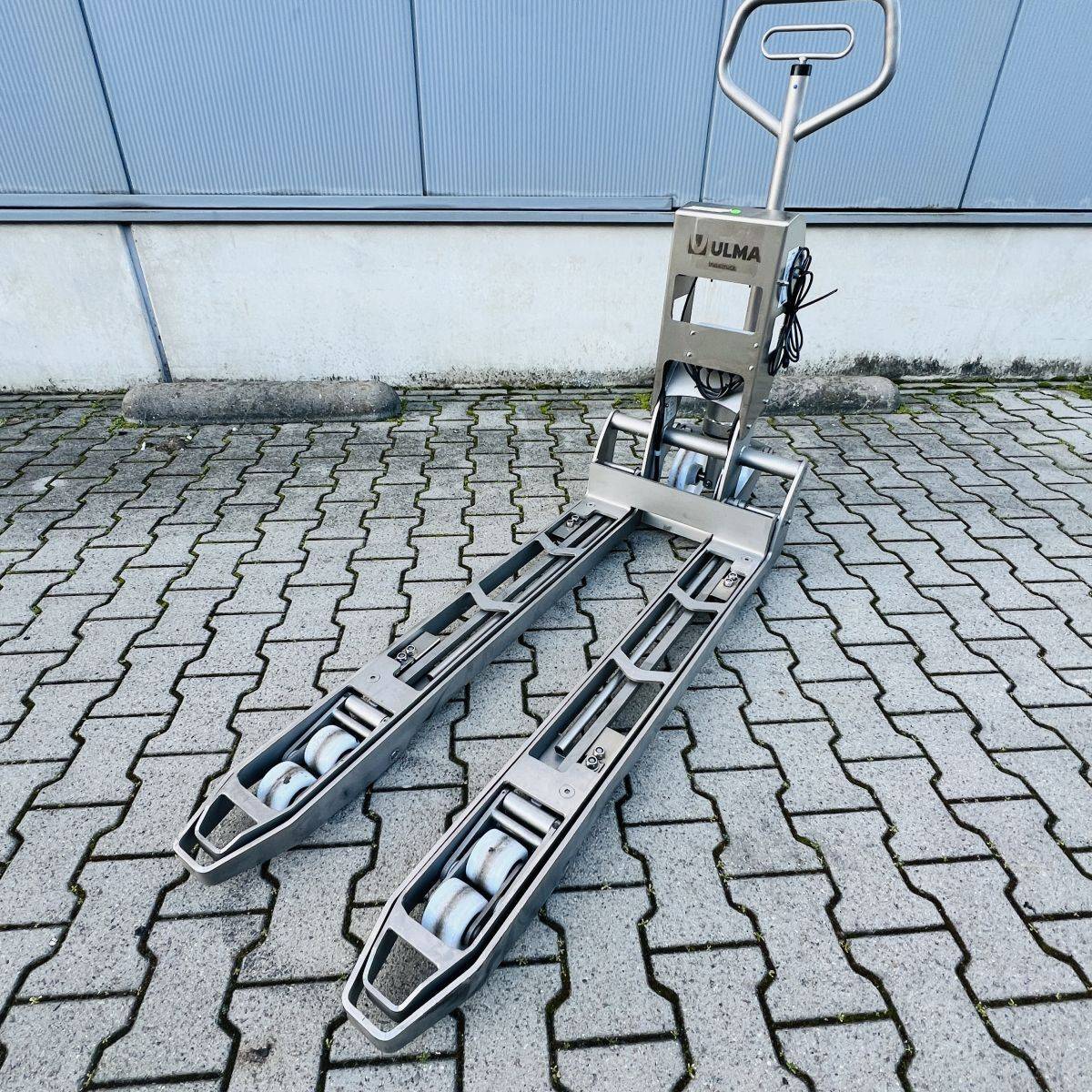 Stainless Steel / Inox Hand Pallet Truck with integral Scale. 1000 kg. weighing capacity. Measuring range from 0 to 1.000kg in 0,5kg intervals, high accuracy: Maximum 0,5%. CIP 68 protected Stainless Steel, IP65 protected Display. Stainless Steel 304