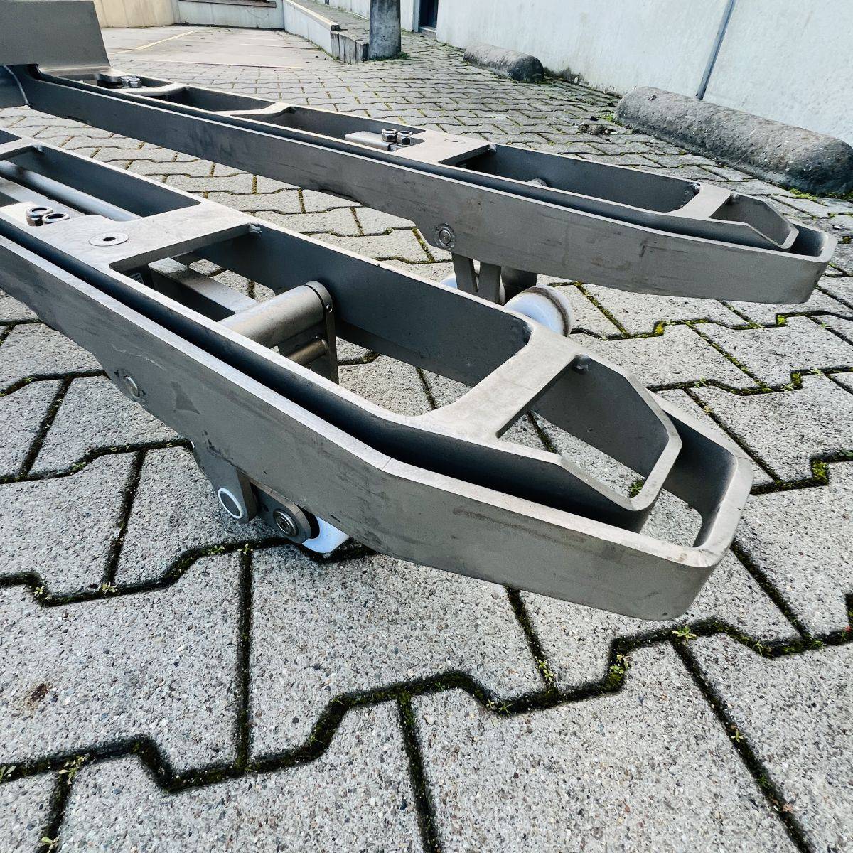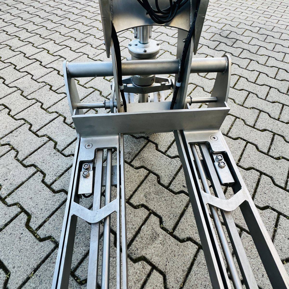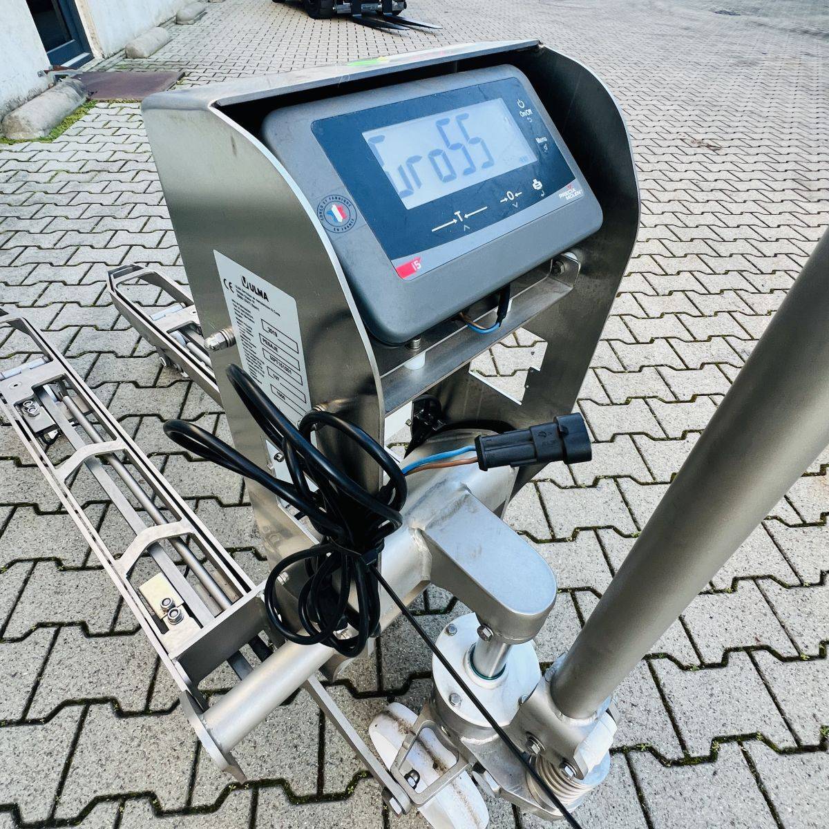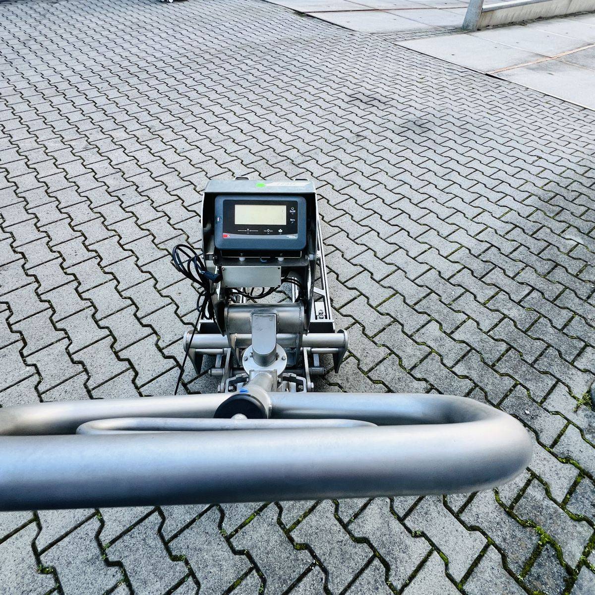 Stainless Steel / Inox Hand Pallet Truck with integral Scale. 1000 kg. weighing capacity. Measuring range from 0 to 1.000kg in 0,5kg intervals, high accuracy: Maximum 0,5%. CIP 68 protected Stainless Steel, IP65 protected Display. Stainless Steel 304