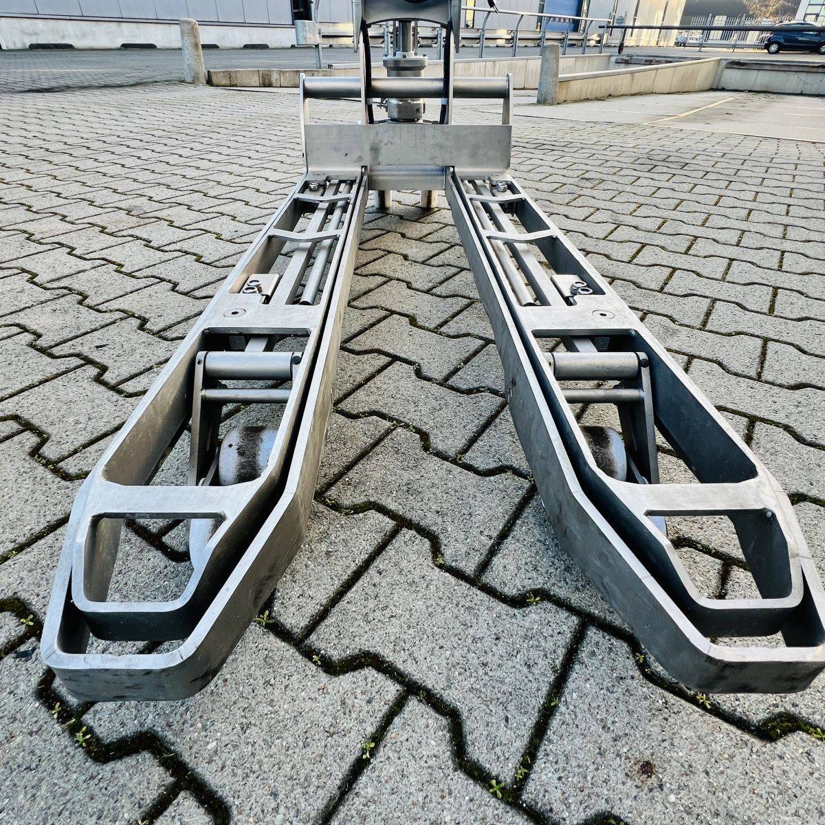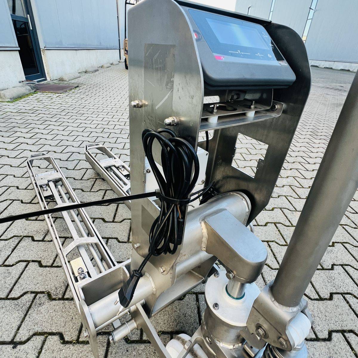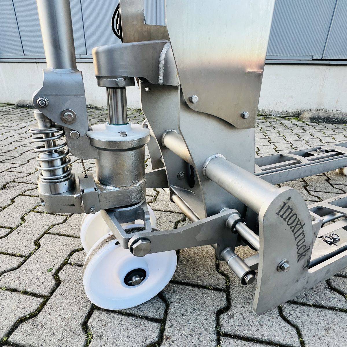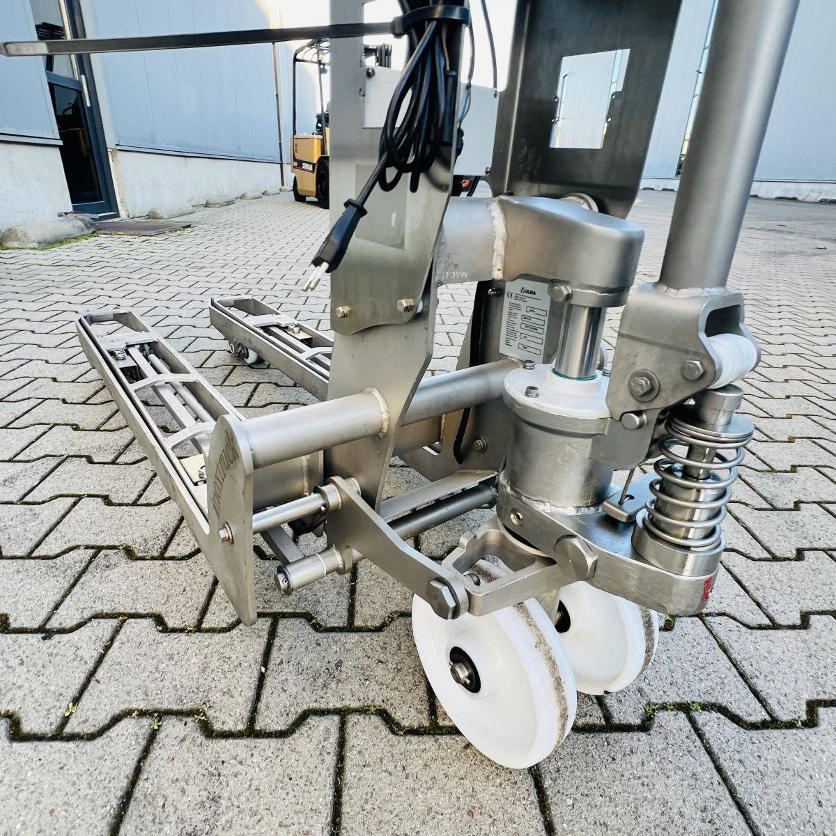 Stainless Steel / Inox Hand Pallet Truck with integral Scale. 1000 kg. weighing capacity. Measuring range from 0 to 1.000kg in 0,5kg intervals, high accuracy: Maximum 0,5%. CIP 68 protected Stainless Steel, IP65 protected Display.