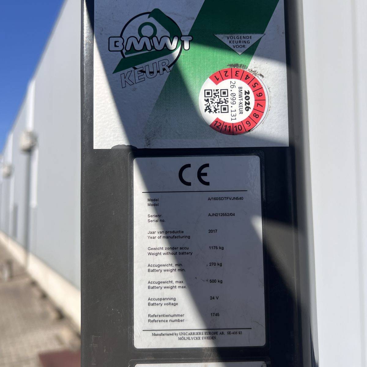 Stand in stacker for narrow ailes 2.350 mm in combination with Euro-pallets 1.200 mm deep. Battery 465 Ah, tested, 81% capacity