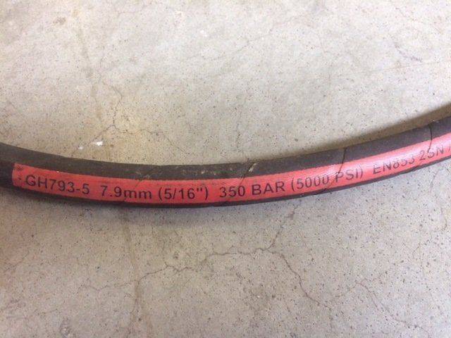 Hydraulic Hose, Braided hose,from ETN, number GH793-5,Type EN853 2SN/100R2S, operating pressure 350 bar,(5000 PSI), Length 2200 mm.