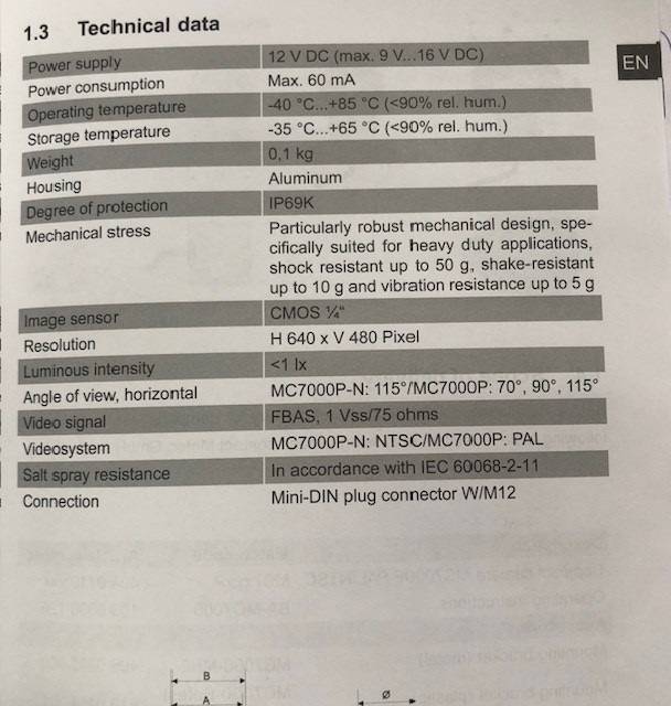 MC7115P-4-E Motec Camera for rigid vehicles / forklift