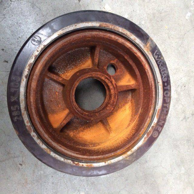 Wheel solid assy 285X100 mm, Diameter of wheel 285 mm, with a good condition topthane wheel width 100 mm, and rusty rim diameter 245 mm, for Linde R16S-12, series 115, year 2015